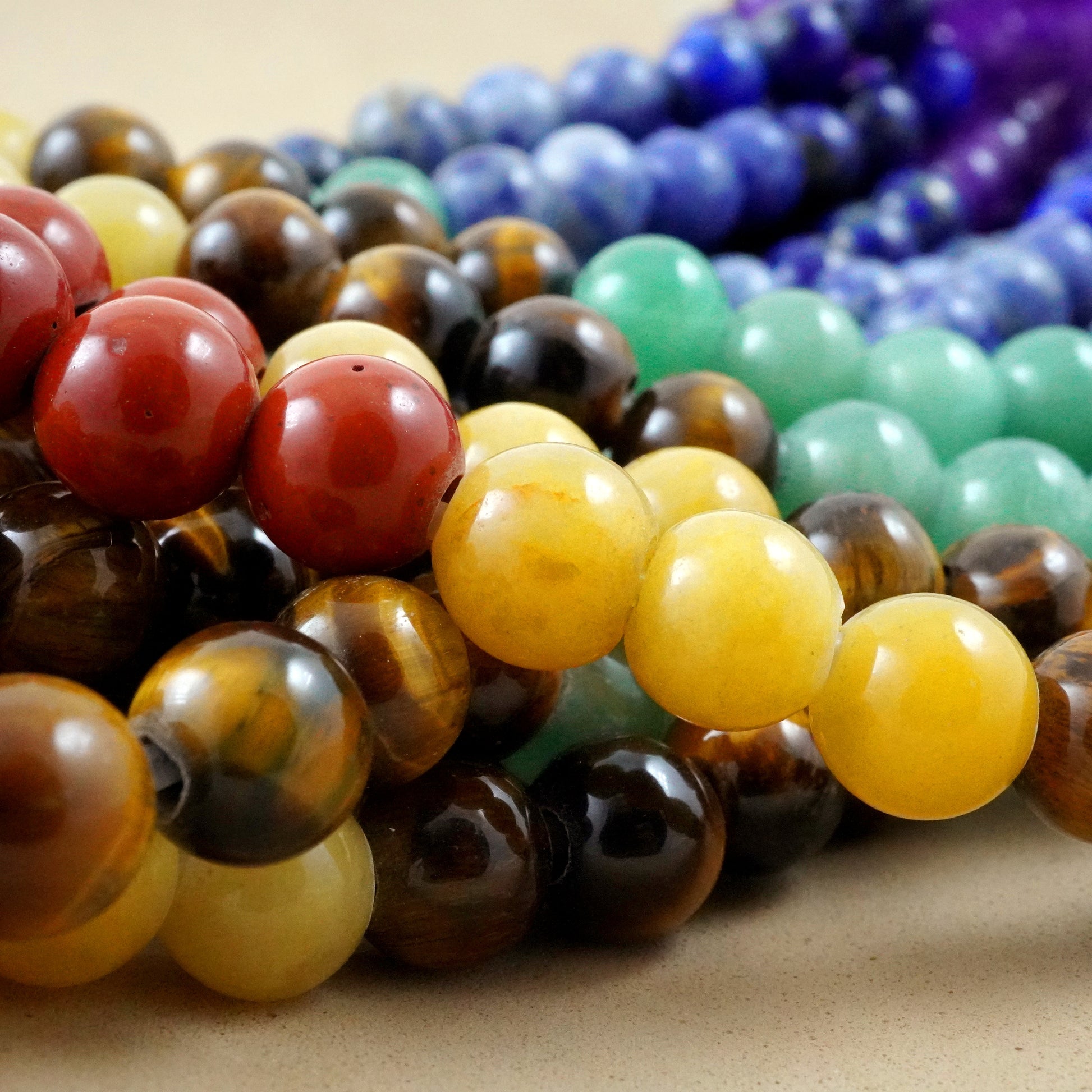 7 Chakra Stone Beads (Large Hole)(Round)(Smooth)(8mm)(10mm)(8"Strand)