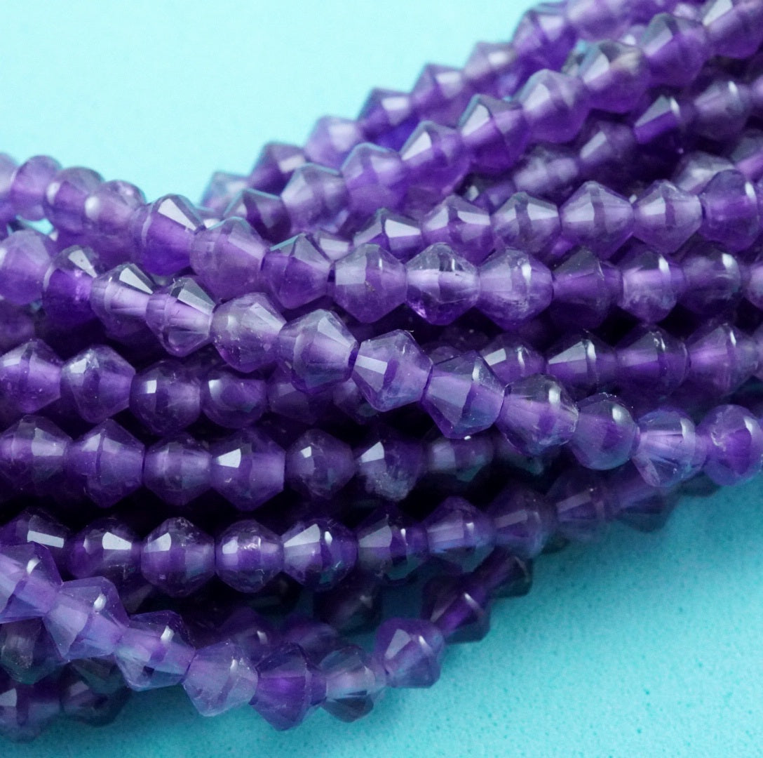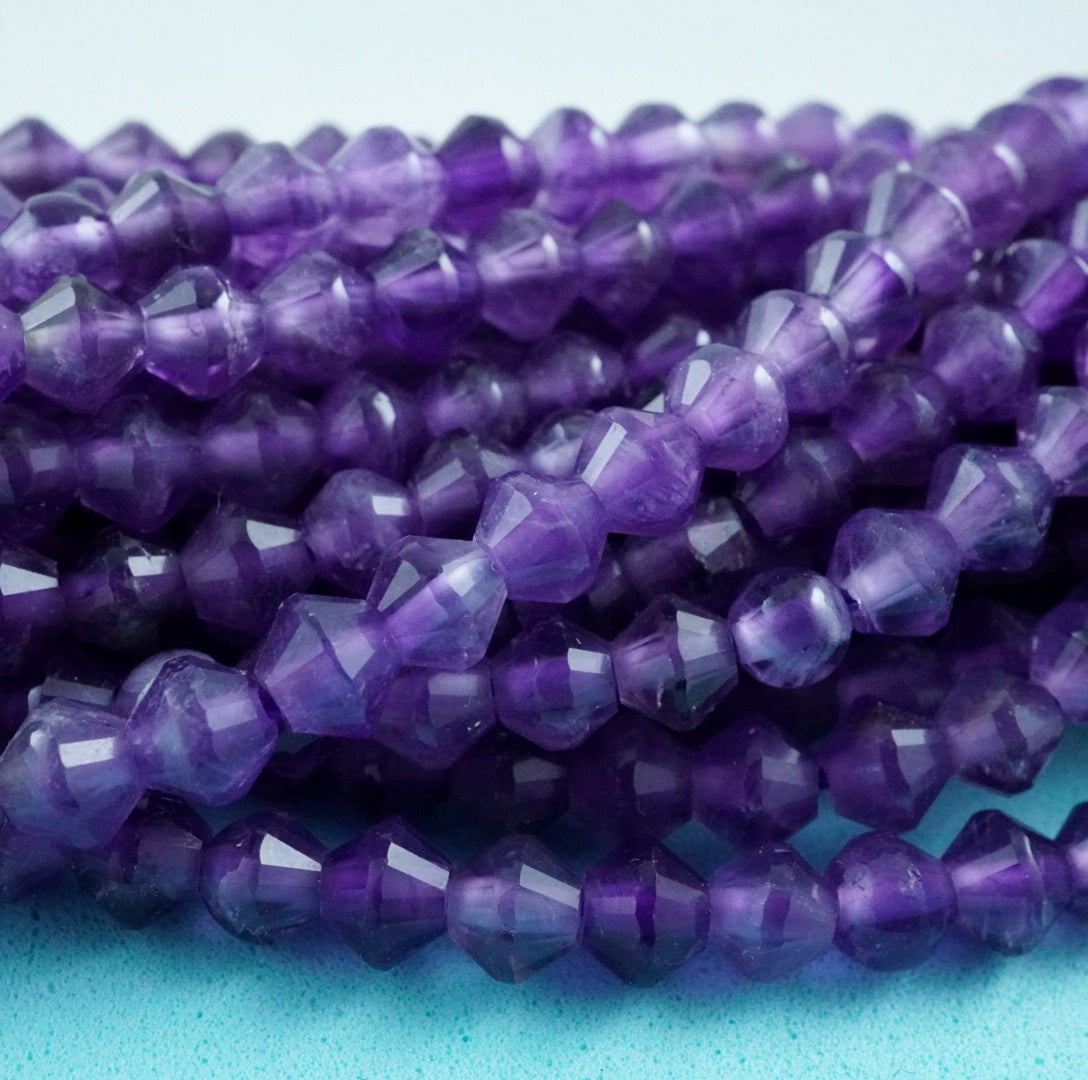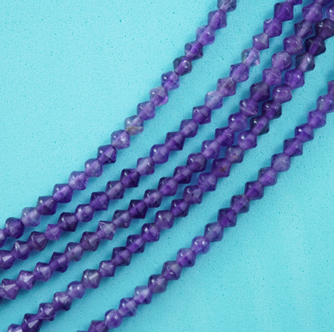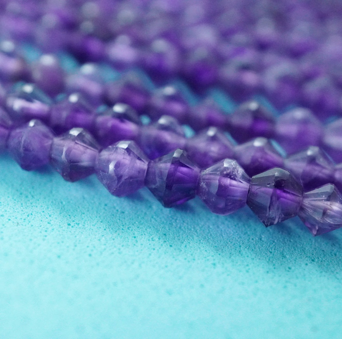 Amethyst (Bicone)(Micro)(Faceted)(4mm)(15.5"Strand)