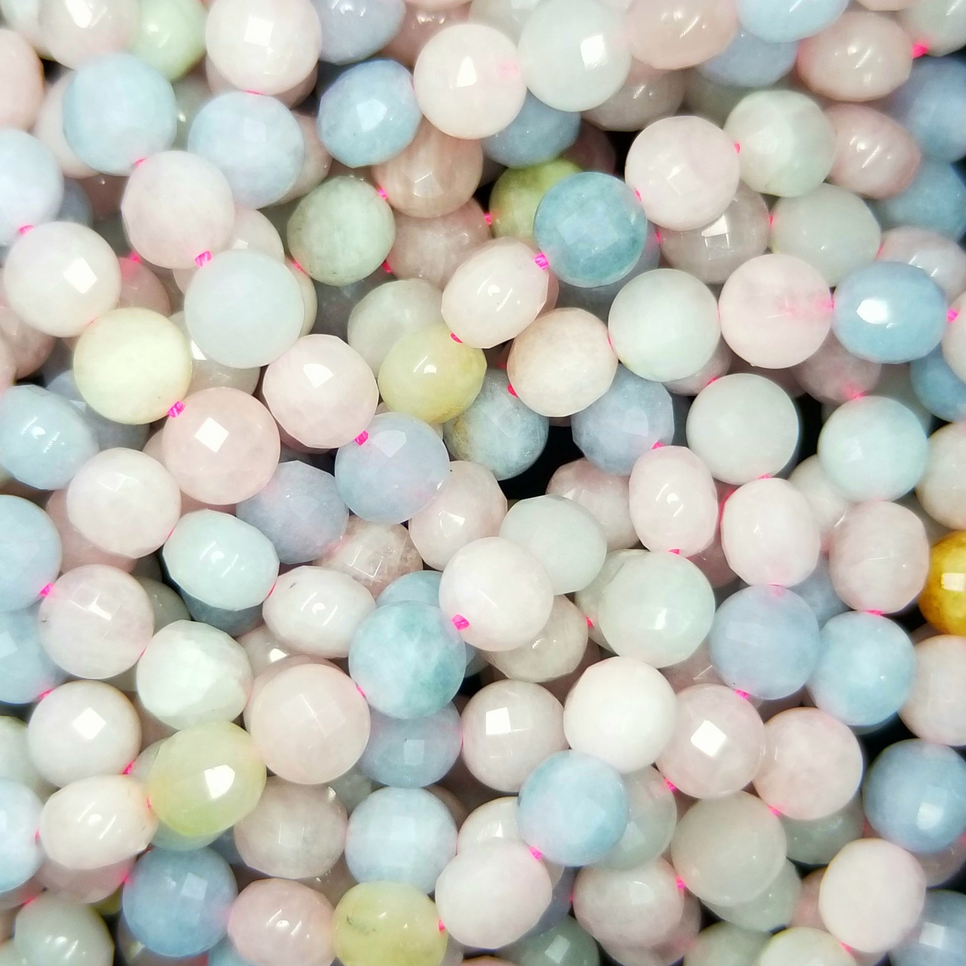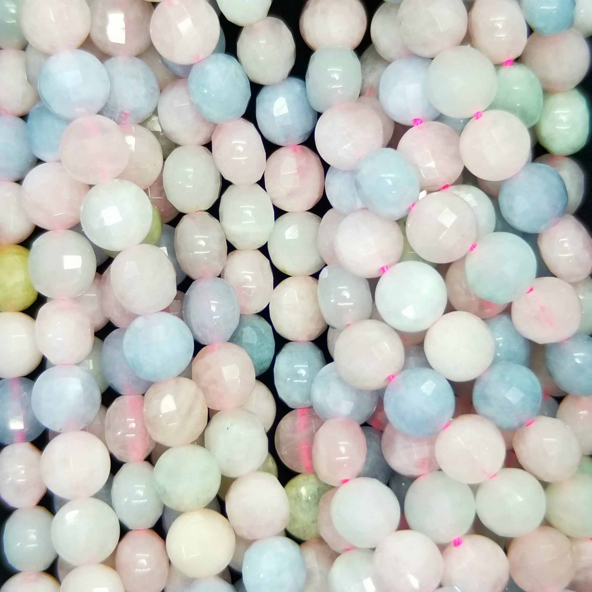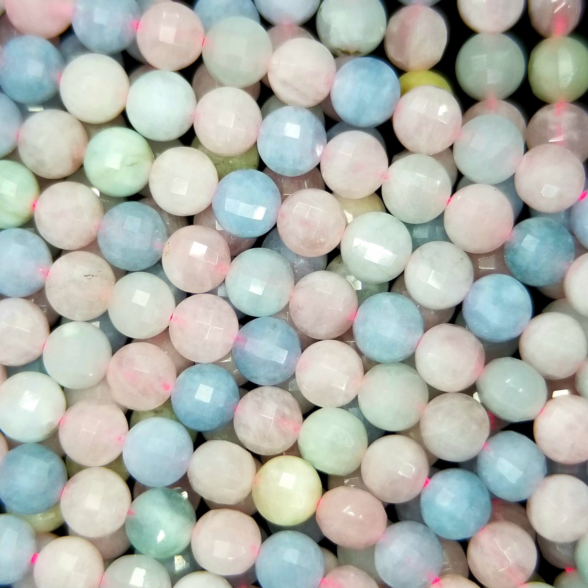 Aquamarine/Morganite Mix(Coin)(Faceted)(8x6mm)(16"Strand)
