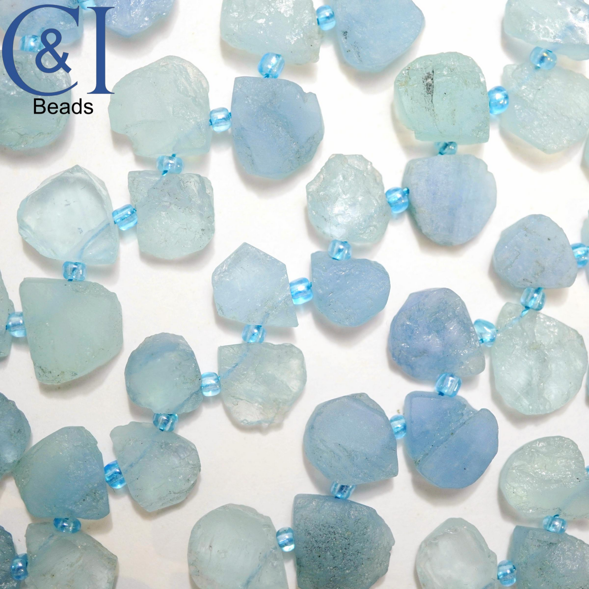 These Aquamarine Beads are left in their unpolished natural state and shaped in to rough top drilled teardrops. Very good quality beads and perfect for earrings.