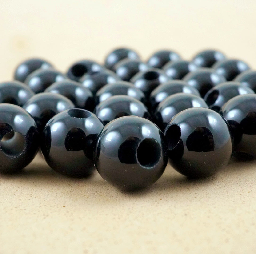 Black Onyx (Large Hole)(Round)(Smooth)(8mm)(10mm)(8"Strand)