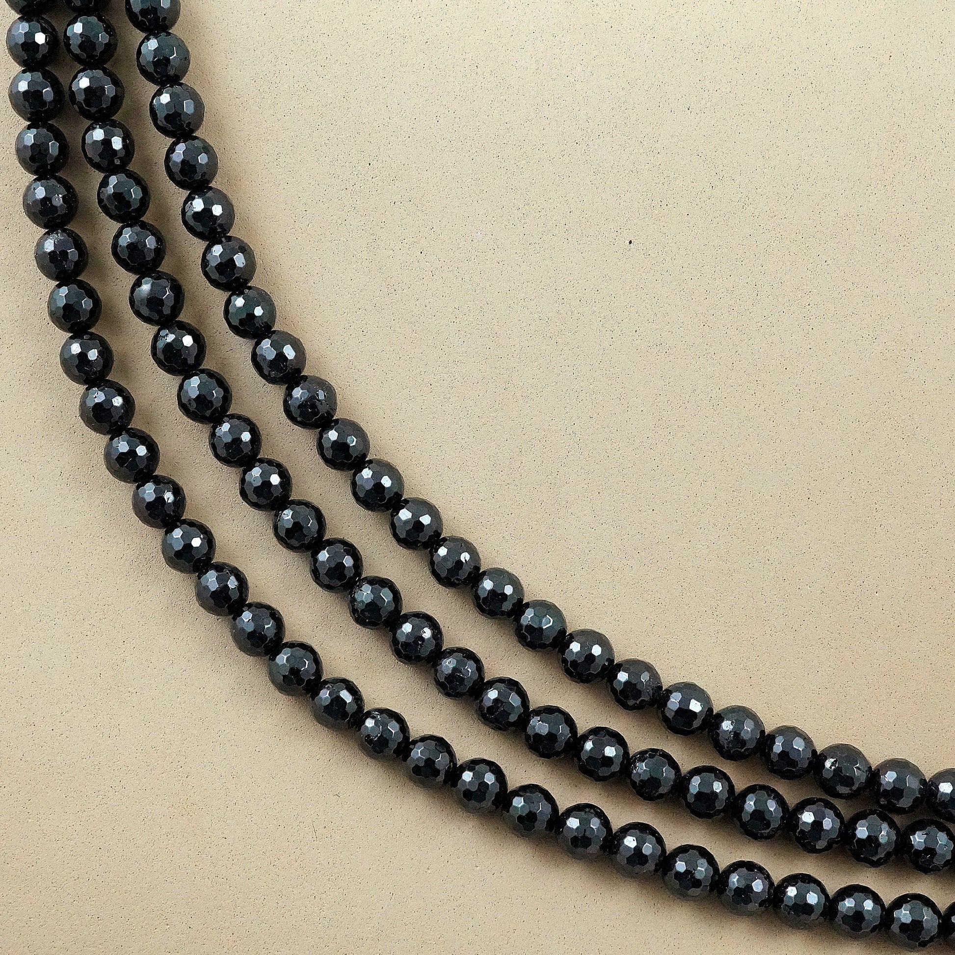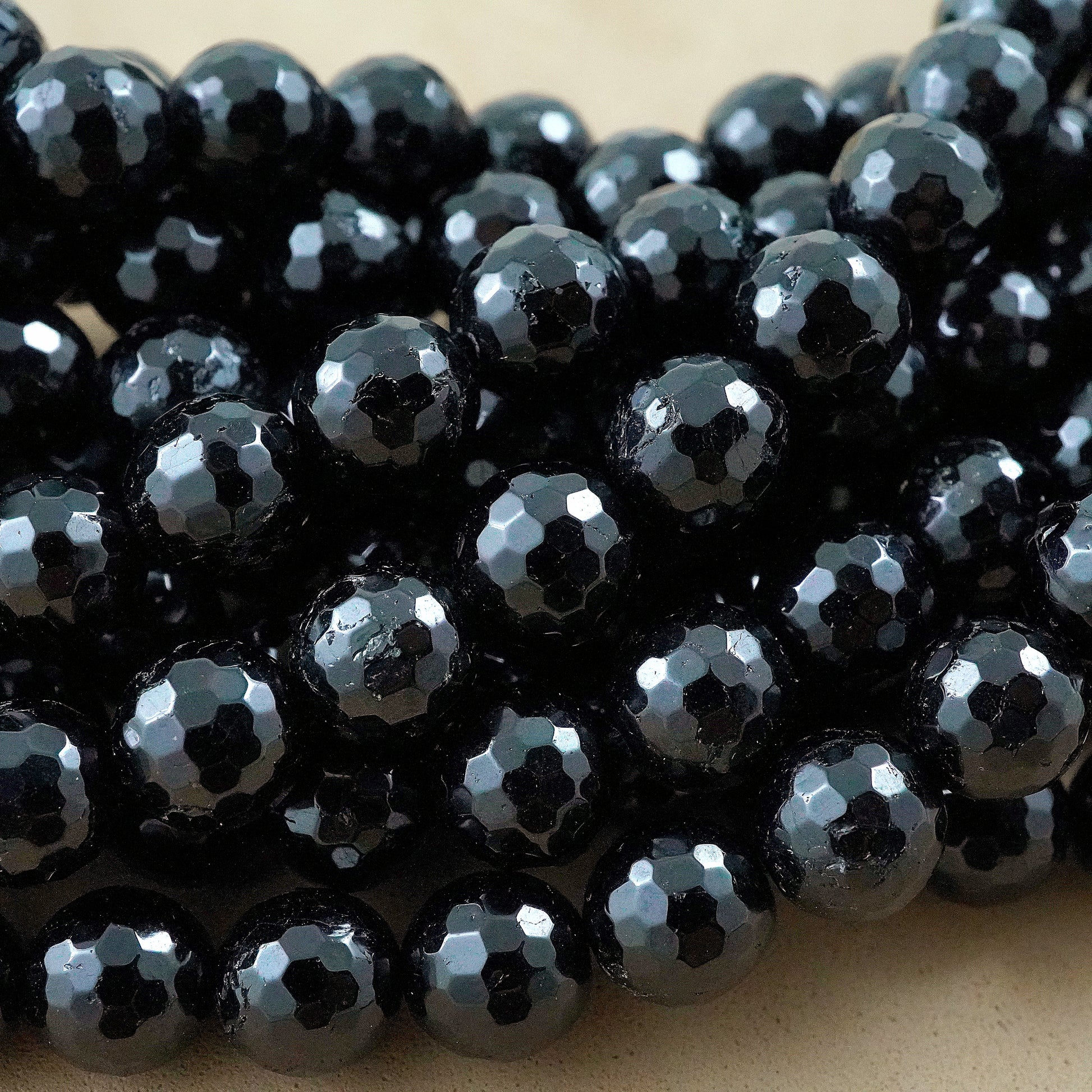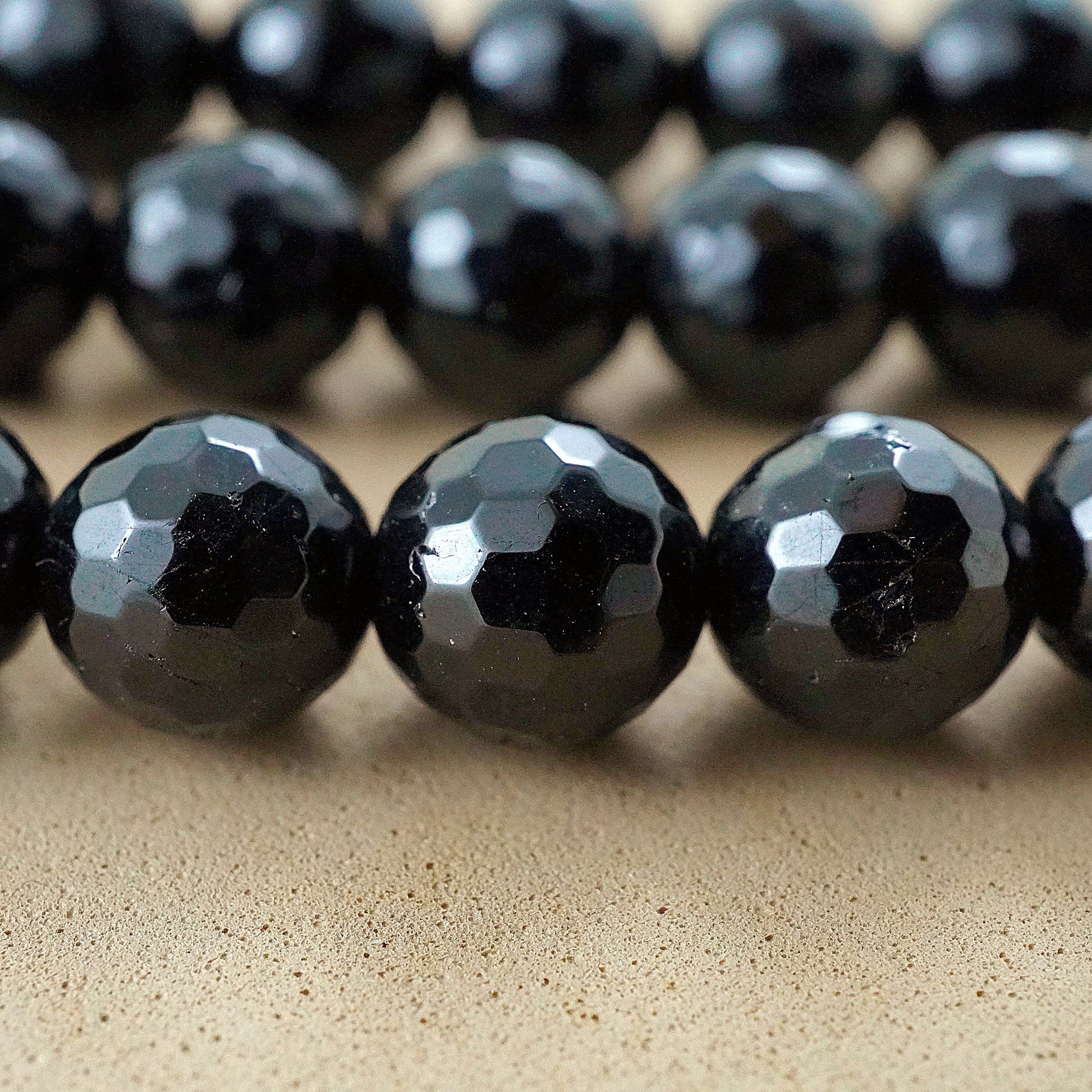 Black Tourmaline (Round)(Faceted)(6mm)(8mm)(10mm)(16"Strand)
