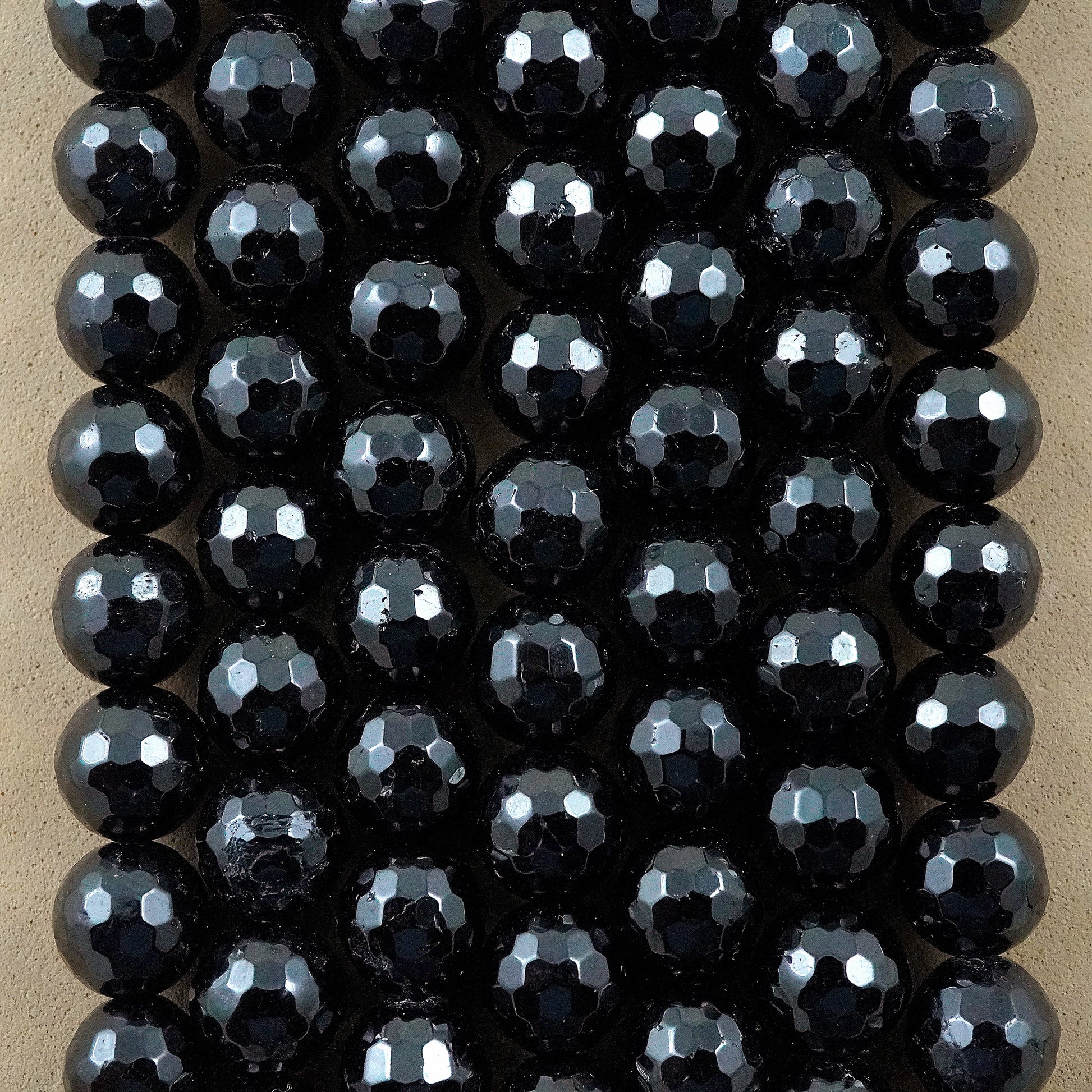Black Tourmaline also known as Schorl, is the most common variation of Tourmaline. It can form into beautiful crystals of its own and can also be found as tiny needles within Quartz crystal where it is known as Tourmalinated Quartz. Widely used for its neutral color and for spiritual purposes, this easily one of the most popular stones today. These particular beads have been faceted to make them shine even more.
