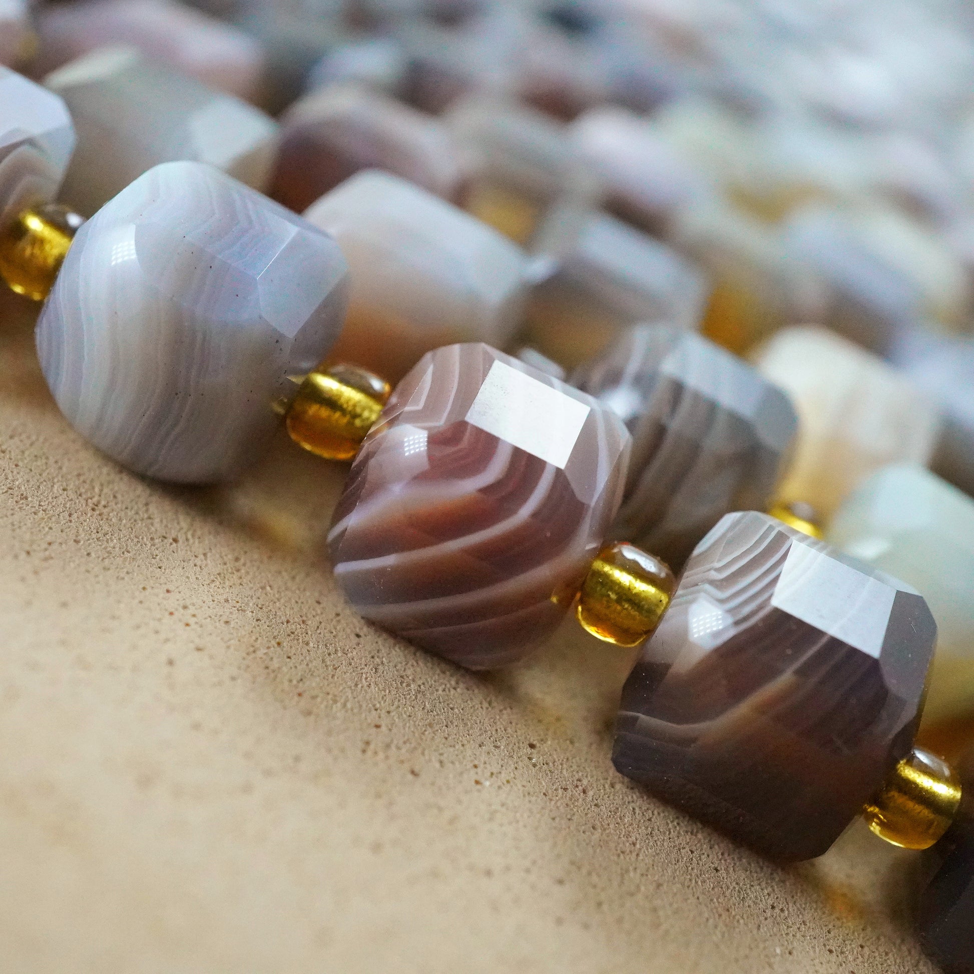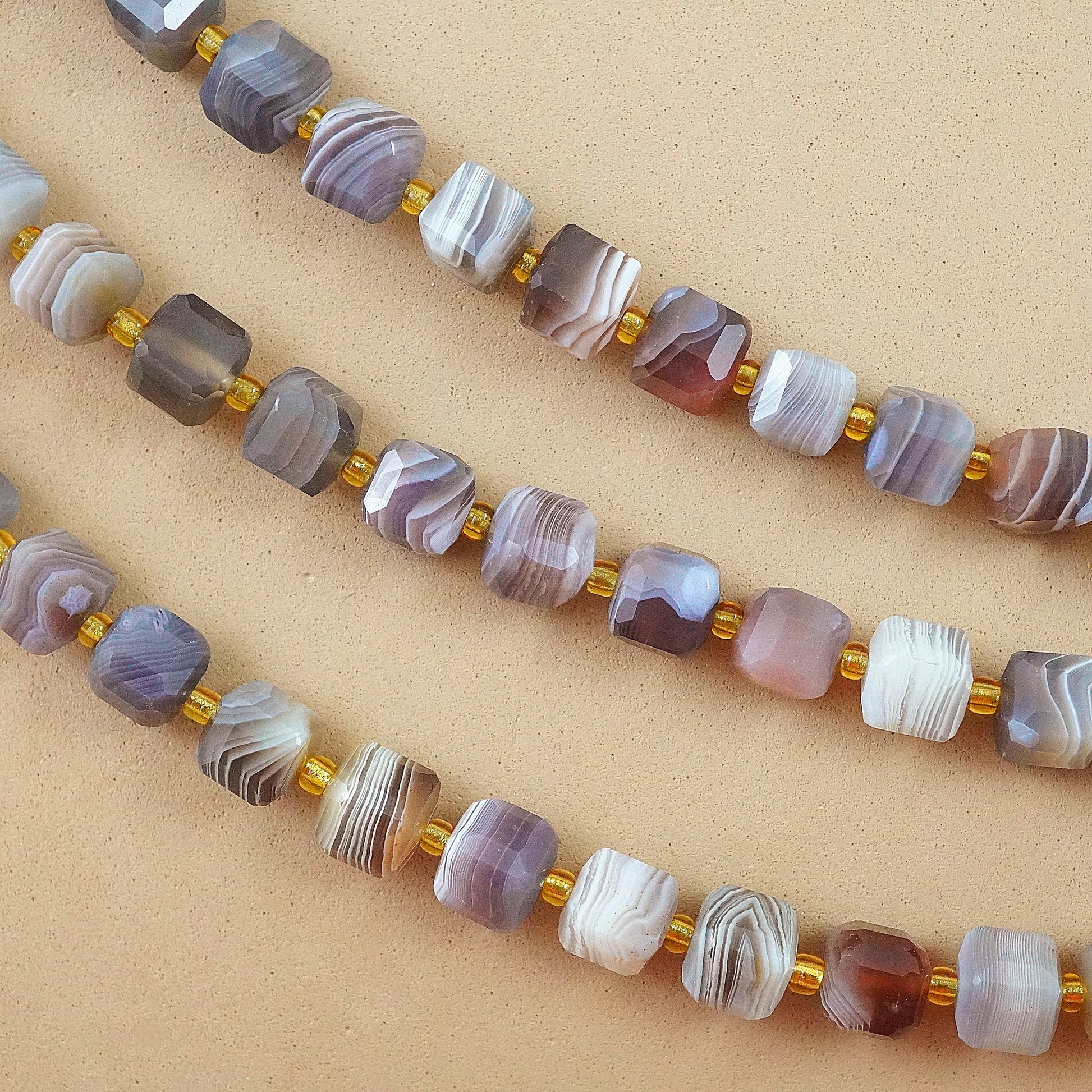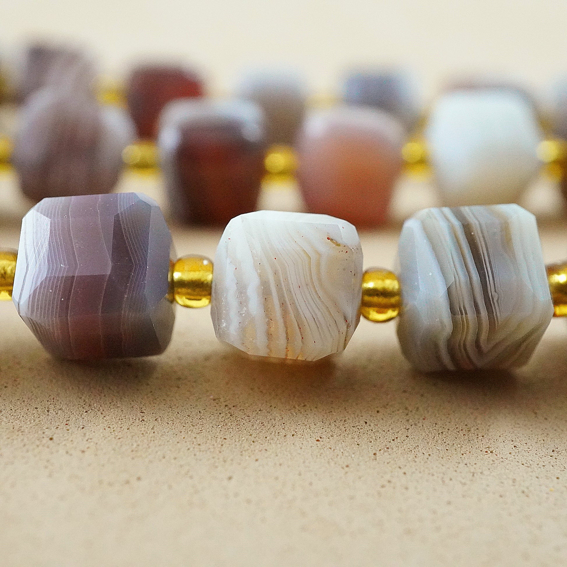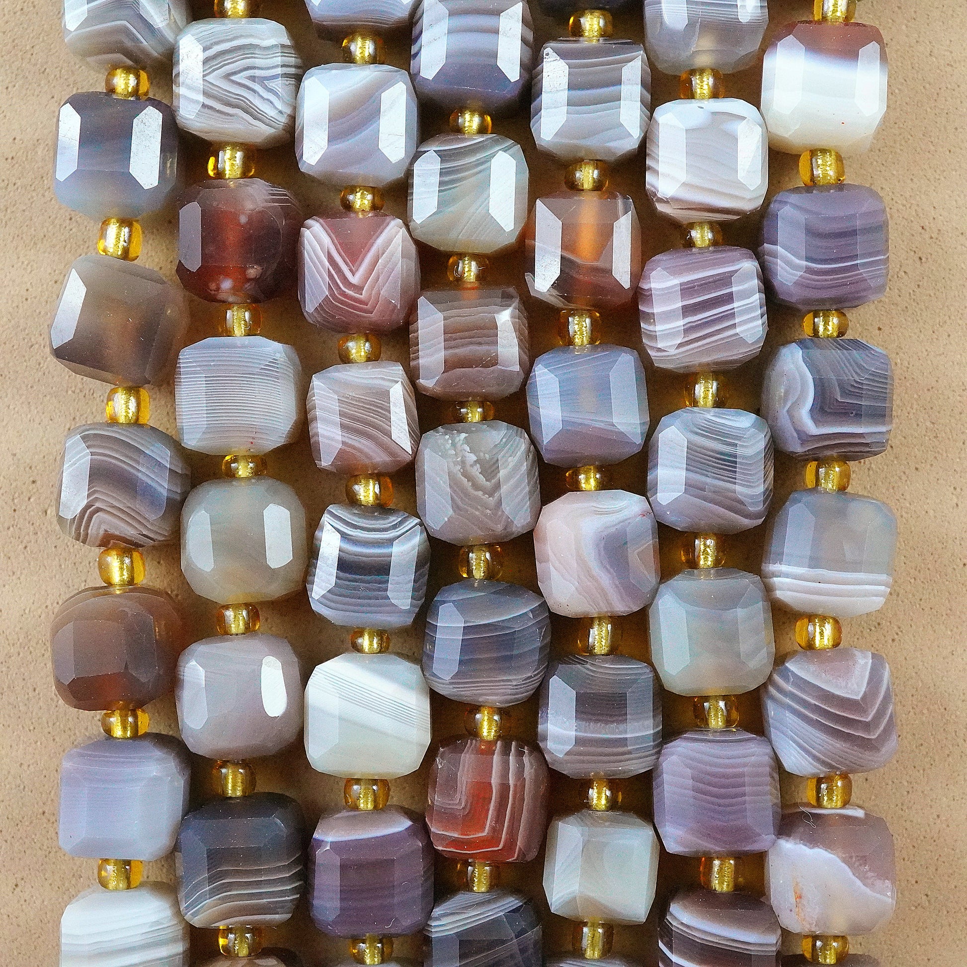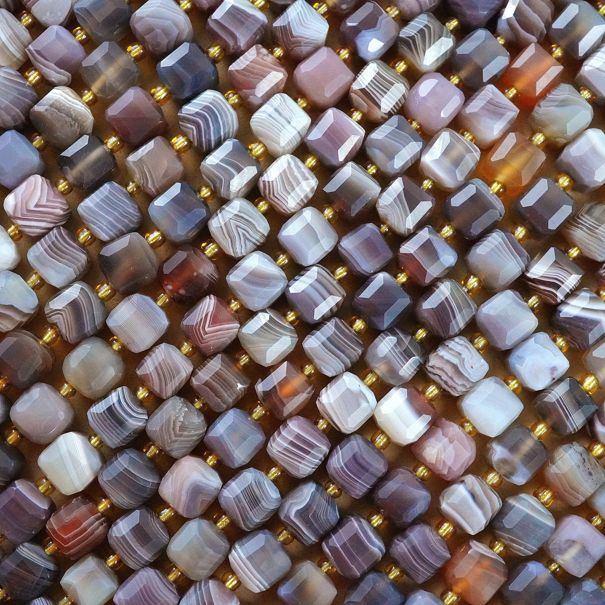 Botswana Agate faceted cube beads are ideal for jewelry making, showcasing natural hues and intricate patterns that catch and reflect light. Beyond their aesthetic appeal, Botswana Agate is revered for its metaphysical properties, believed to bring emotional stability and promote inner peace. Incorporate these beads into your designs to infuse beauty and spiritual harmony into your creations.