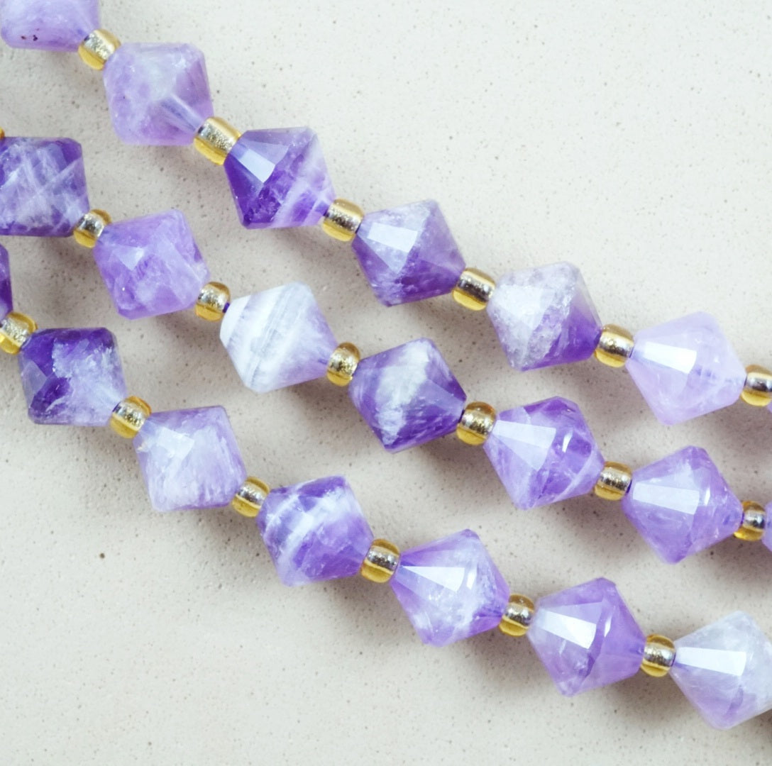 Chevron Amethyst (Bicone)(Faceted)(8mm)(16"Strand)