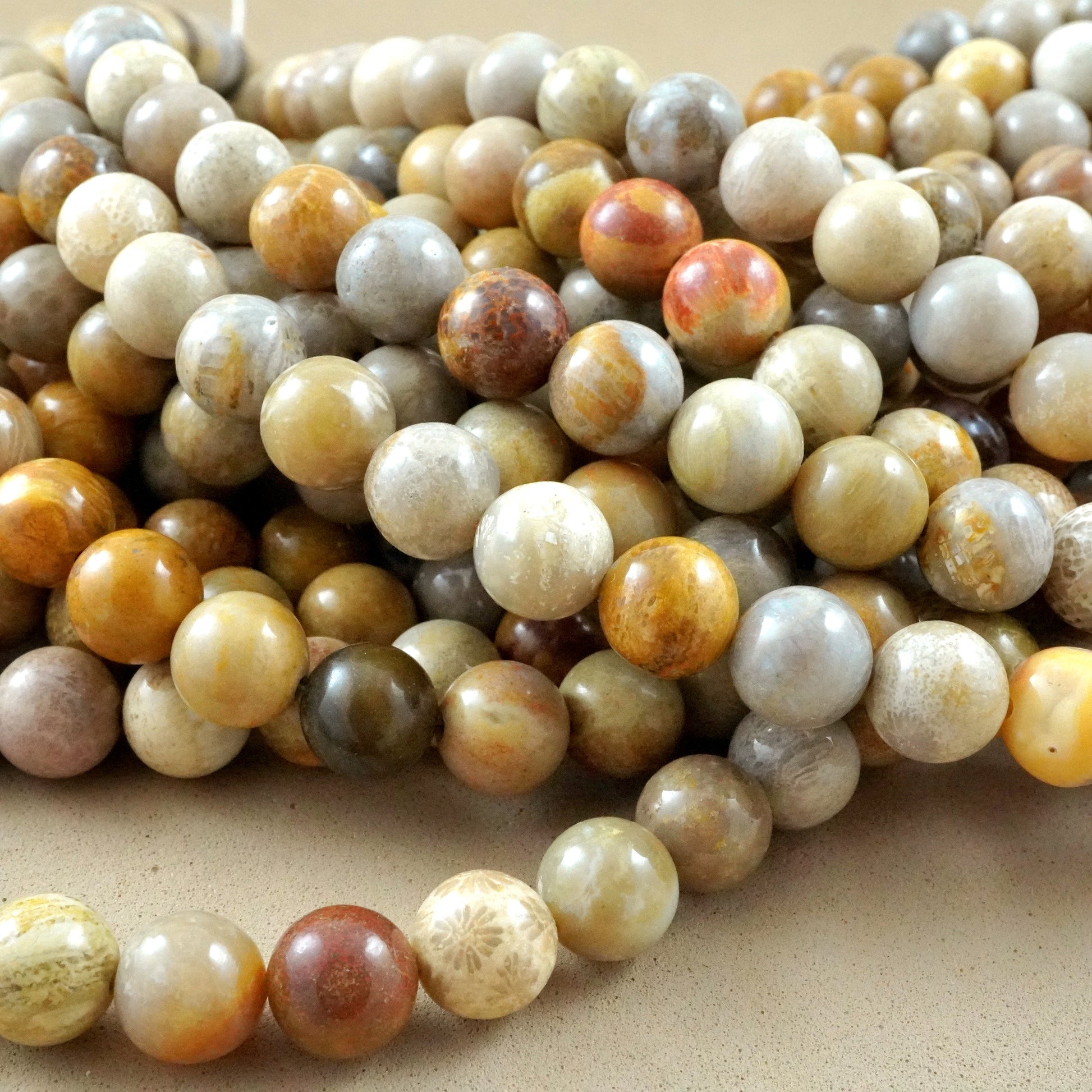 Fossil Coral (Round)(Smooth)(6mm)(8mm)(10mm)(12mm)(16"Strand)