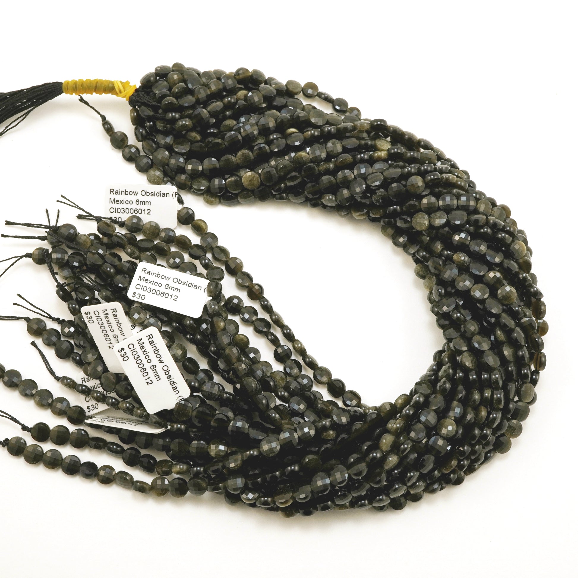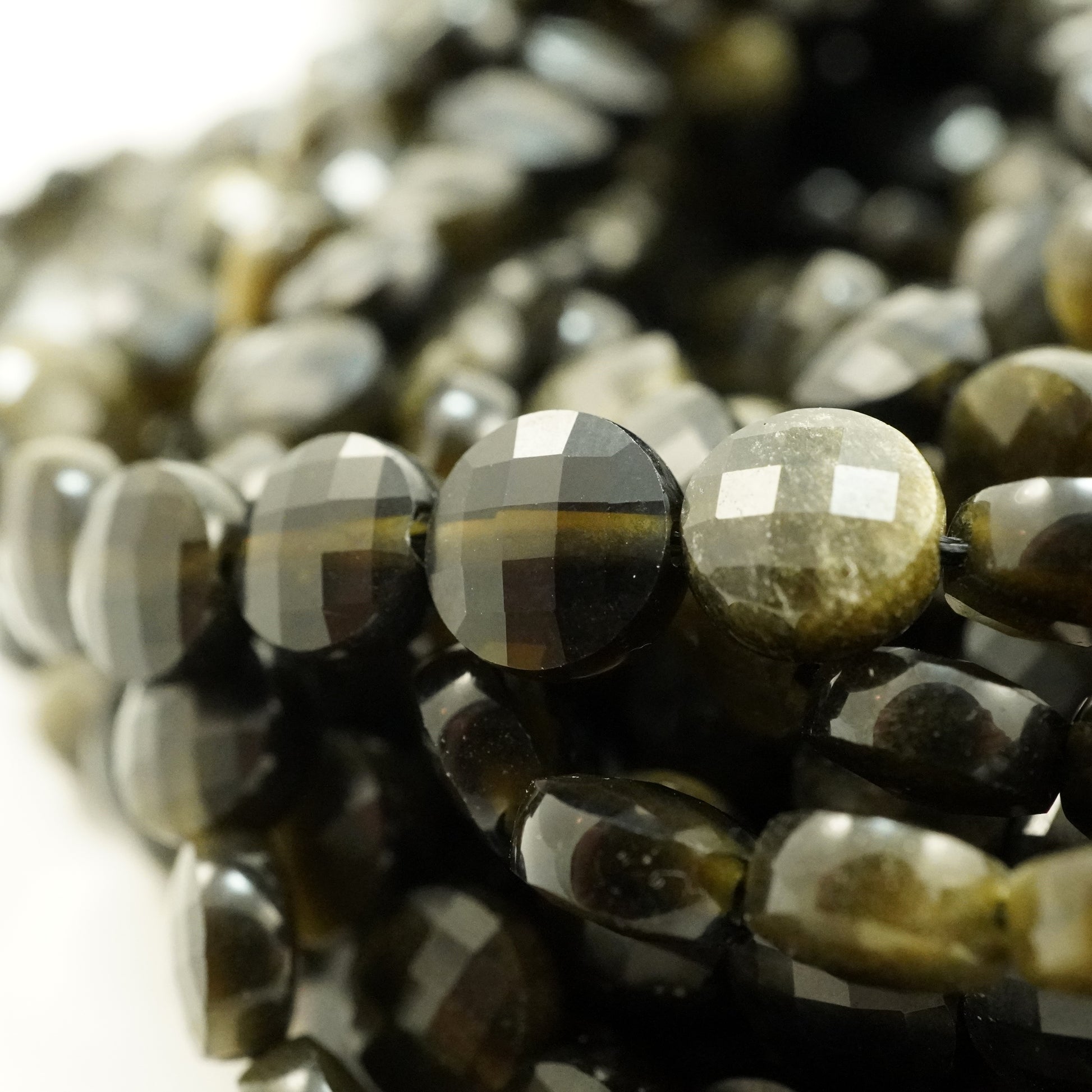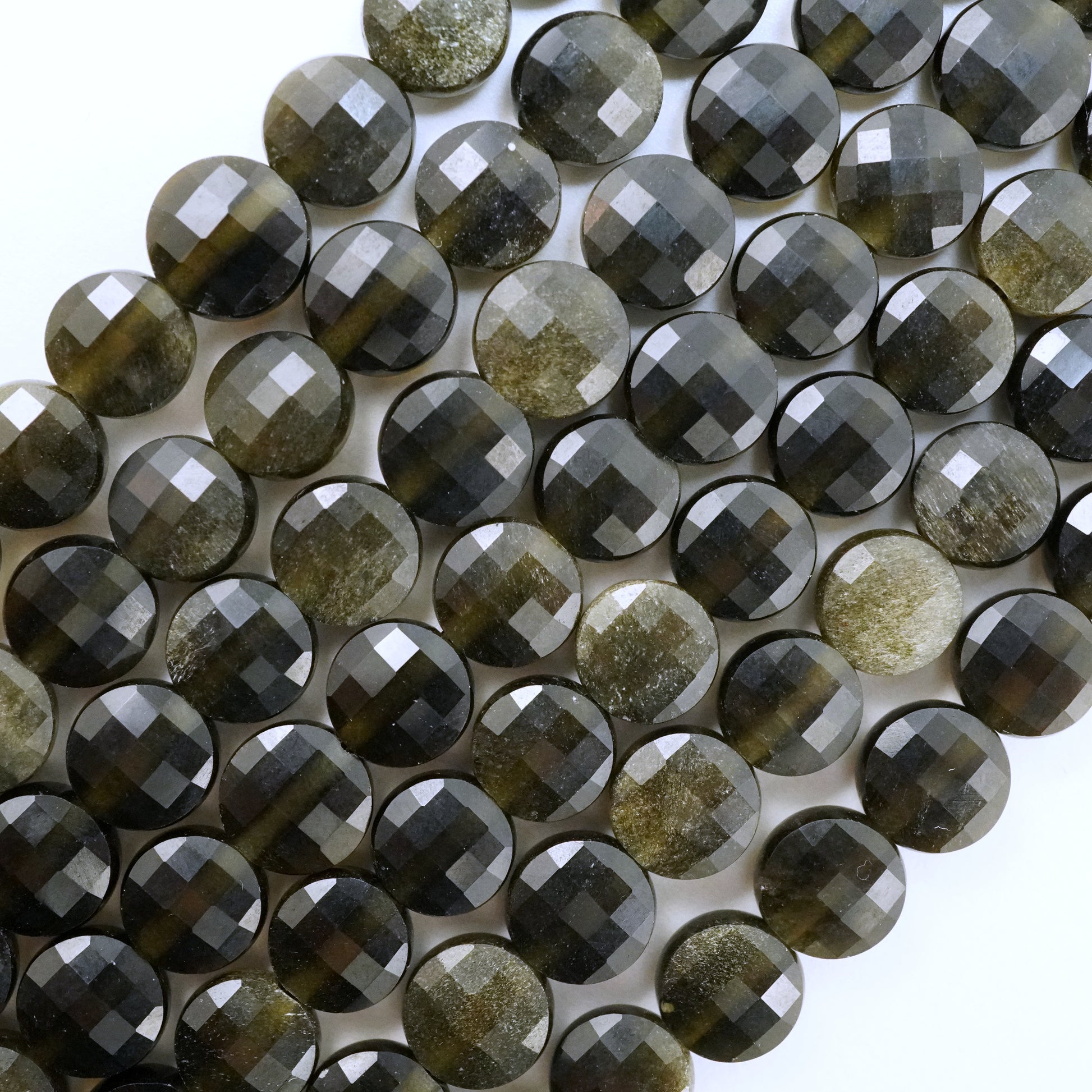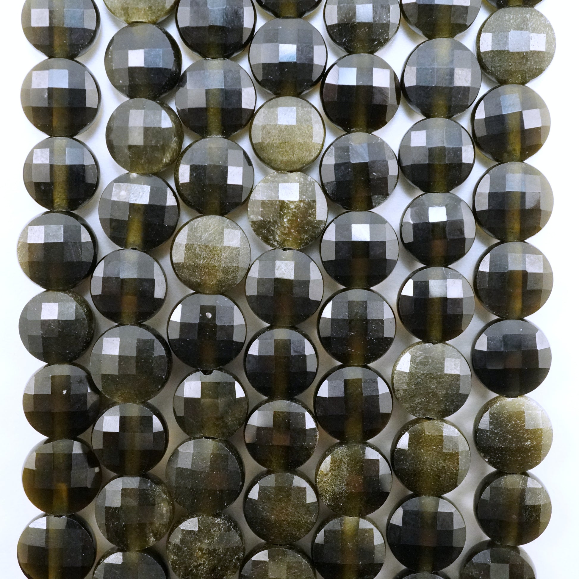 Golden Obsidian (Coin)(Micro)(Faceted)(6×4mm)(15"Strand)