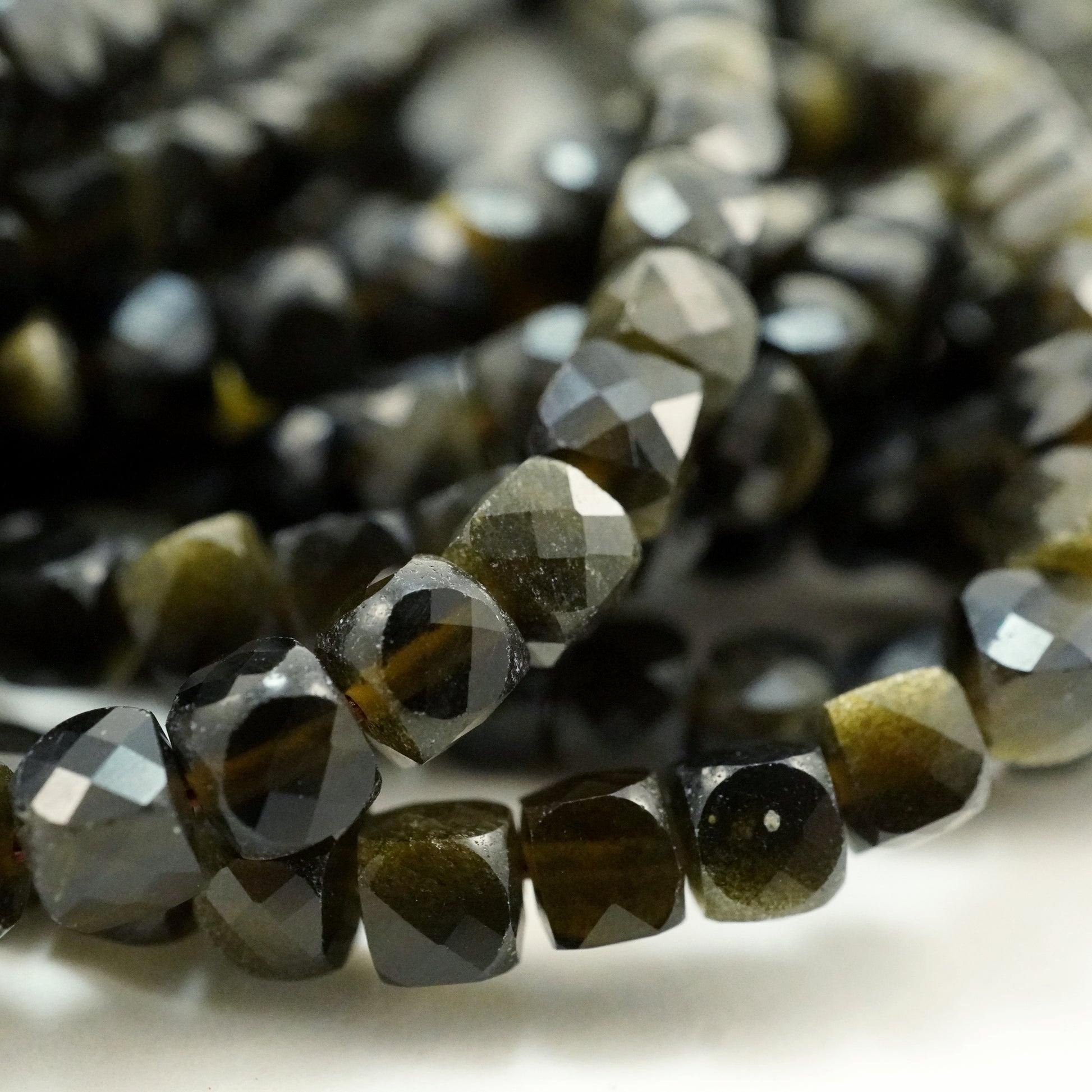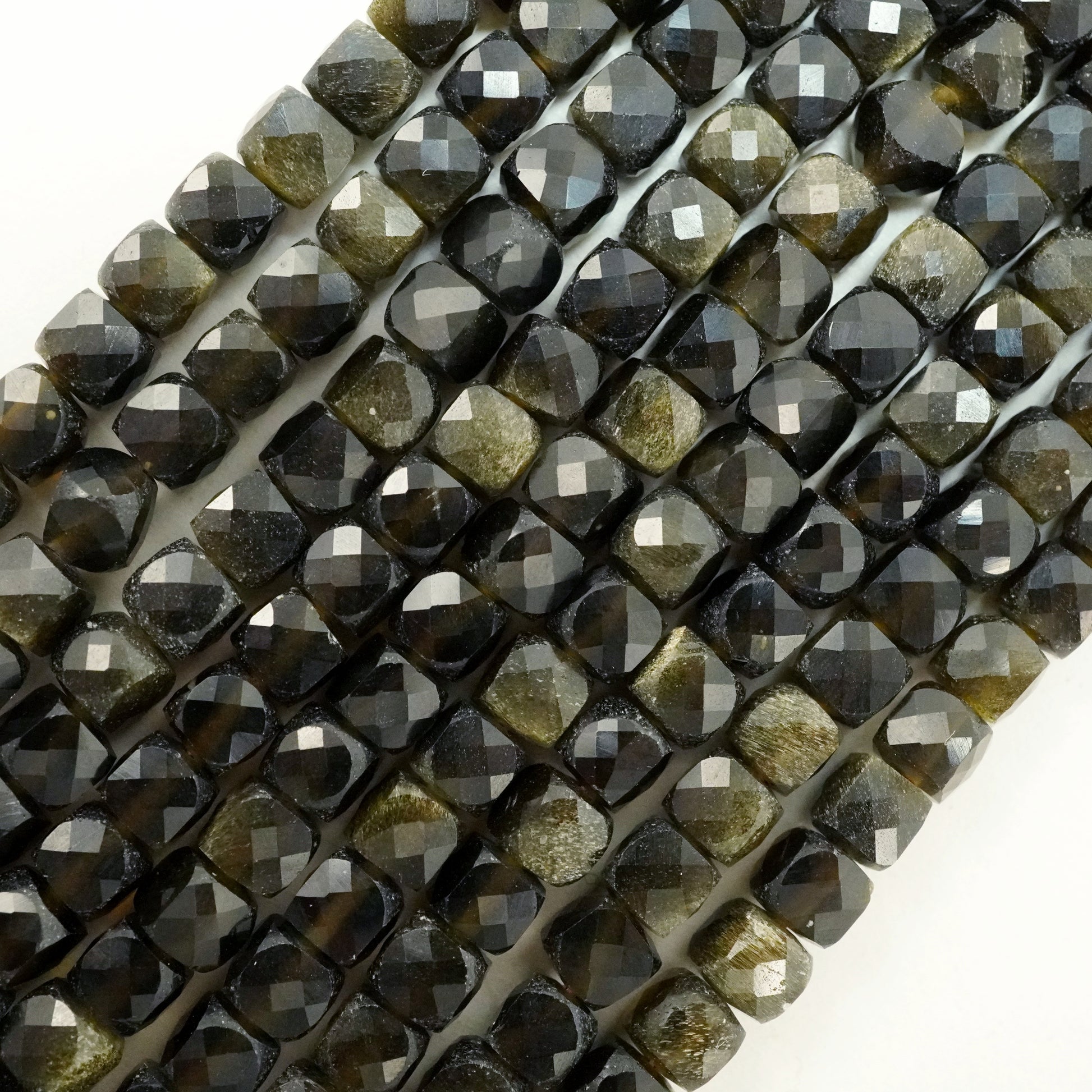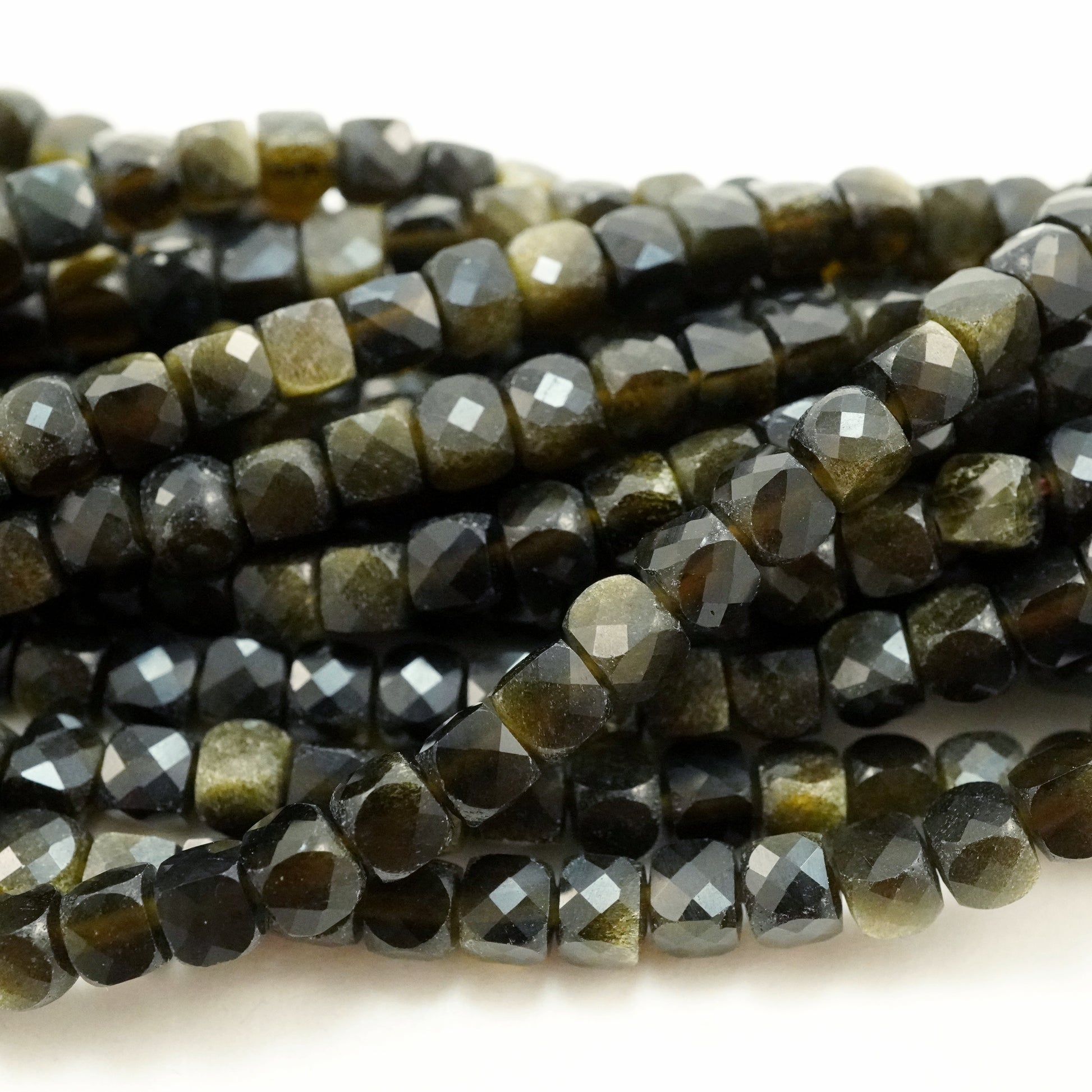 Golden Obsidian (Cube)(Micro)(Faceted)(3mm)(15"Strand)