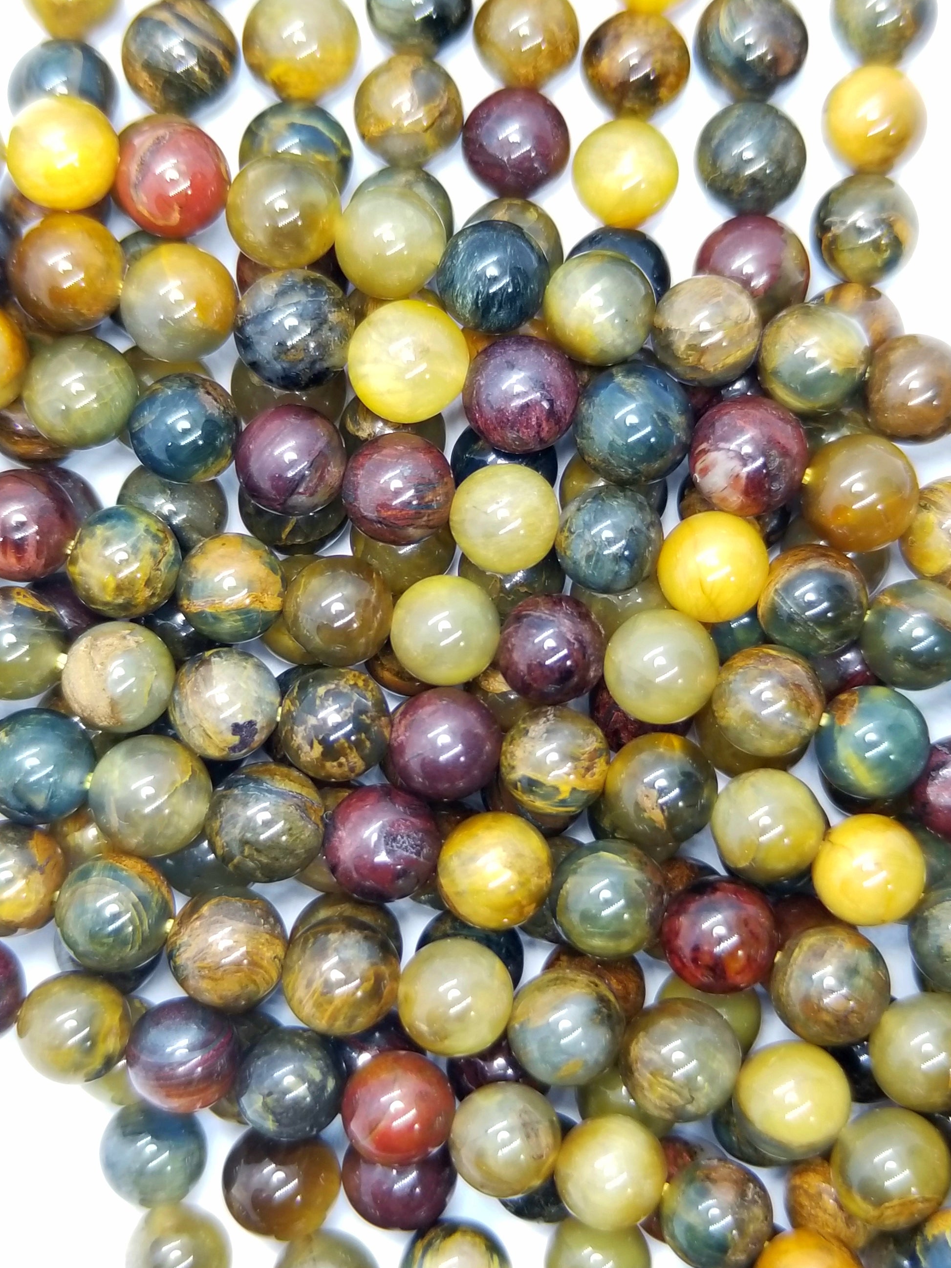 Golden Pietersite is a member of the Tiger Eye and Quartz family. The Term "Golden" come from the more pronounced yellow and golden tones in each bead. A very beautiful sight to see.