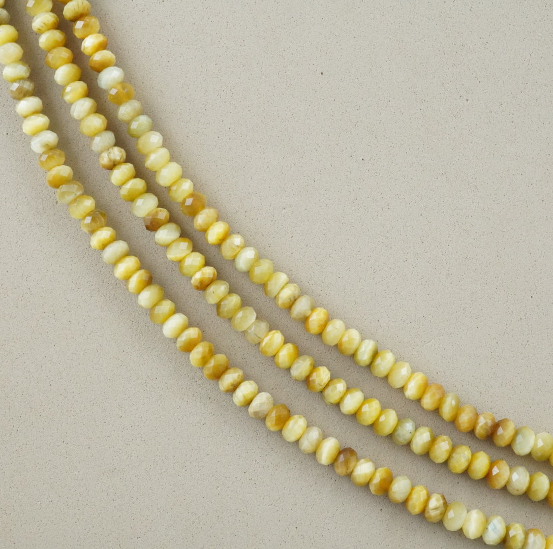 These particular beads have been cut and polished into faceted rondelle beads.