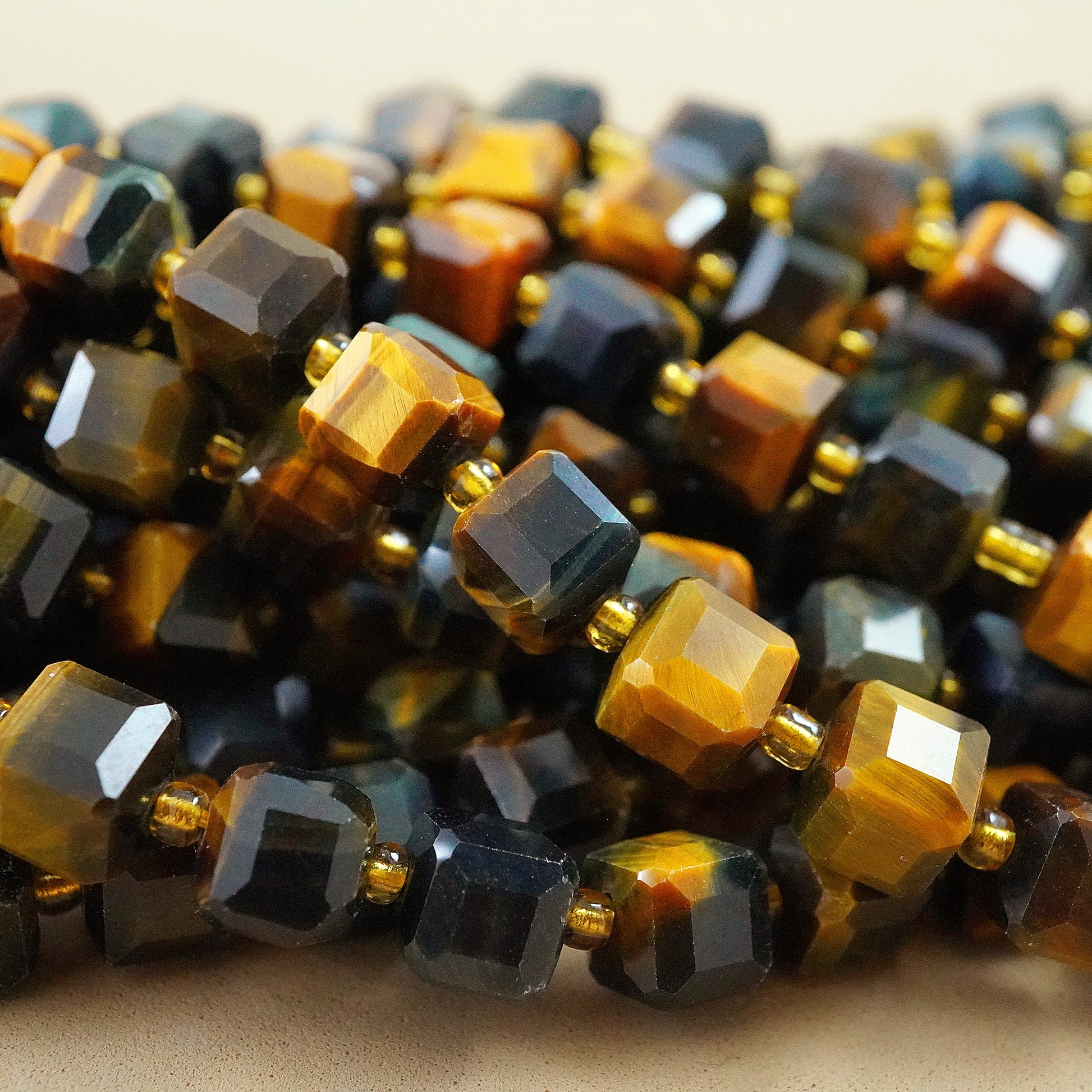 Hawk's Eye faceted cube beads are a stunning choice for jewelry making, featuring a mesmerizing blue-gray hue with chatoyant bands that shimmer in the light. Renowned for its protective qualities, Hawk's Eye is believed to enhance clarity of vision and insight, making it a valuable stone for decision-making and personal growth. Add a touch of elegance and metaphysical strength to your designs with Hawk's Eye faceted cube beads, capturing both beauty and spiritual significance in every piece.