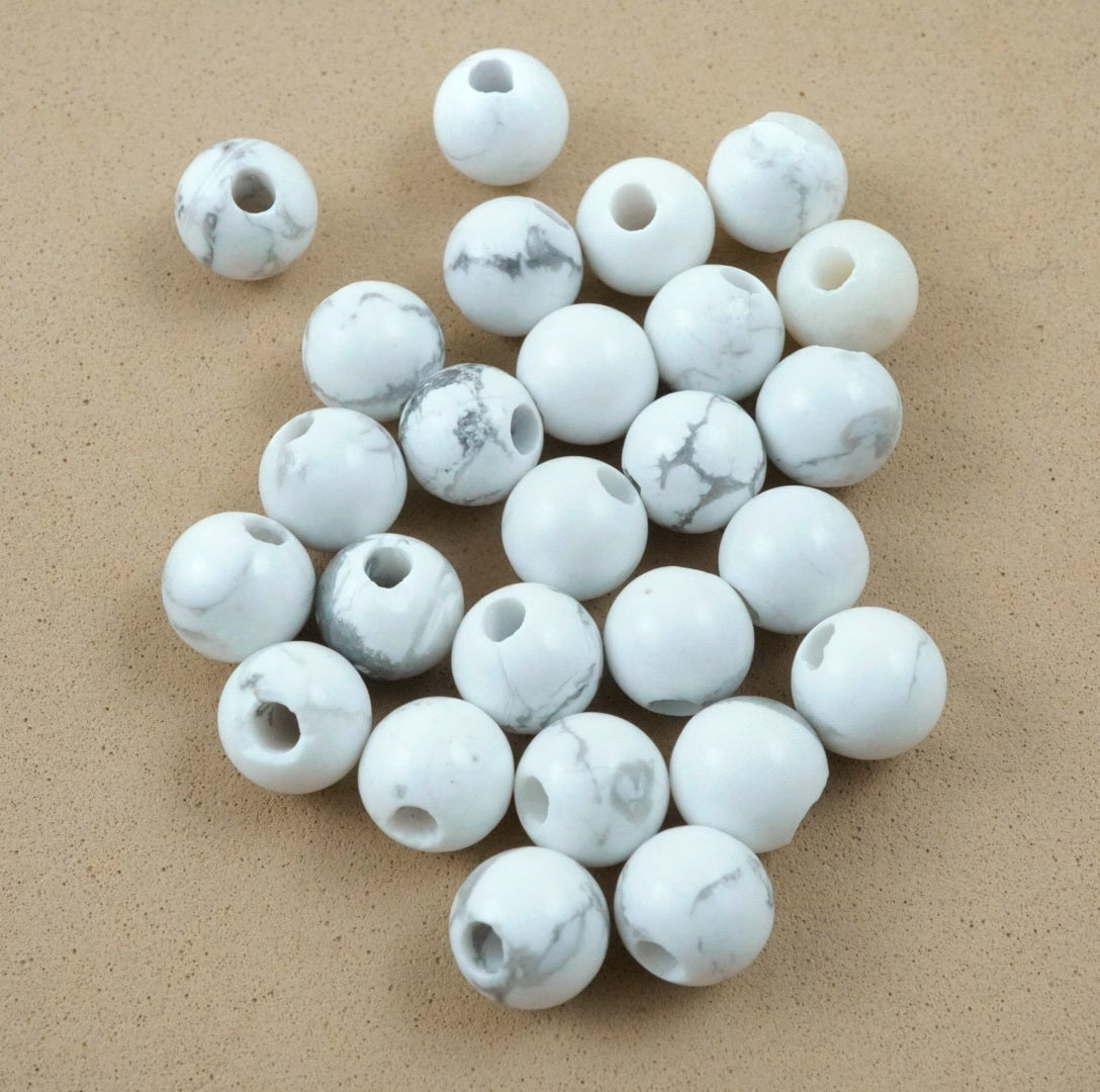 Howlite (Large Hole)(Round)(Smooth)(8mm)(10mm)(8"Strand)