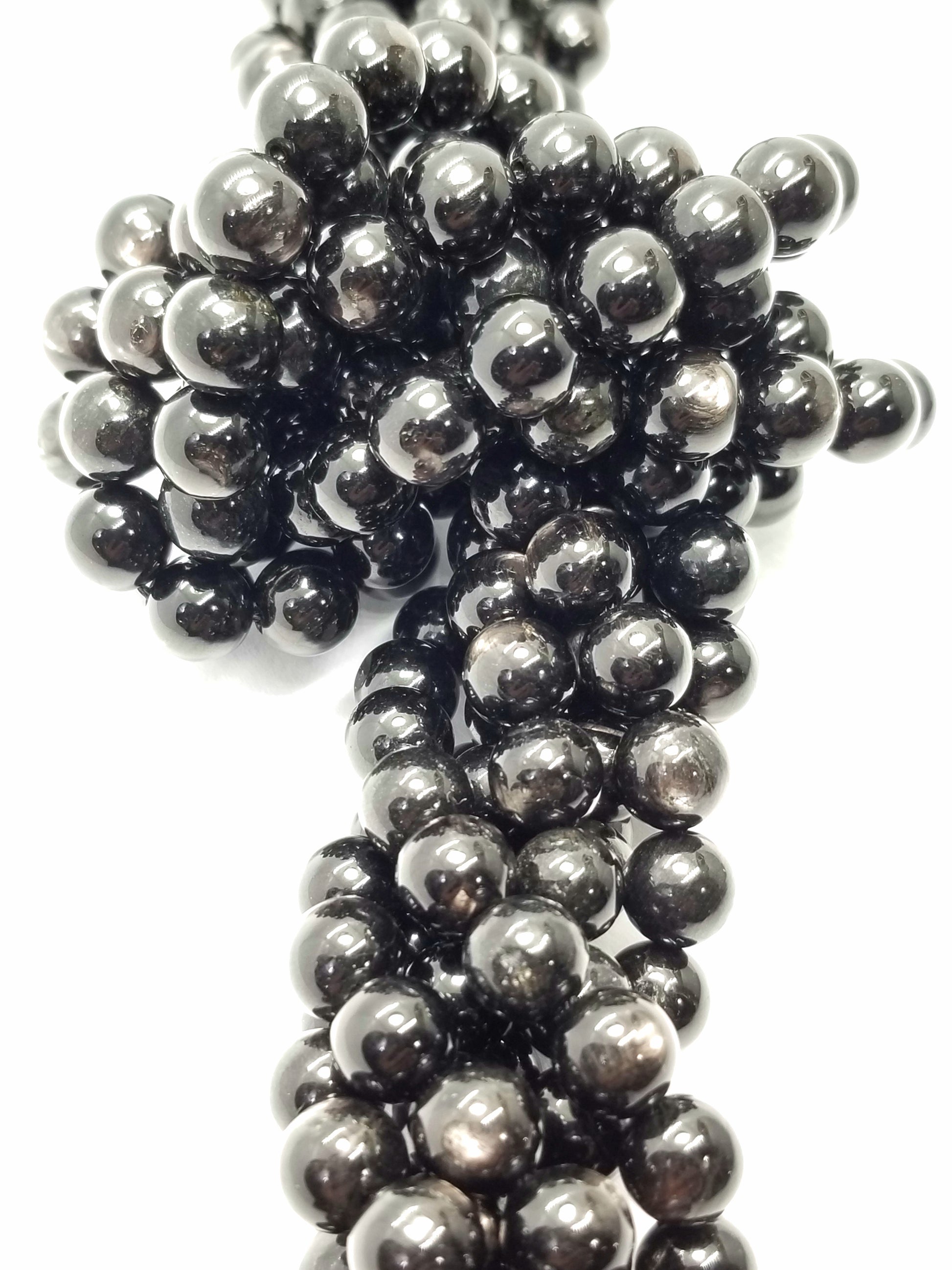 Hypersthene is magnesium-iron silicate mineral related to Labradorite and feldspar. Named in 1804, its name is said to come from the greek words hyper and stonos, which means over strength. It is known for its dark black base with iridescent shades of gray.