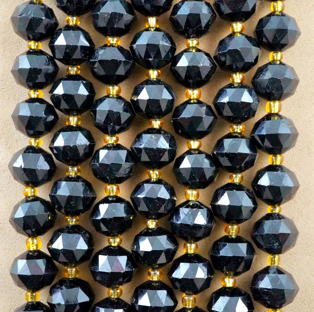 Black Tourmaline (Rondelle)(Triangle-Faceted)(10x8mm)(15.5"Strand)