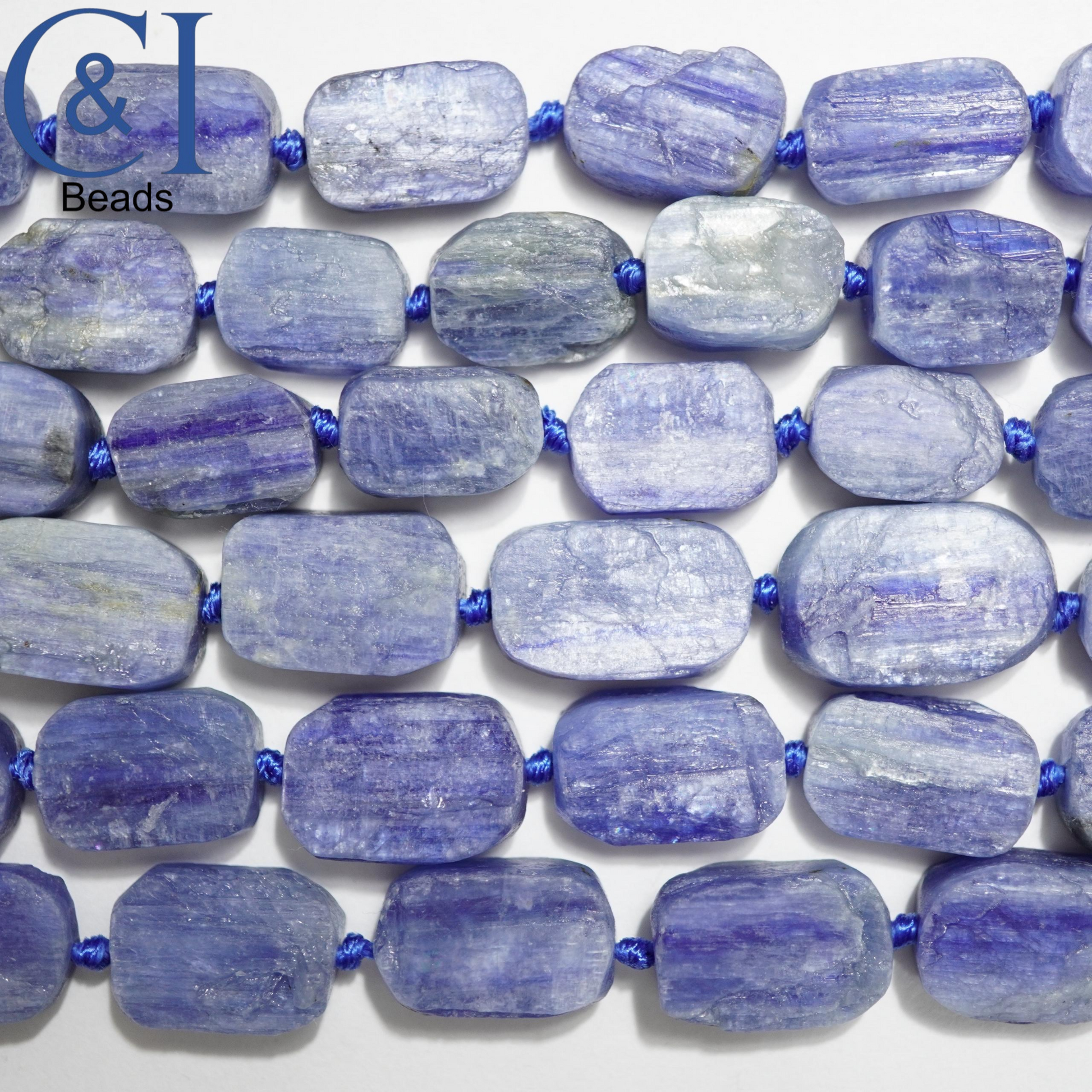 Kyanite is a beautiful stone known for its denim blue color. These beads have been hand cut into oval shaped beads while maintaining its natural raw state.