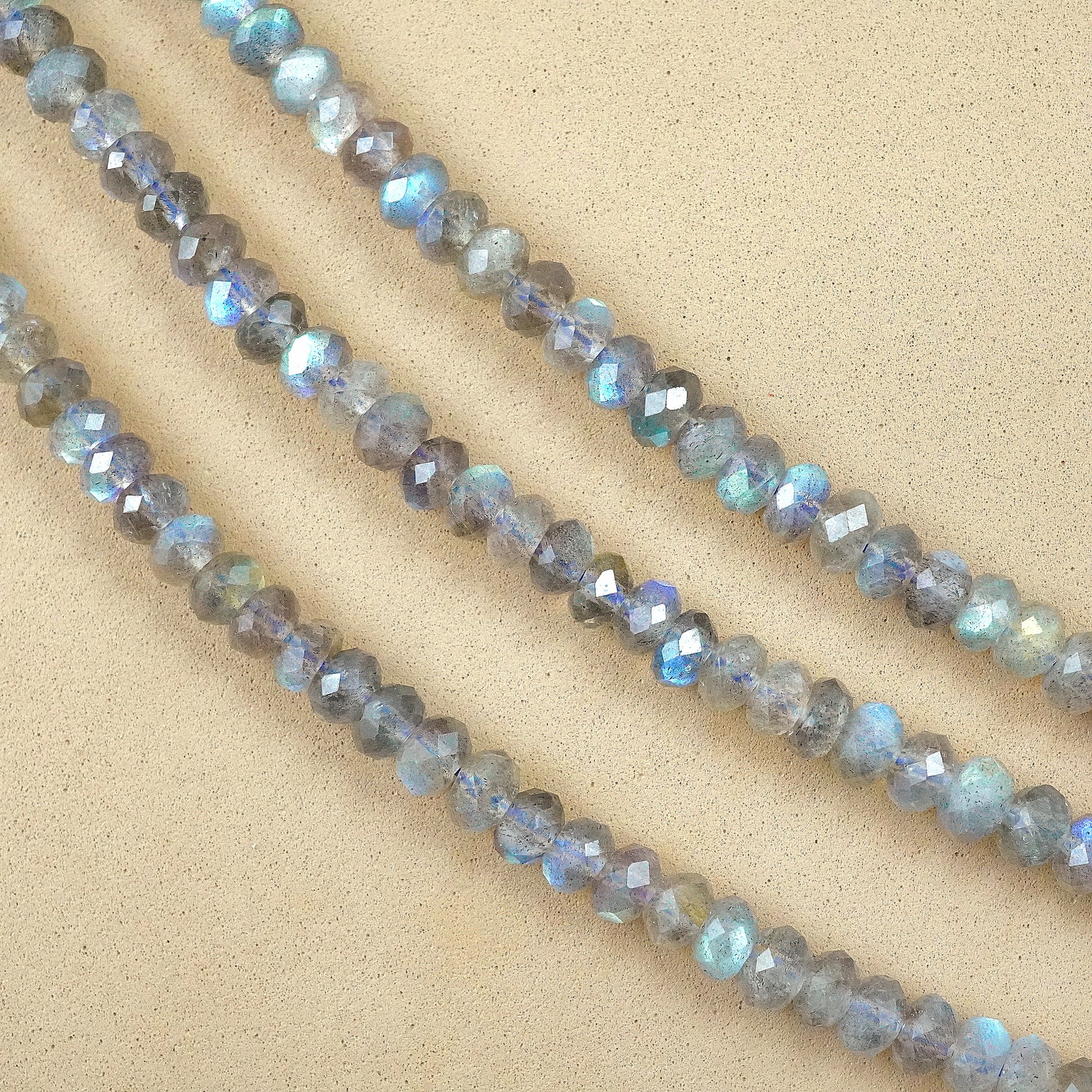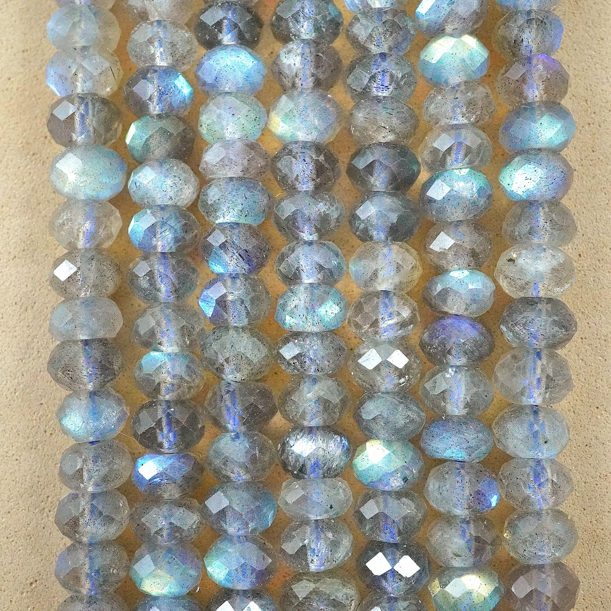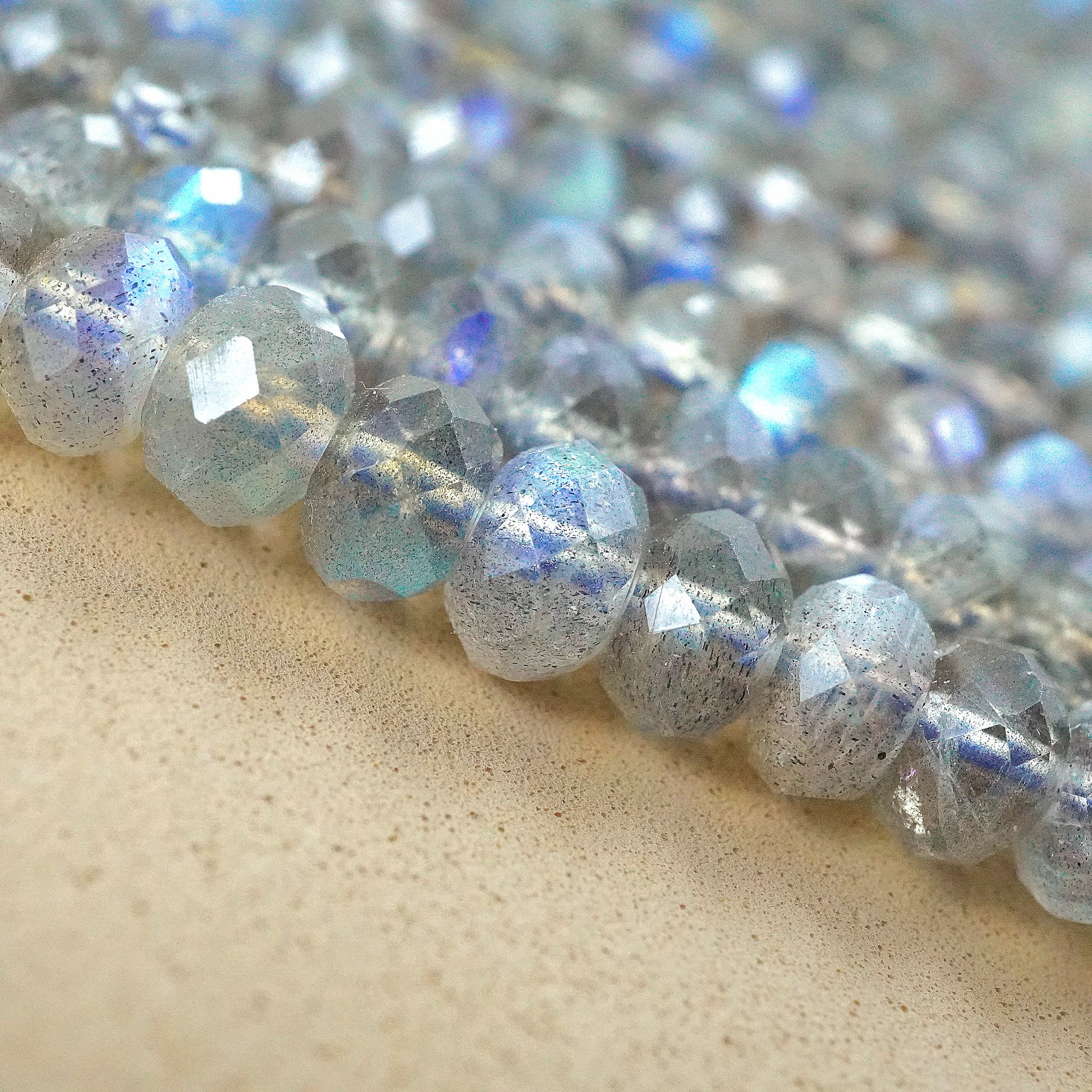 Labradorite, with its mesmerizing play of colors and iridescent flashes, transforms into stunning faceted rondelle beads that add a magical touch to any jewelry design. Each bead captures the light beautifully, creating a captivating shimmer that makes every piece of jewelry truly unique. Perfect for crafting eye-catching necklaces, bracelets, and earrings, these labradorite beads will elevate your collection with their enchanting and mysterious allure. Enhance your creations with the natural beauty of labradorite and let its captivating glow inspire and captivate your customers.