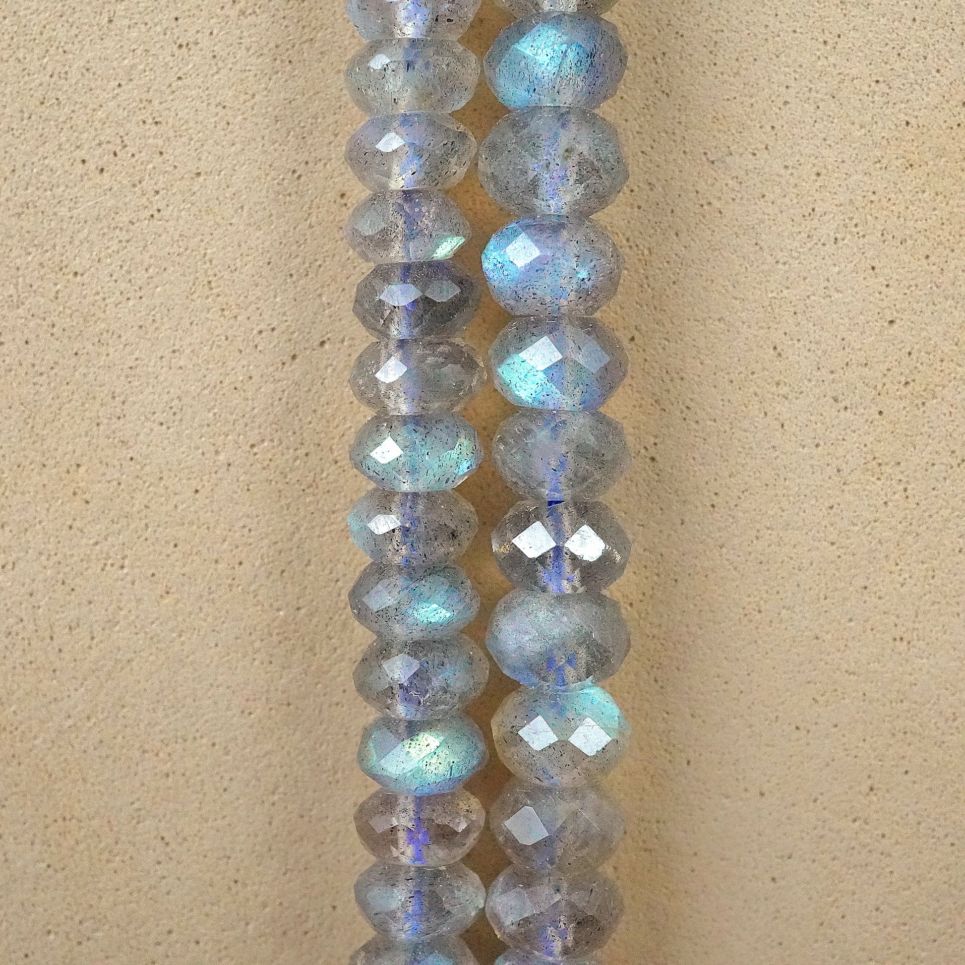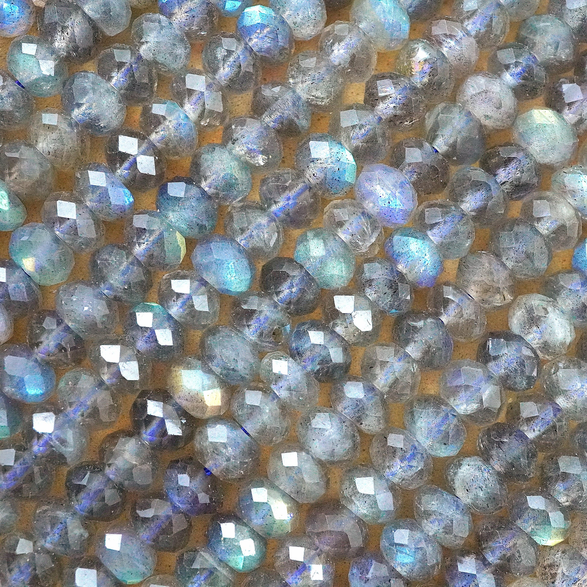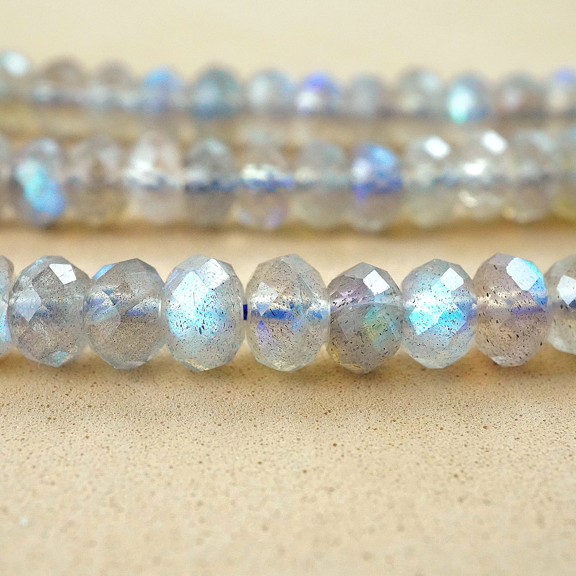 Labradorite, with its mesmerizing play of colors and iridescent flashes, transforms into stunning faceted rondelle beads that add a magical touch to any jewelry design. Each bead captures the light beautifully, creating a captivating shimmer that makes every piece of jewelry truly unique. Perfect for crafting eye-catching necklaces, bracelets, and earrings, these labradorite beads will elevate your collection with their enchanting and mysterious allure. Enhance your creations with the natural beauty of labradorite and let its captivating glow inspire and captivate your customers.