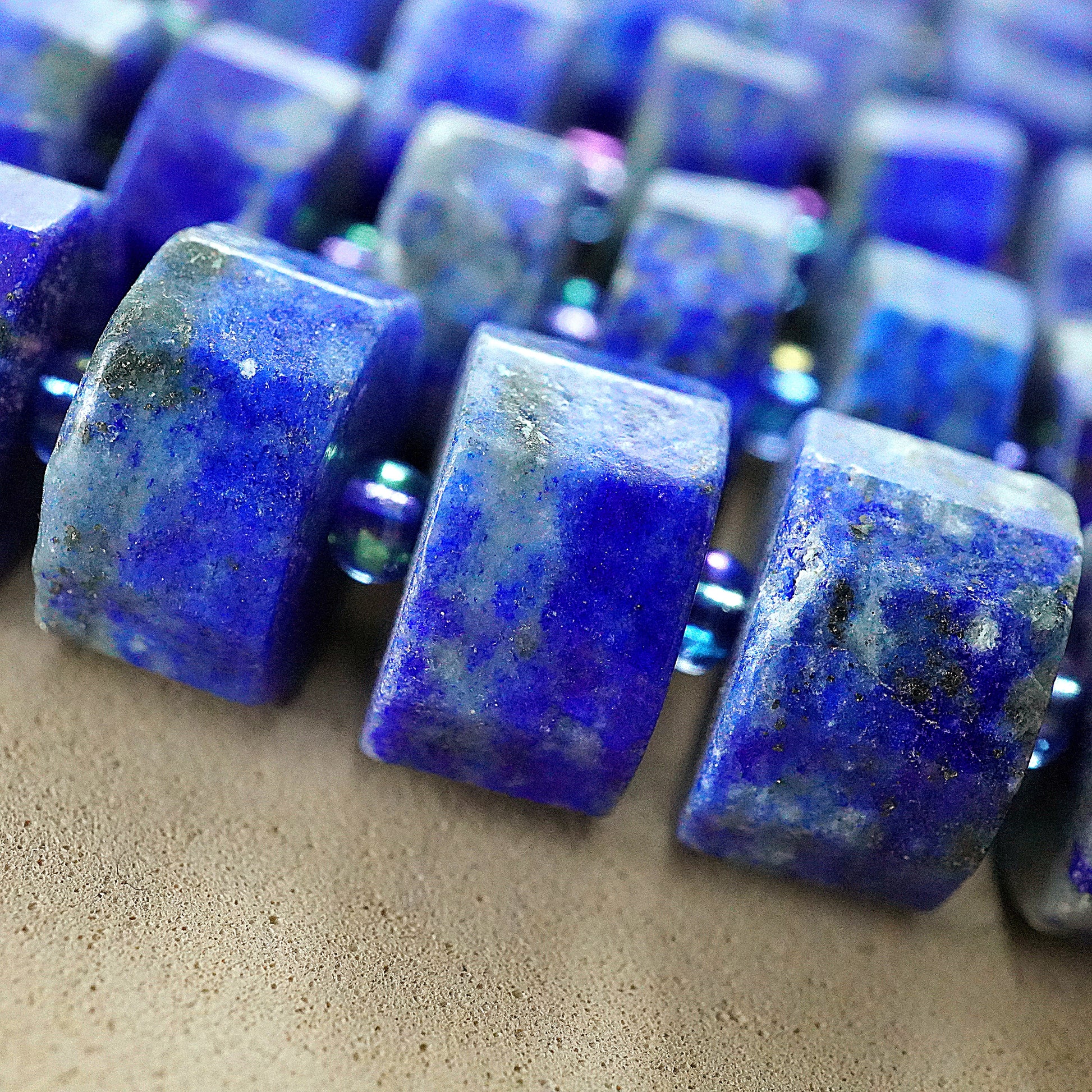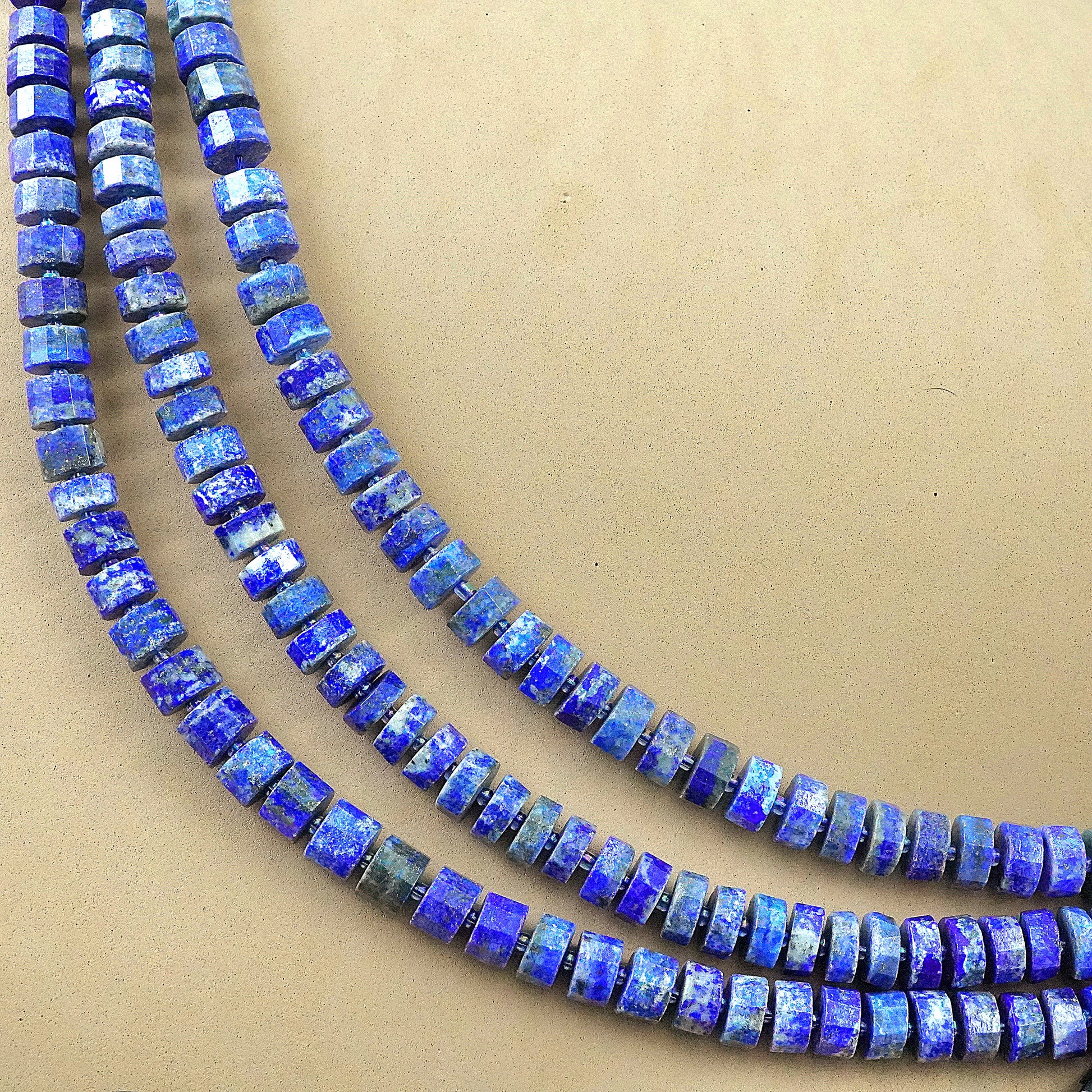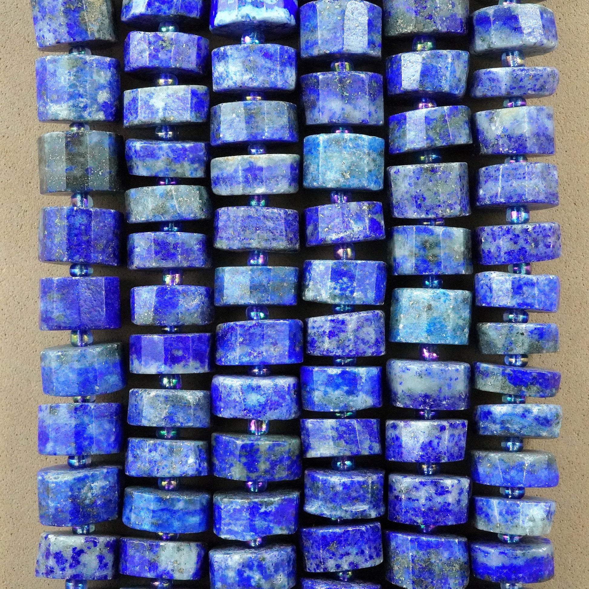 Lapis Lazuli is a beautiful blue stone that has been prized since ancient times. These beads are a dark blue color with pyrite specks in-between. They have been made into a Heishe style bead with the sides faceted. This creates a unique look that is rarely seen.