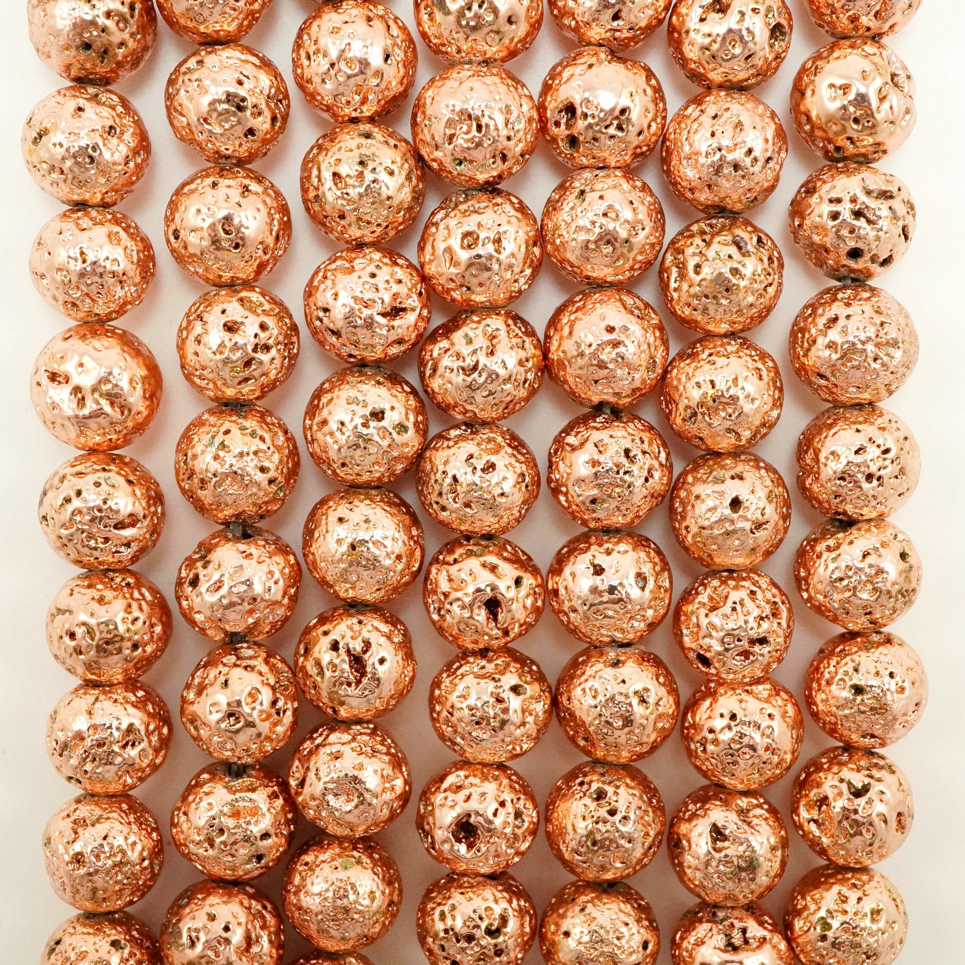 Lava Stone (Shiny Copper)(Electroplated)(Round)(6mm)(8mm)(10mm)(16"Strand)