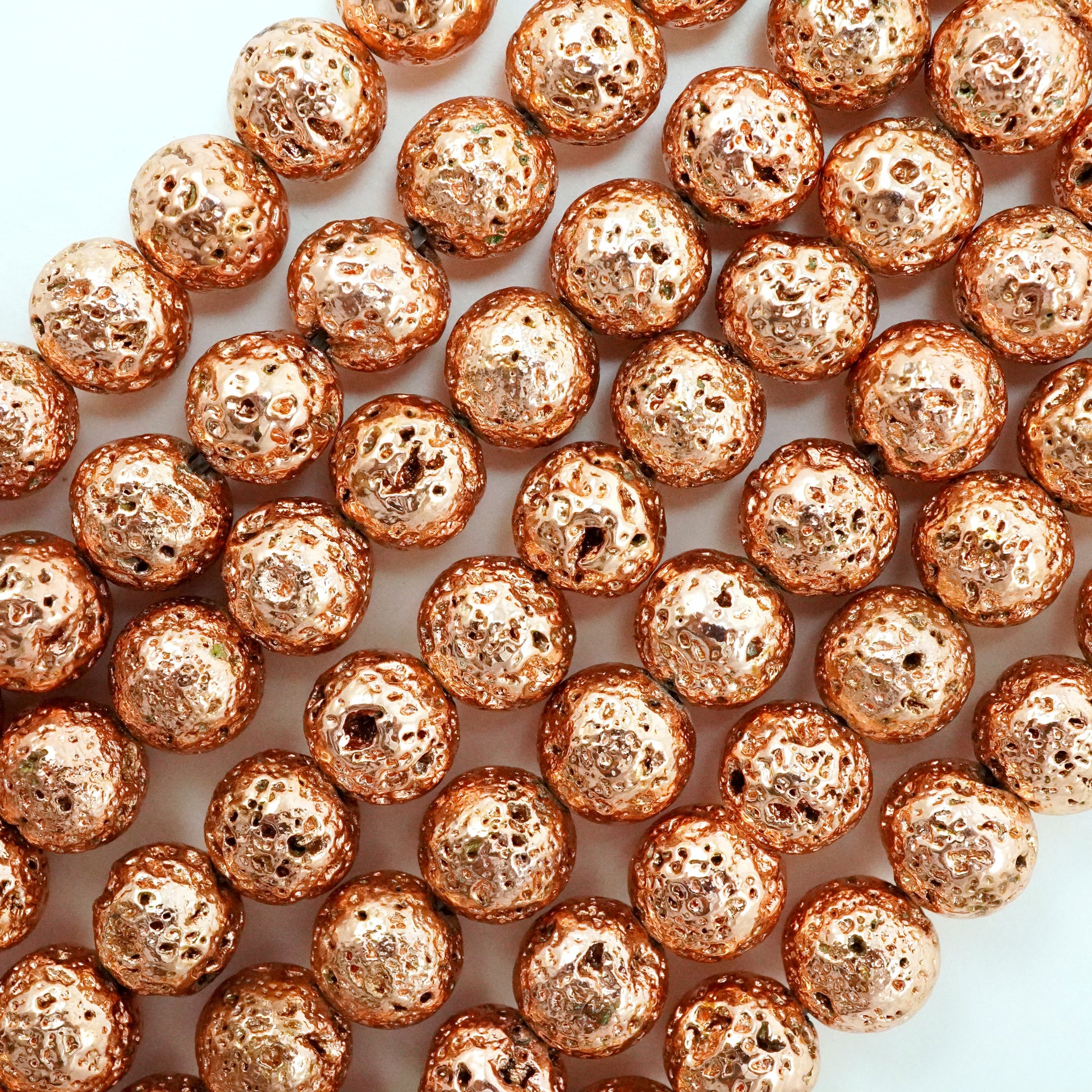 These Lava Beads have been electroplated with a Shiny Copper metallic finish. They are smooth to the touch yet their pores still remain visible. The metallic color of these beads make them excellent as spacers and as accents as they go well with any stone bead.