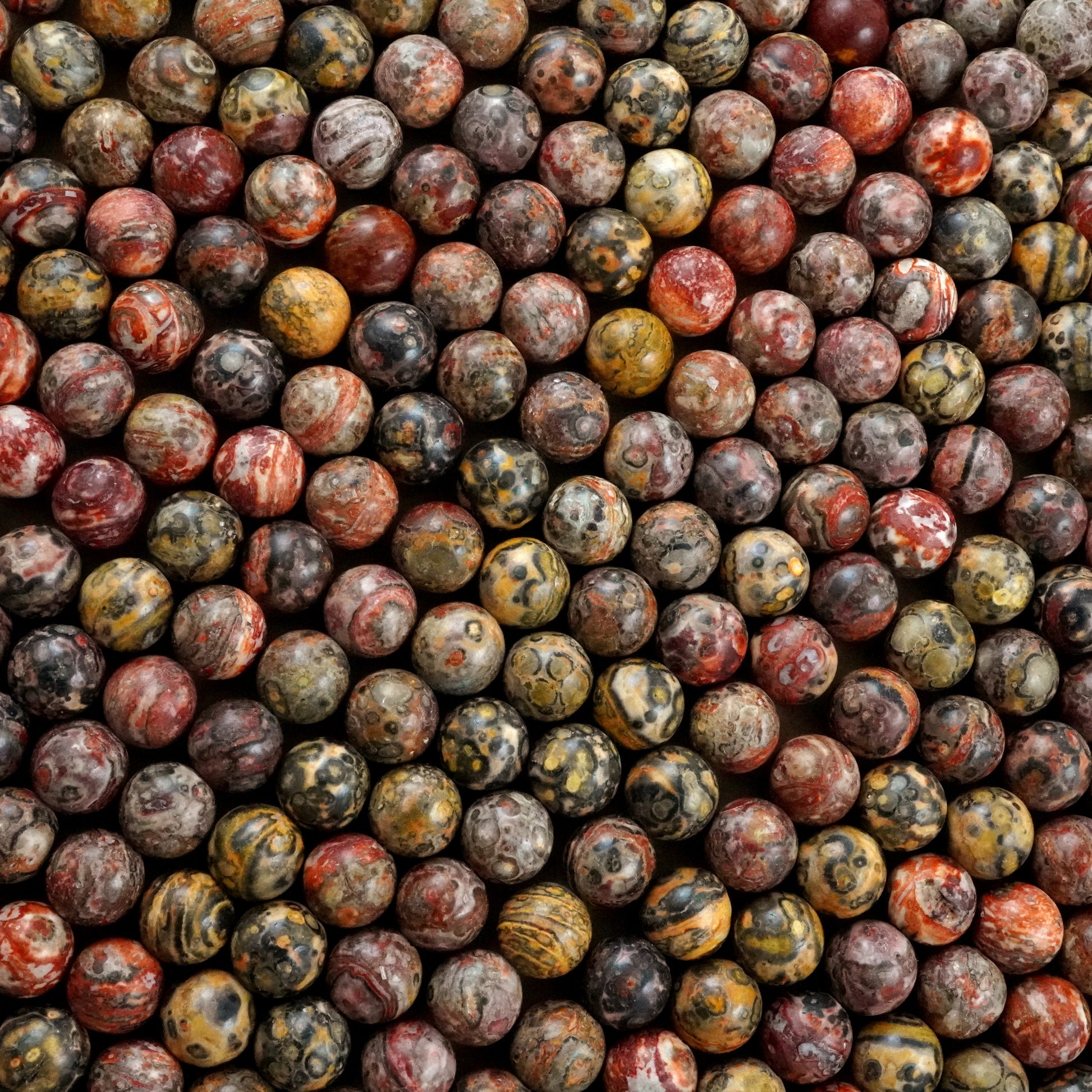 Leopard Skin Jasper is a variation of Orbicular Jasper. Its name comes from its unique reddish-yellow tones with black circles that resemble the patterns on Leopards. It is mostly found in Mexico.