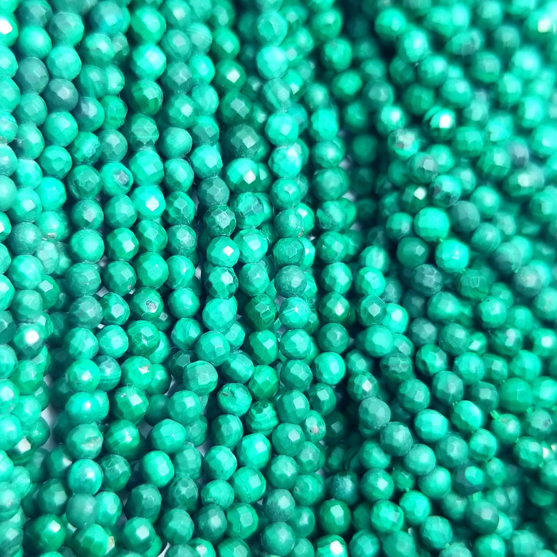 Malachite (Round)(Micro)(Faceted)(Matte)(4mm)(16"Strand)
