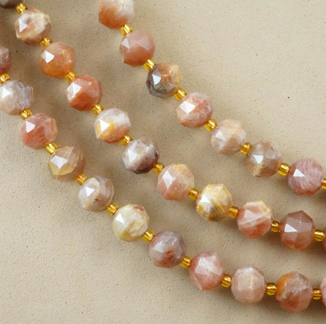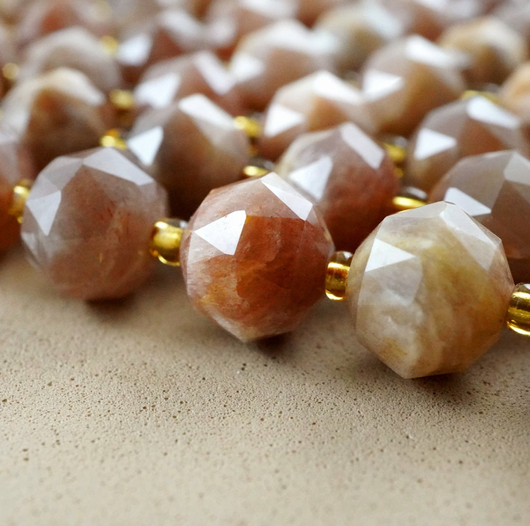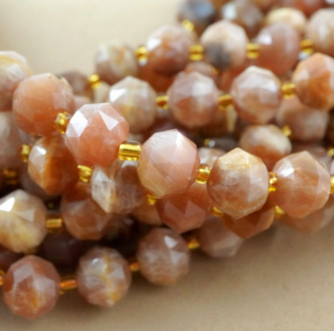 These particular beads have been cut and polished using a distinct style of faceting called, Triangle Faceting. This produces beautiful Triangular shaped facets on the beads, which in turn cause a greater reflection of light due to the larger surface area of the facets. Simply Amazing!