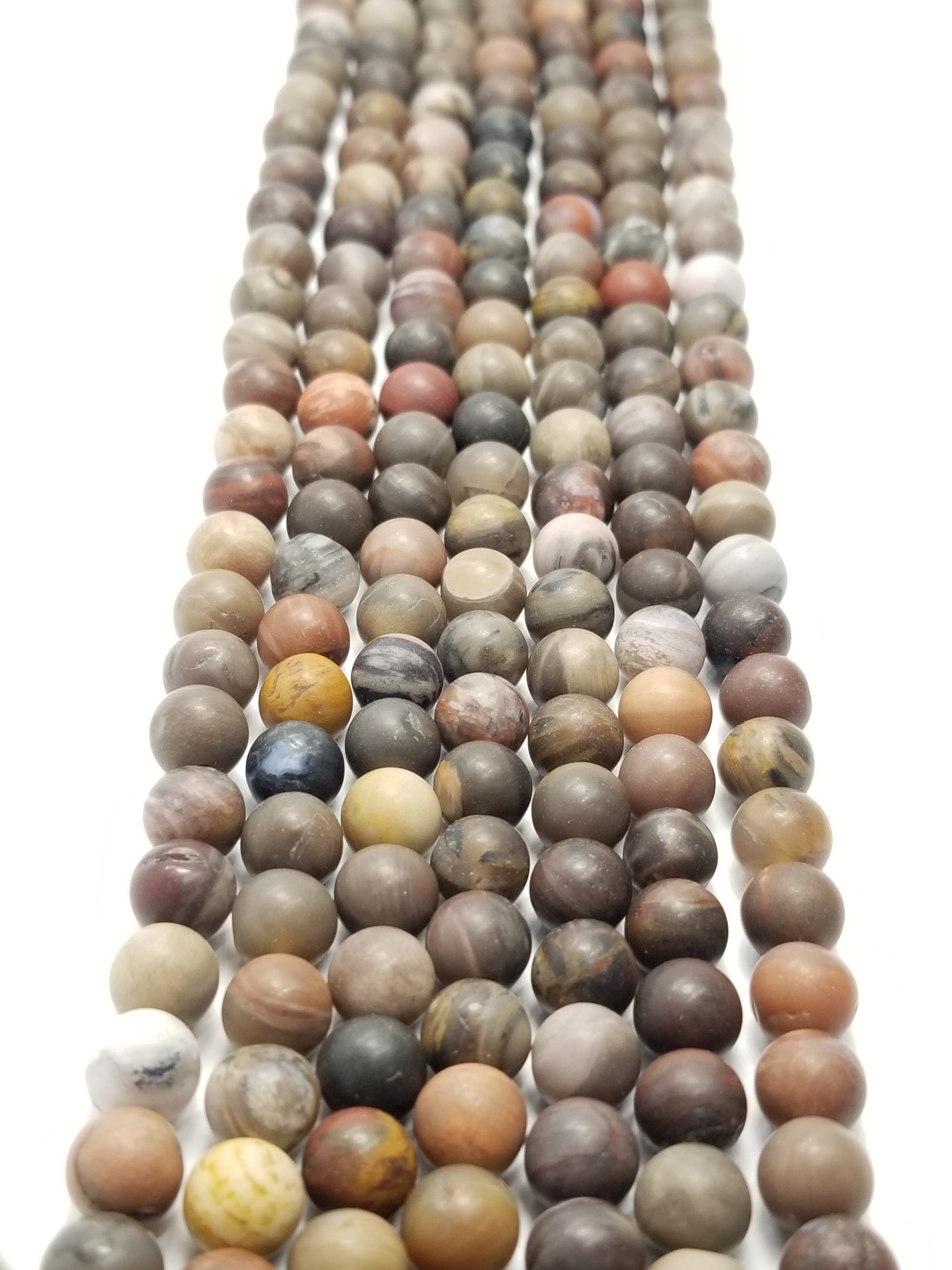 Petrified Wood is a name given to wood whose cells have been entirely replaced by Quartz, leaving behind an almost exact stone replica in its place. This process takes millions of years and can only happen underground without any contact to air. The varying colors are a result of Manganese, Iron, and Copper in the water/mud during the petrification process.