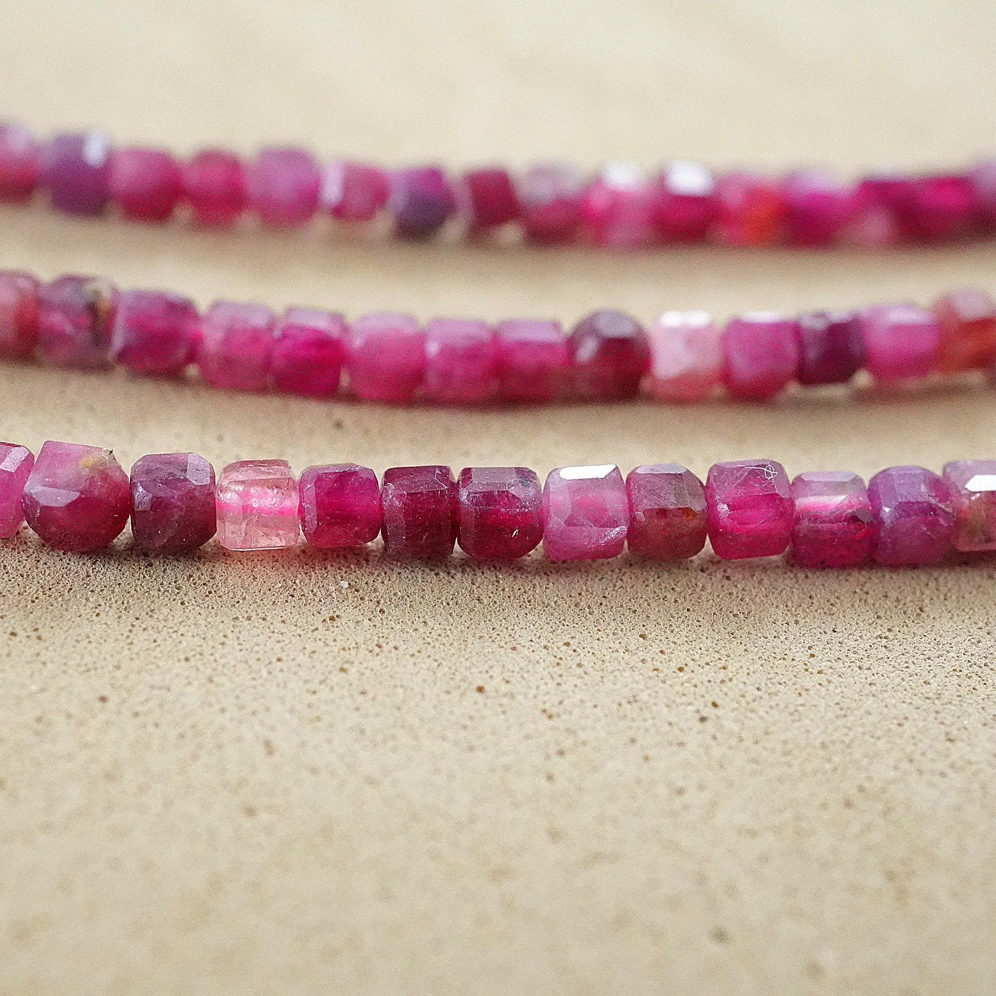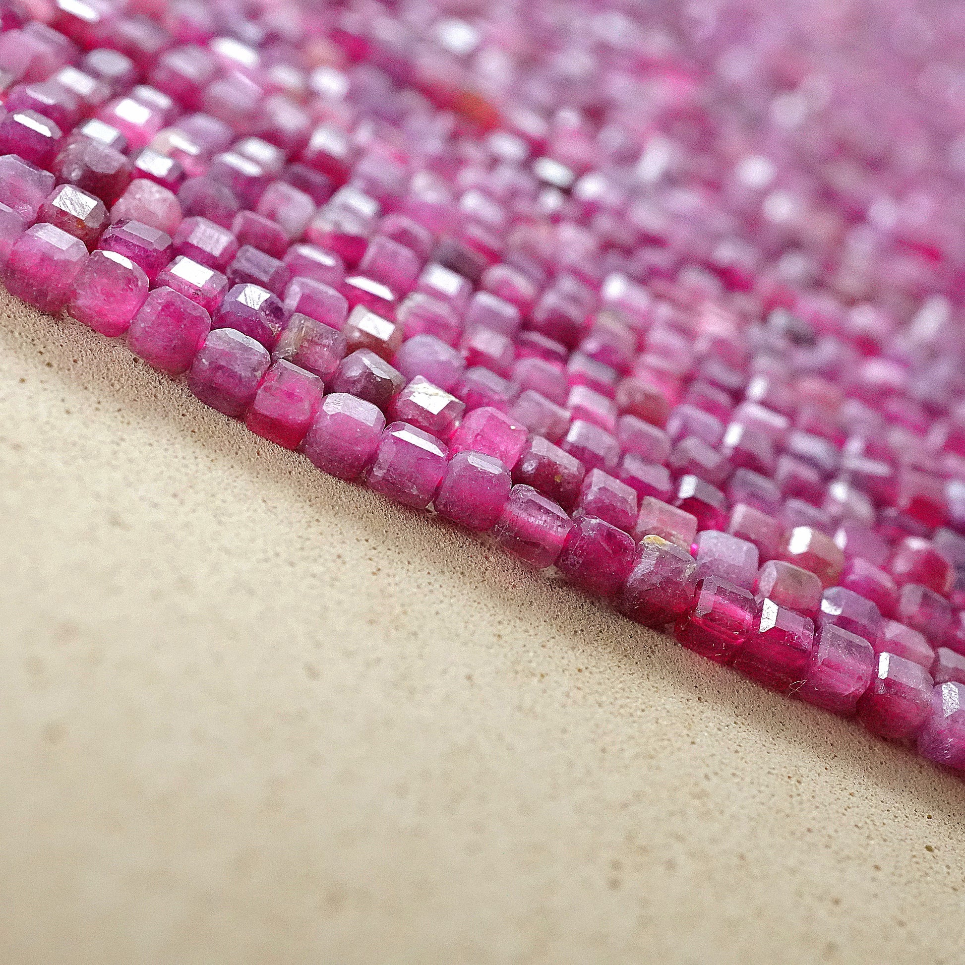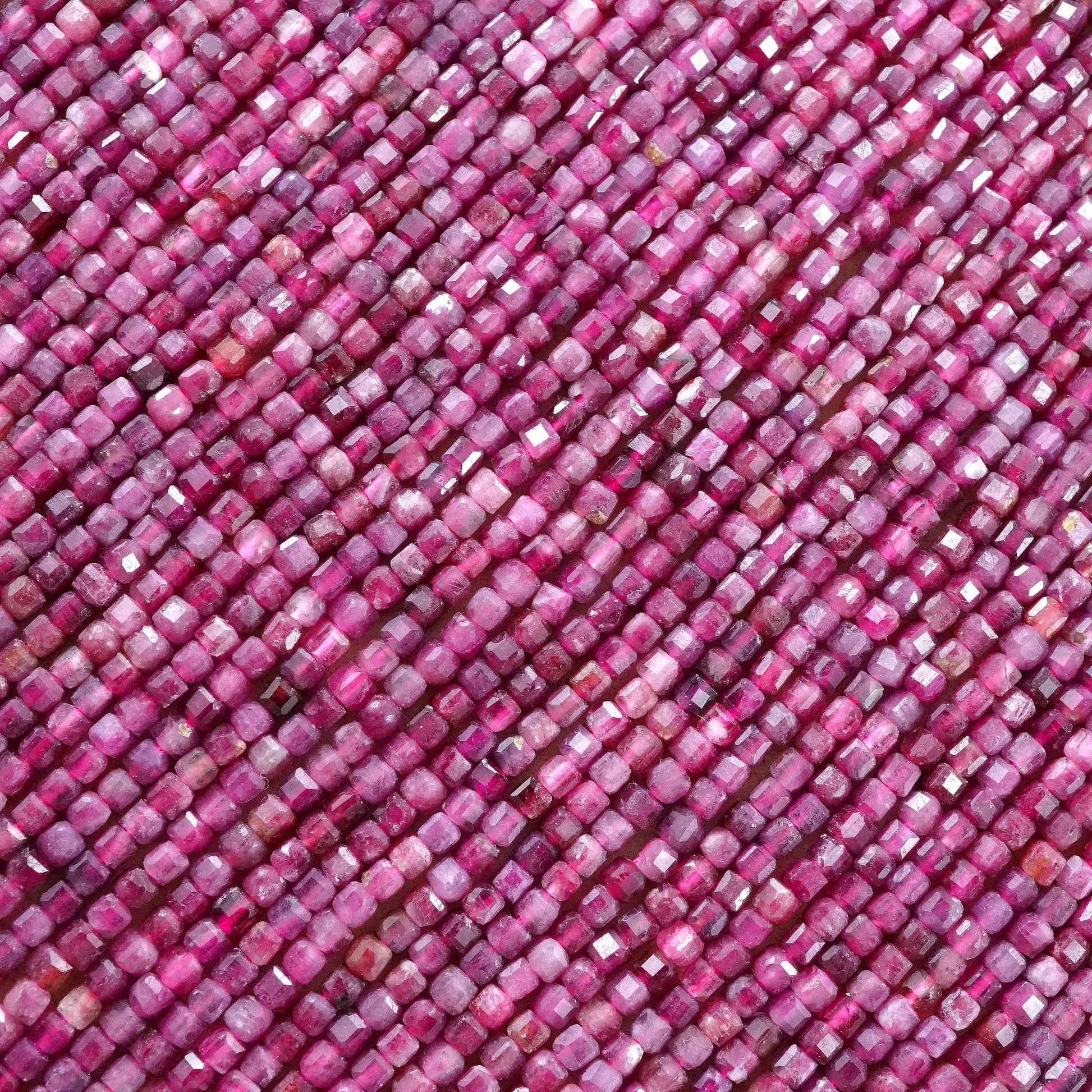 Pink Tourmaline (Cube)(Faceted)(2x2mm)(15"Strand)