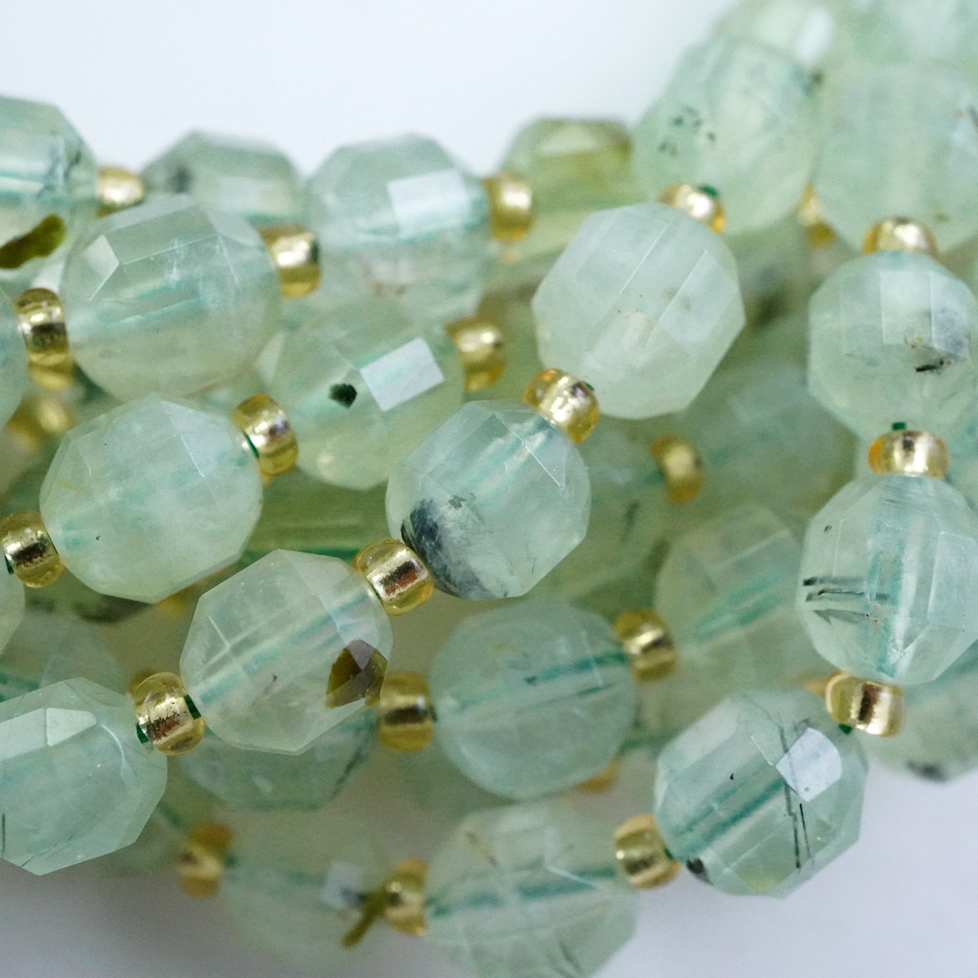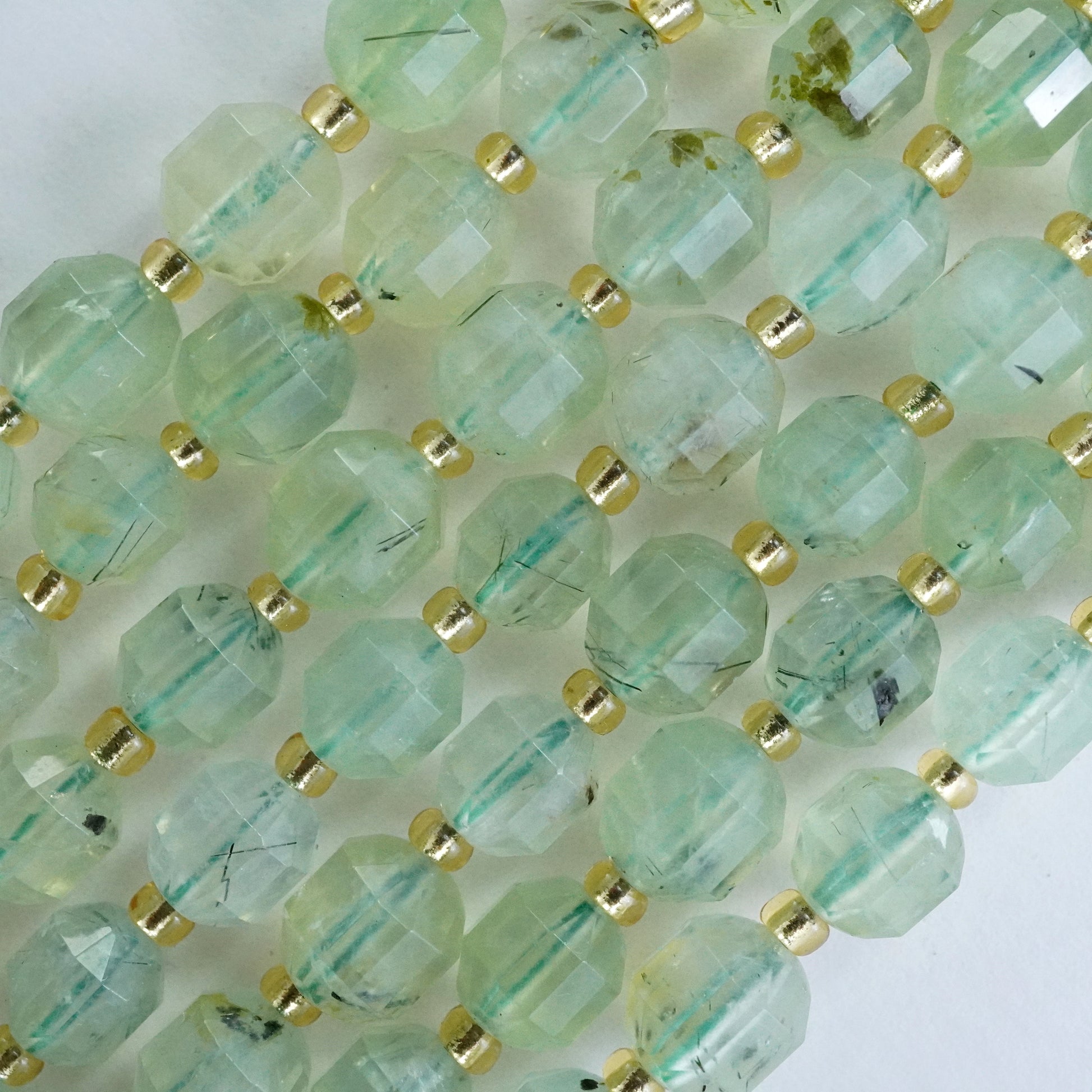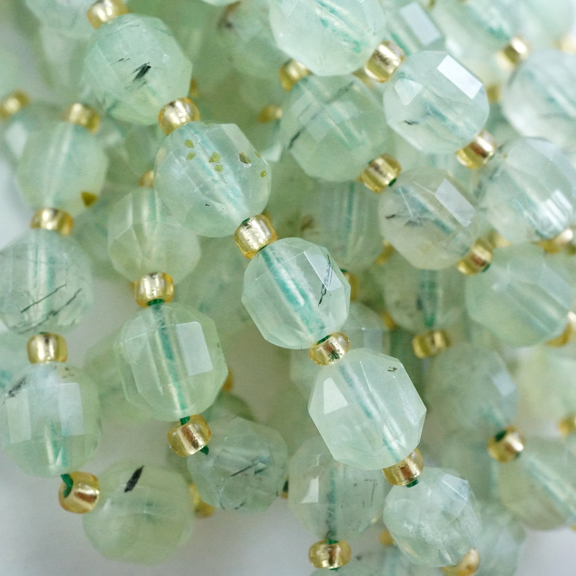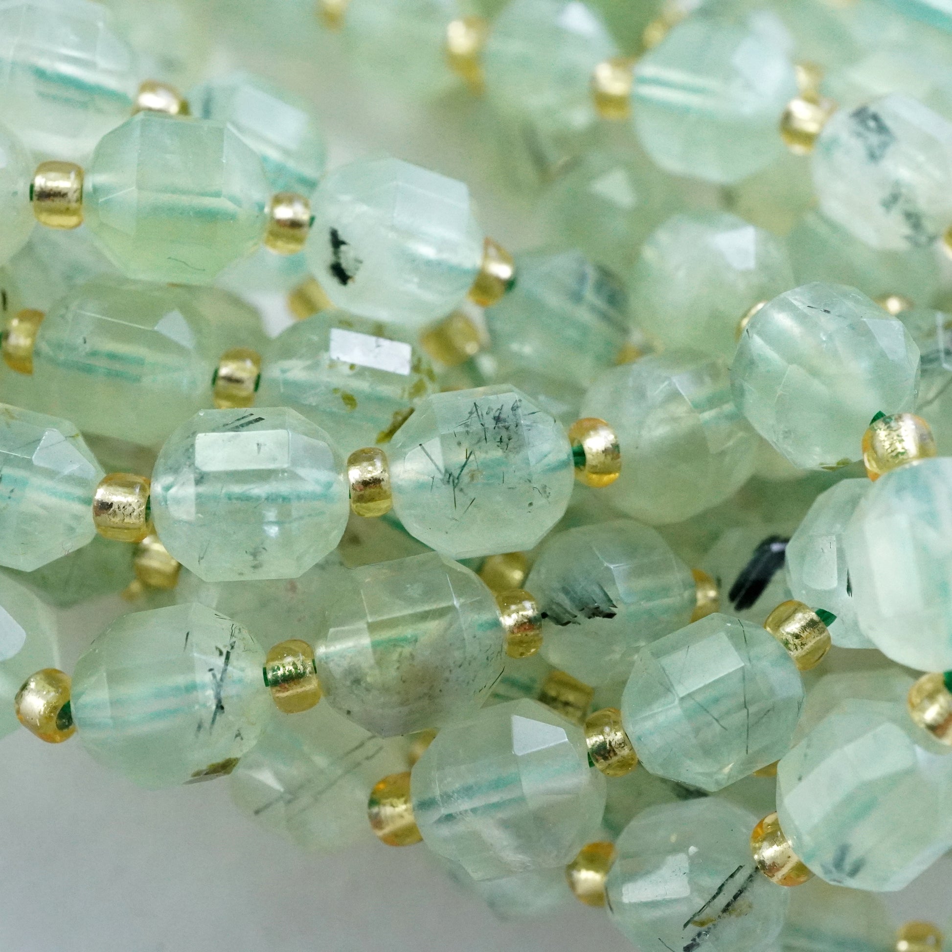 Prehnite (Barrel)(Faceted)(8x7mm)(16"Strand)