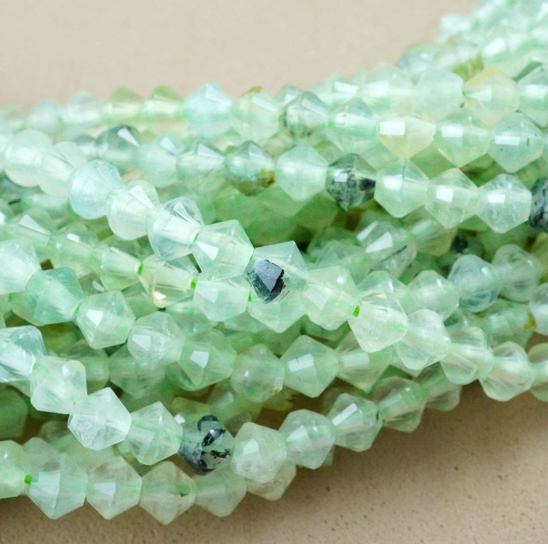 Prehnite (Bicone)(Micro)(Faceted)(4mm)(15.5"Strand)