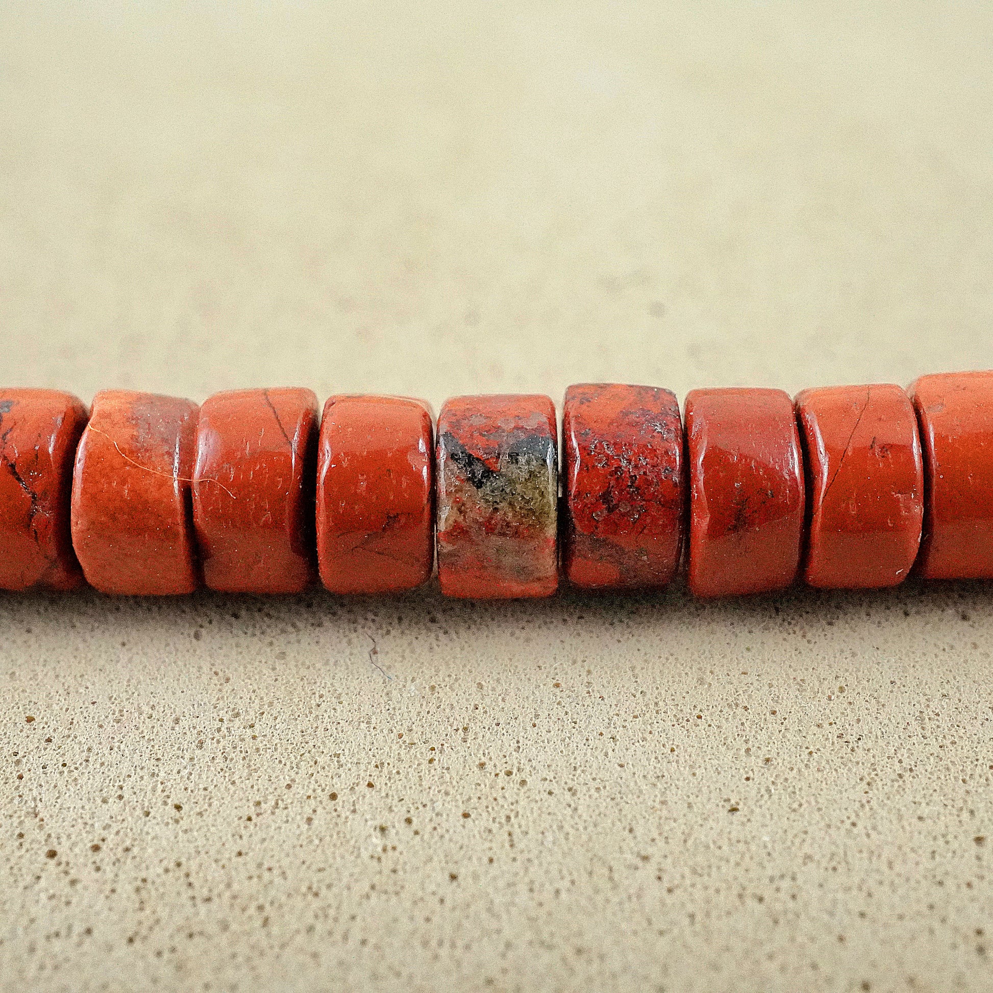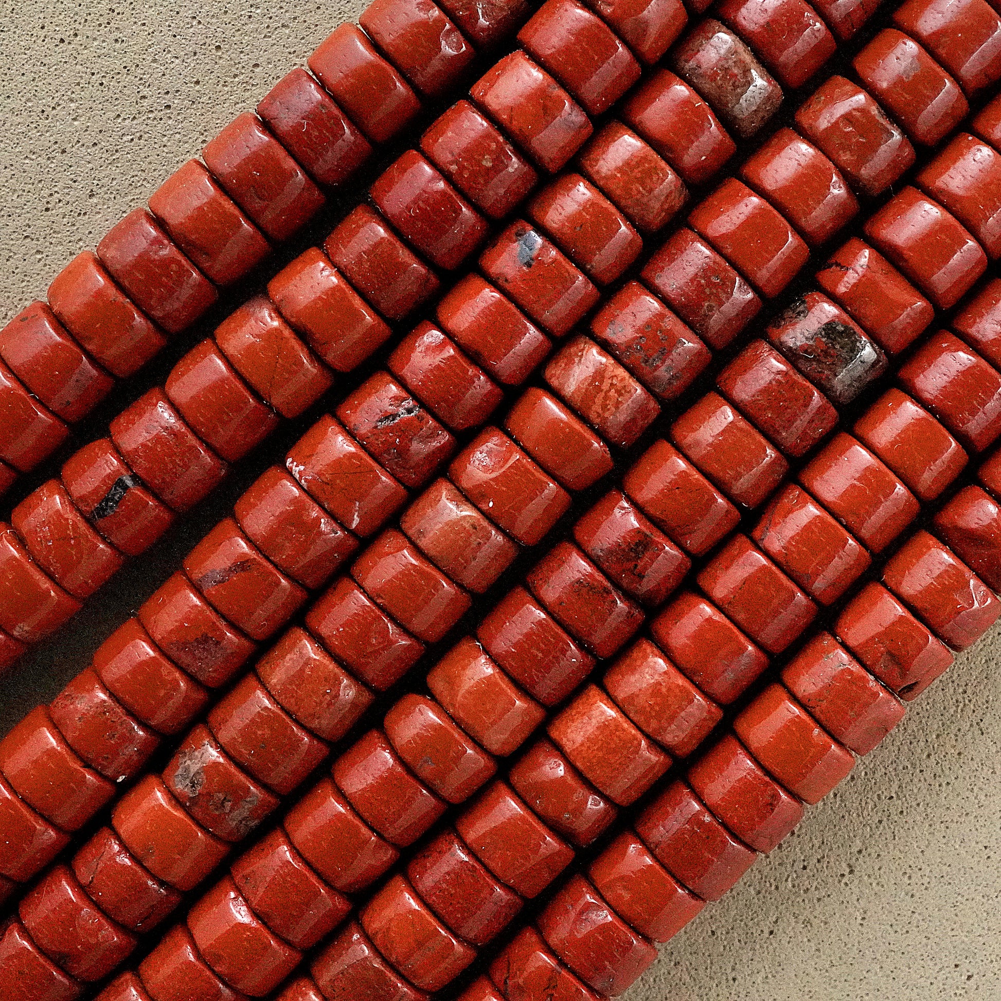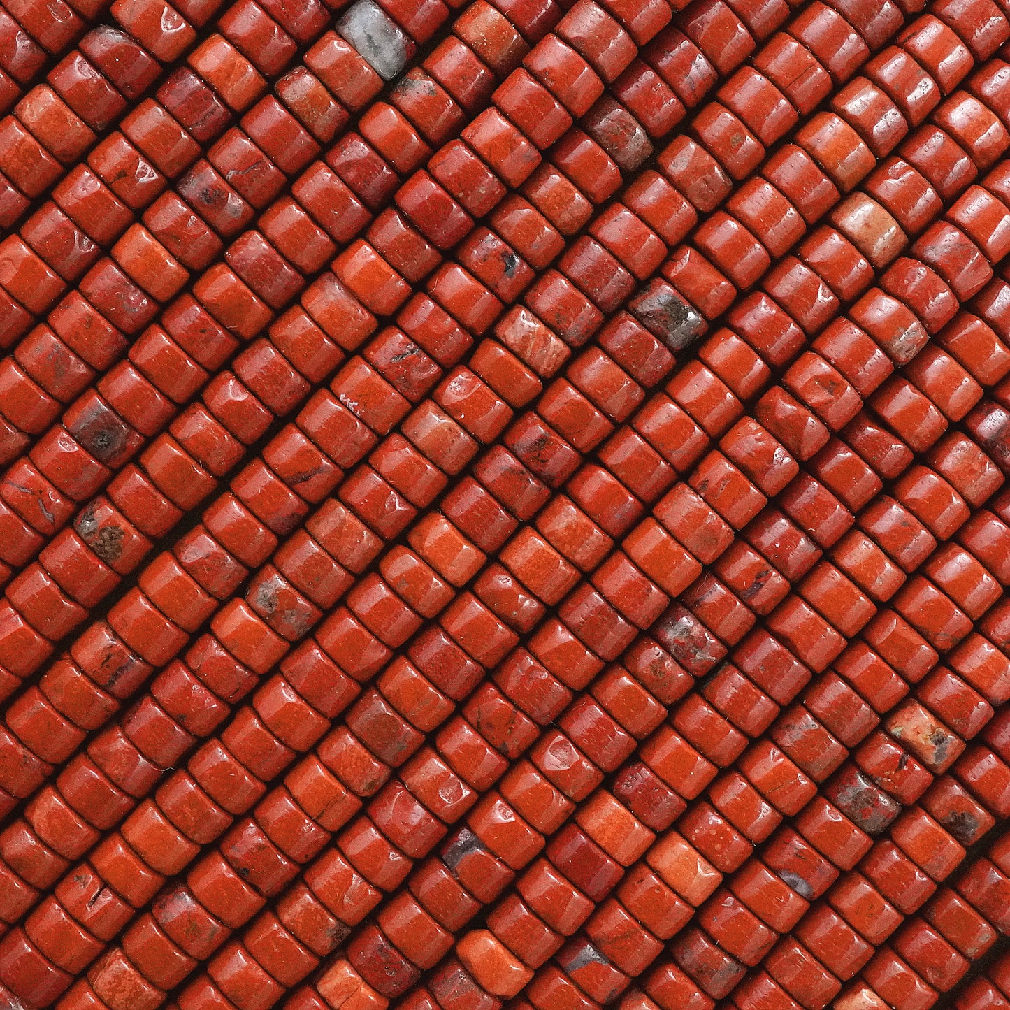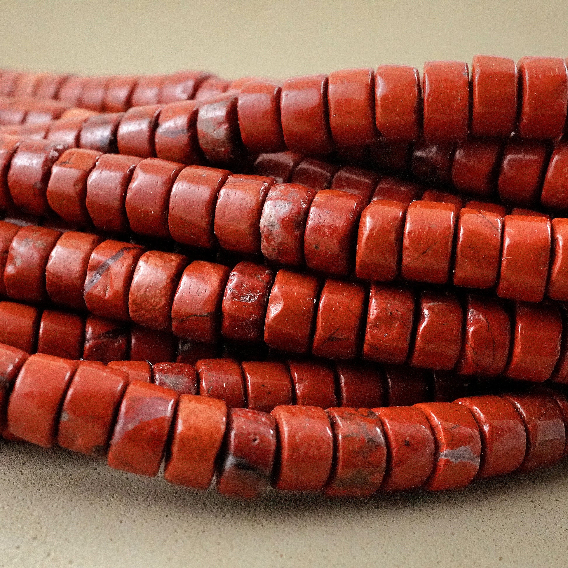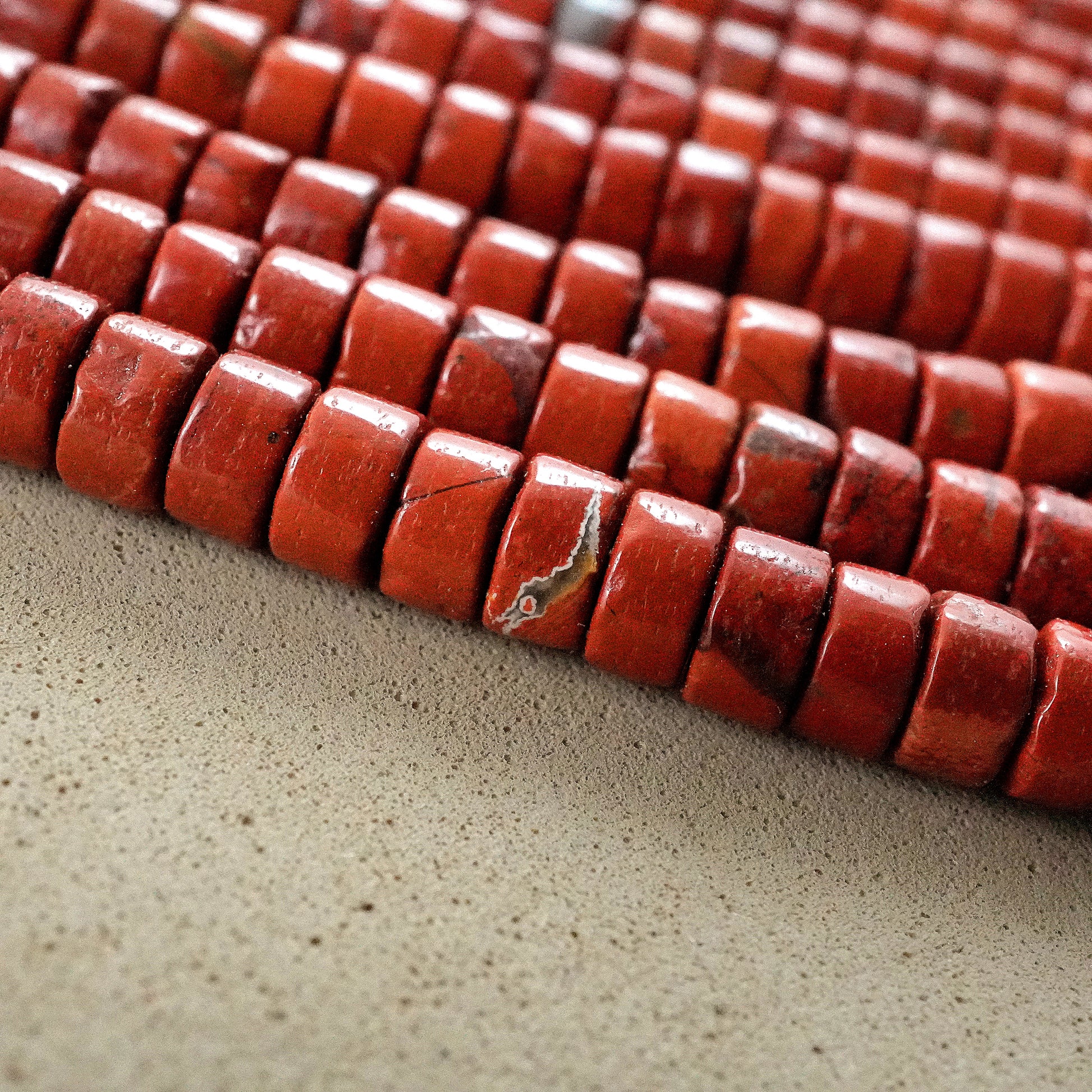 Red Jasper is a popular semi-precious stone and perfect for adding bold texture and color to jewelry designs. This 15-inch strand of 4mm Heishe cut beads showcases a warm red hue. Red Jasper is said to promote balance, strength, energy and stamina.