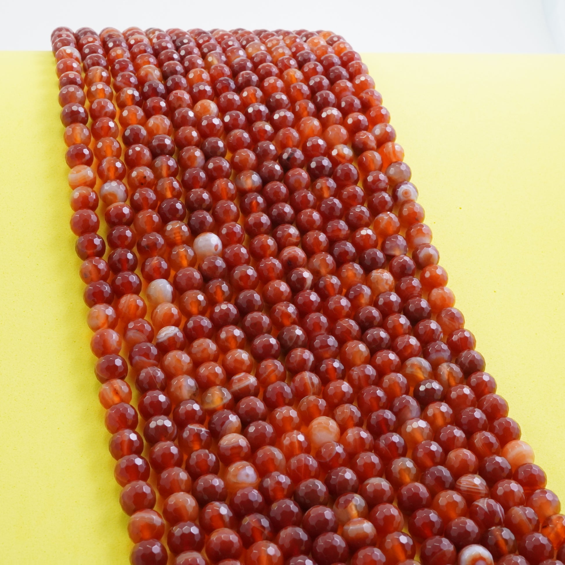 Red Sardonyx (Round)(Faceted)(4mm)(6mm)(8mm)(10mm)(16"Strand)
