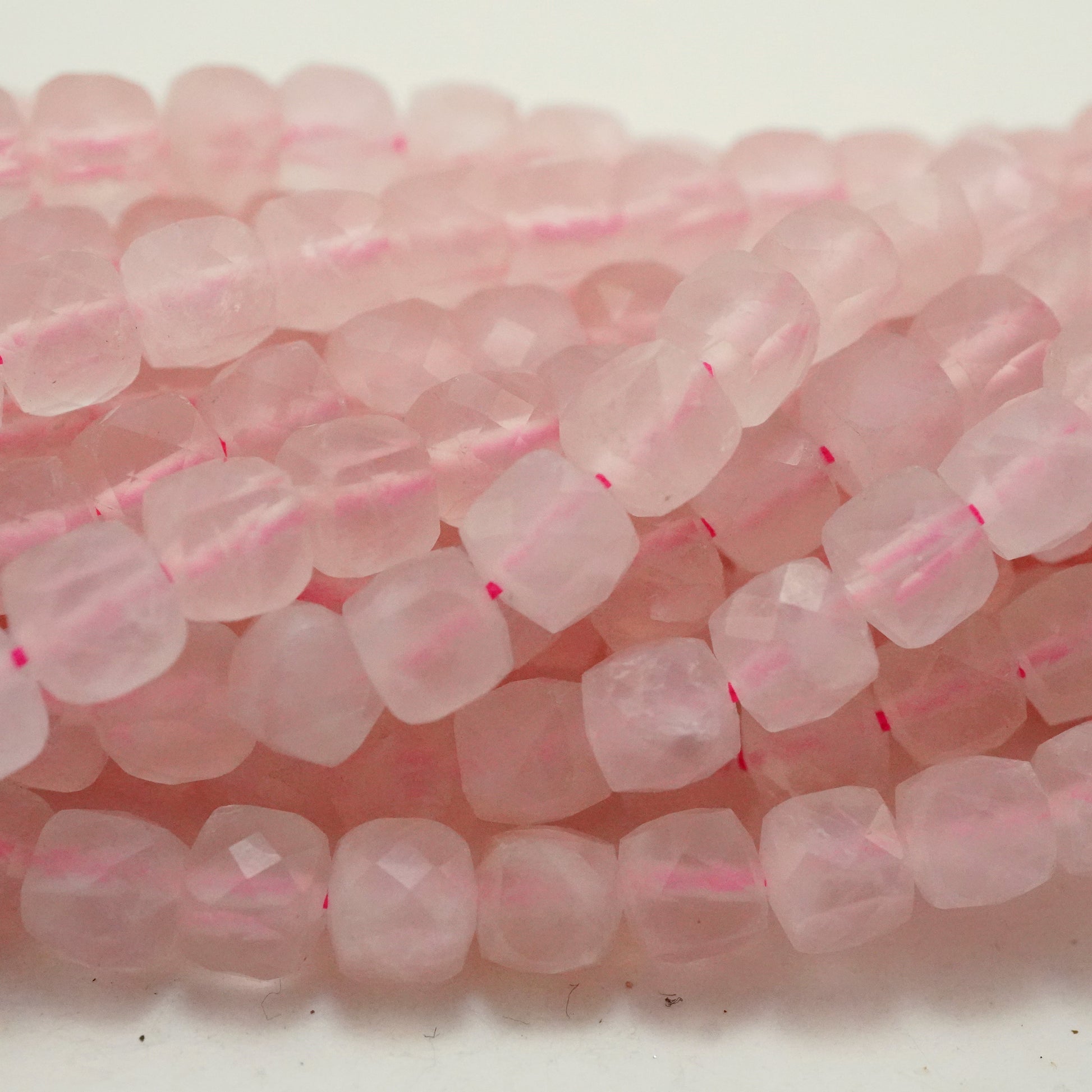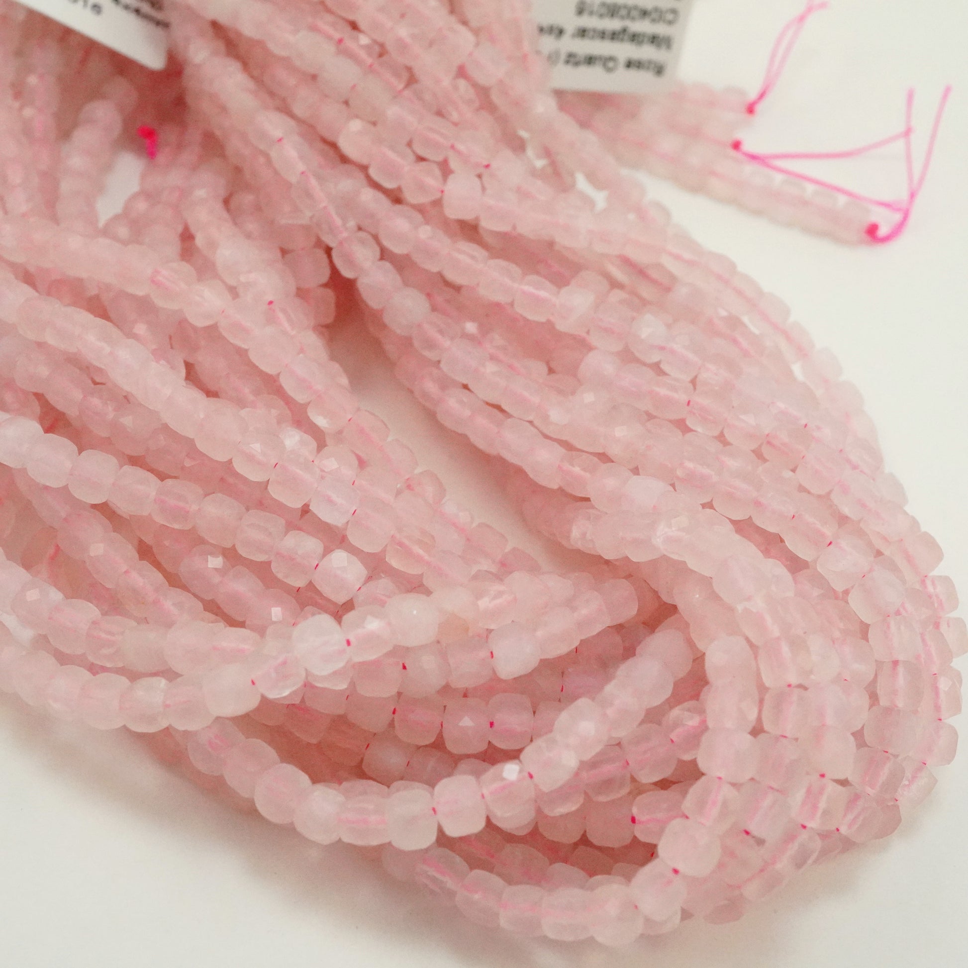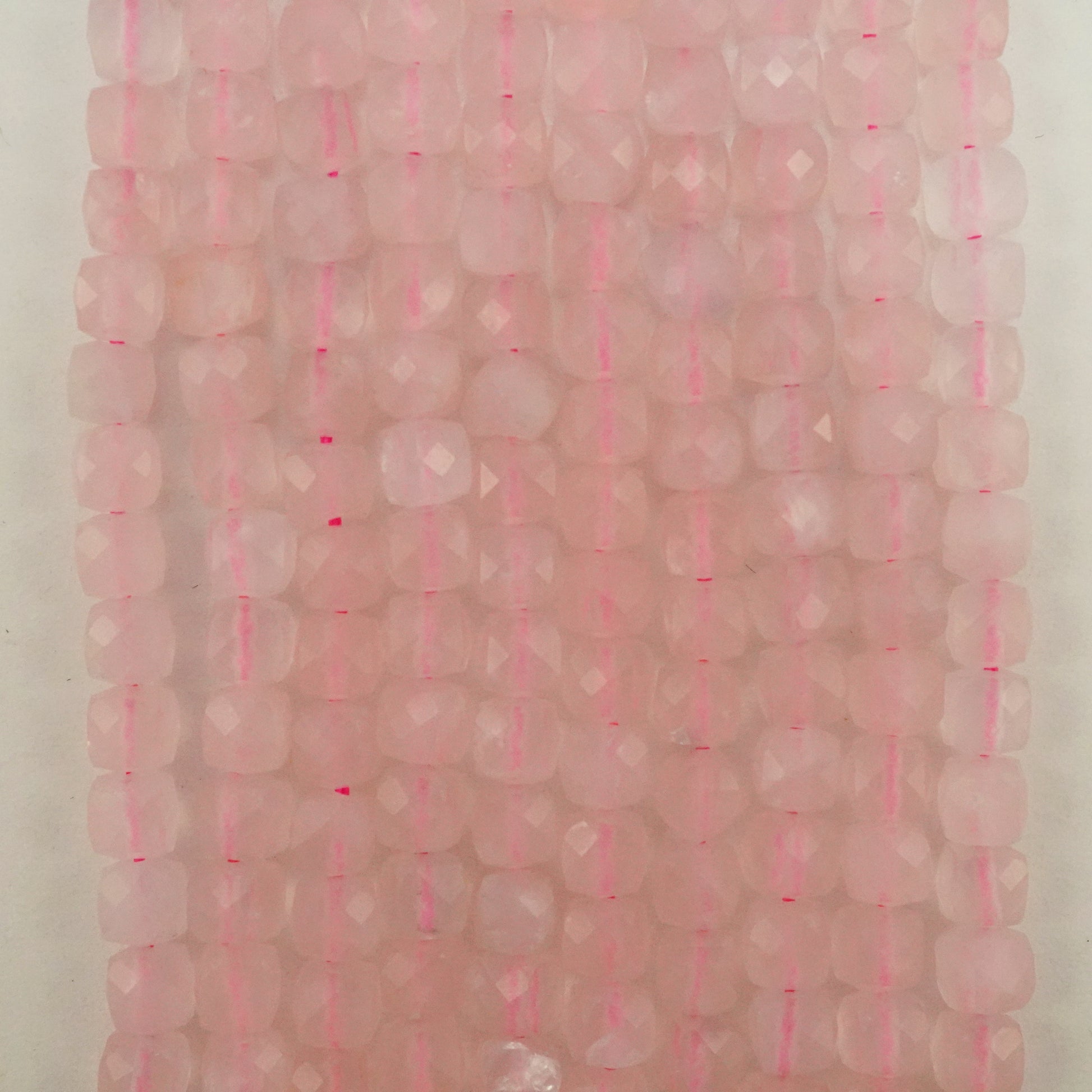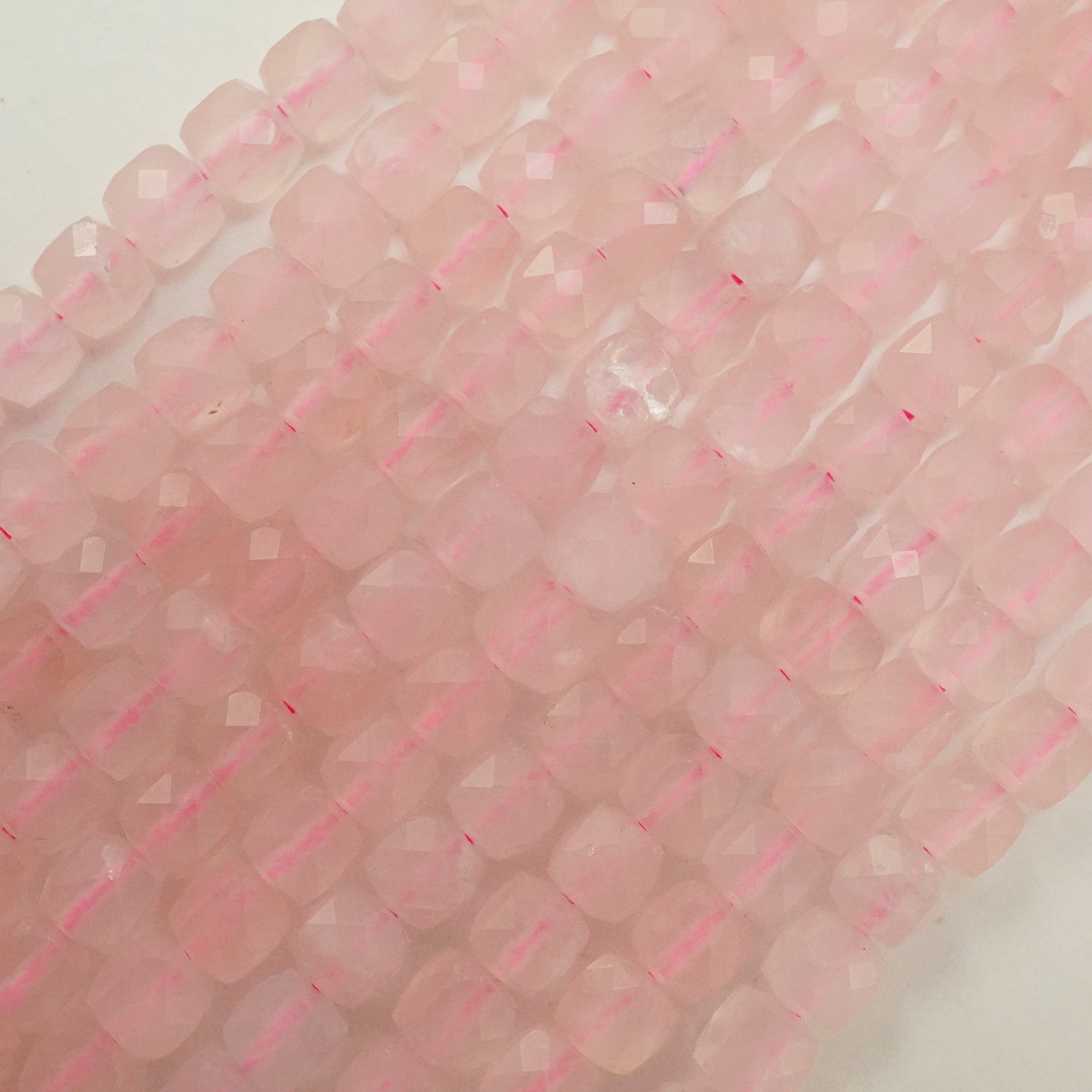 Rose Quartz (Cube)(Micro)(Faceted)(4mm)(15"Strand)