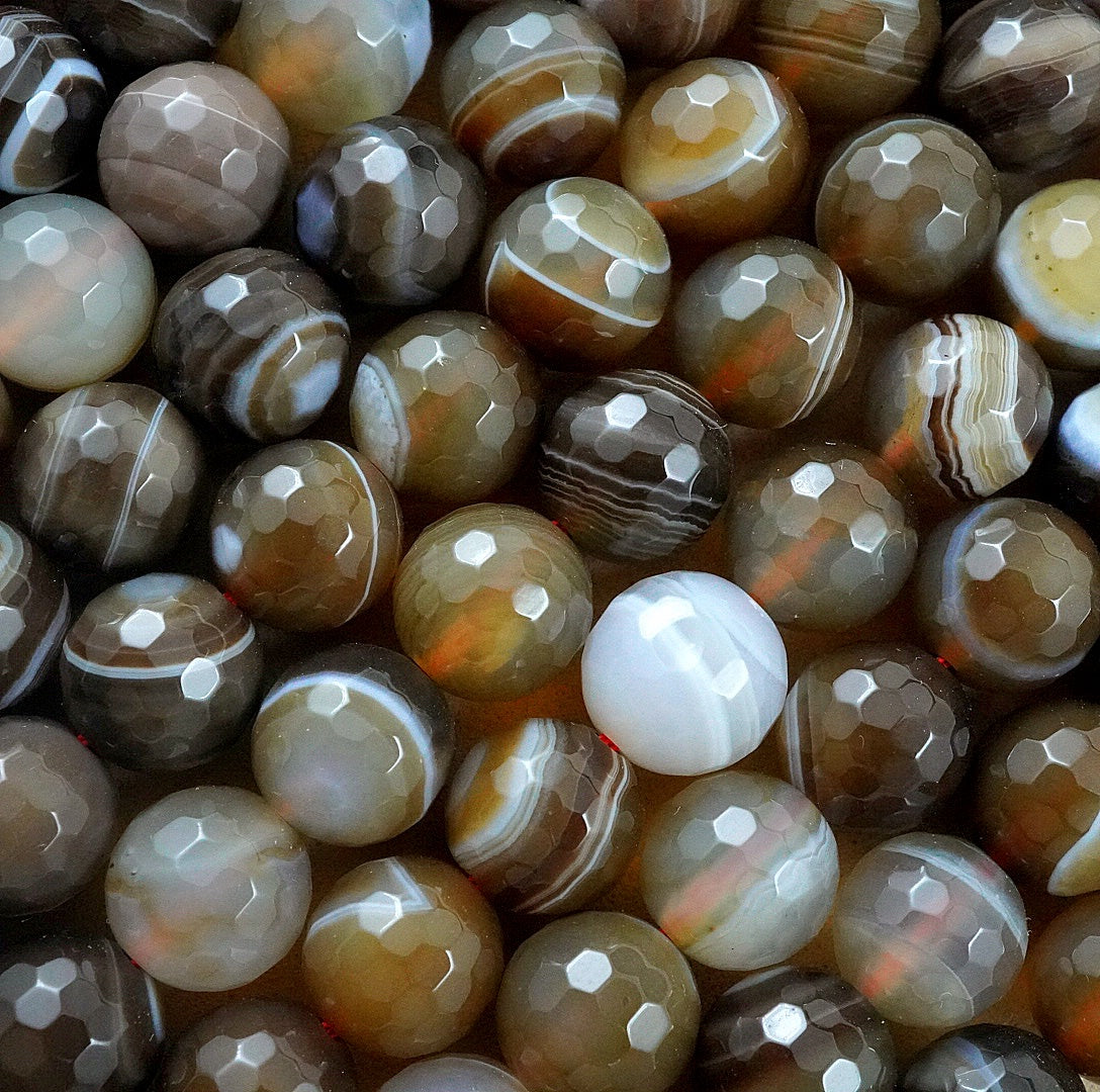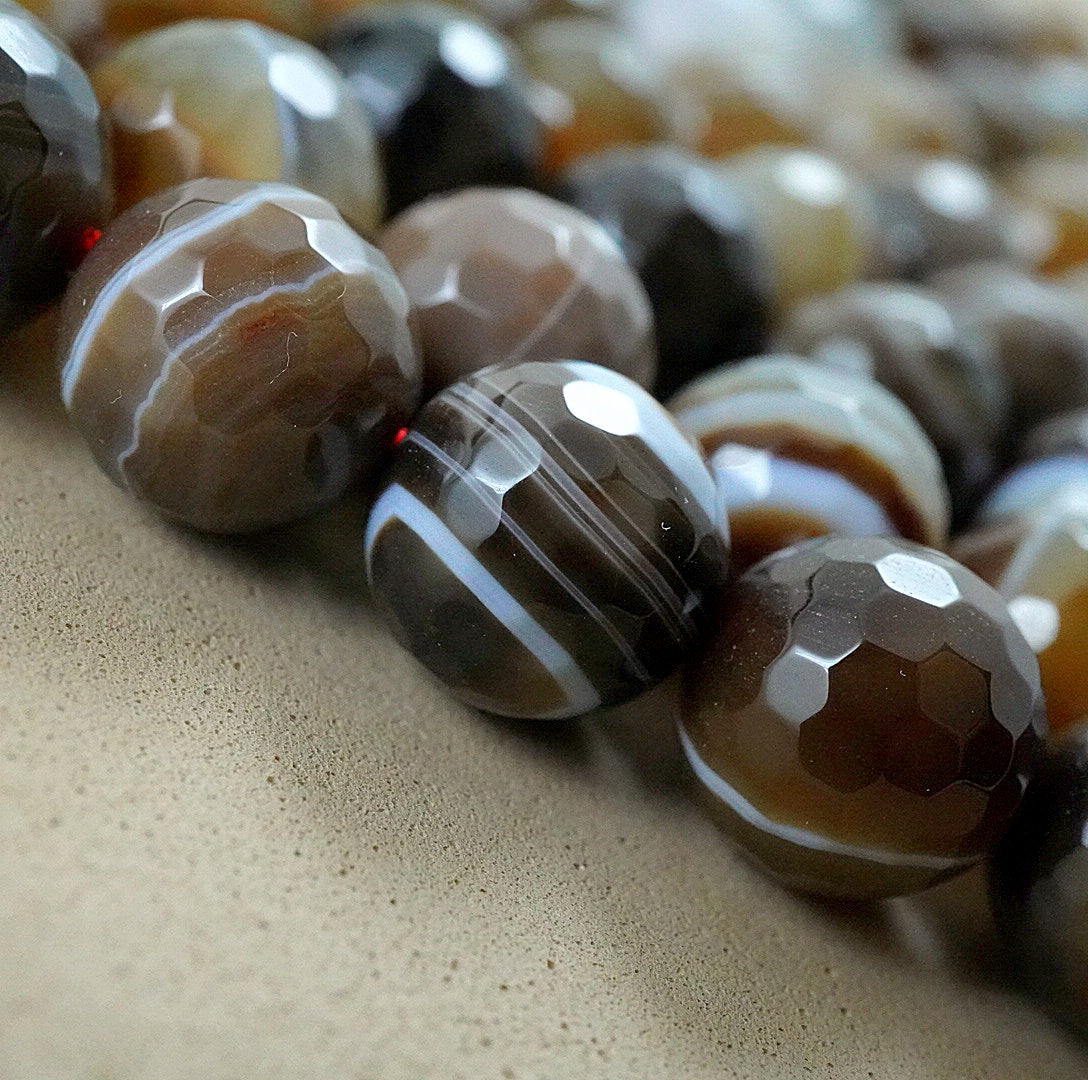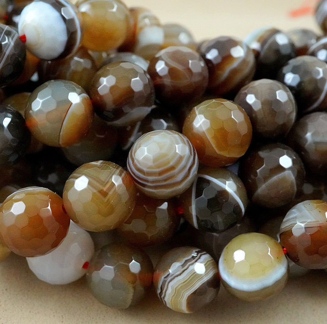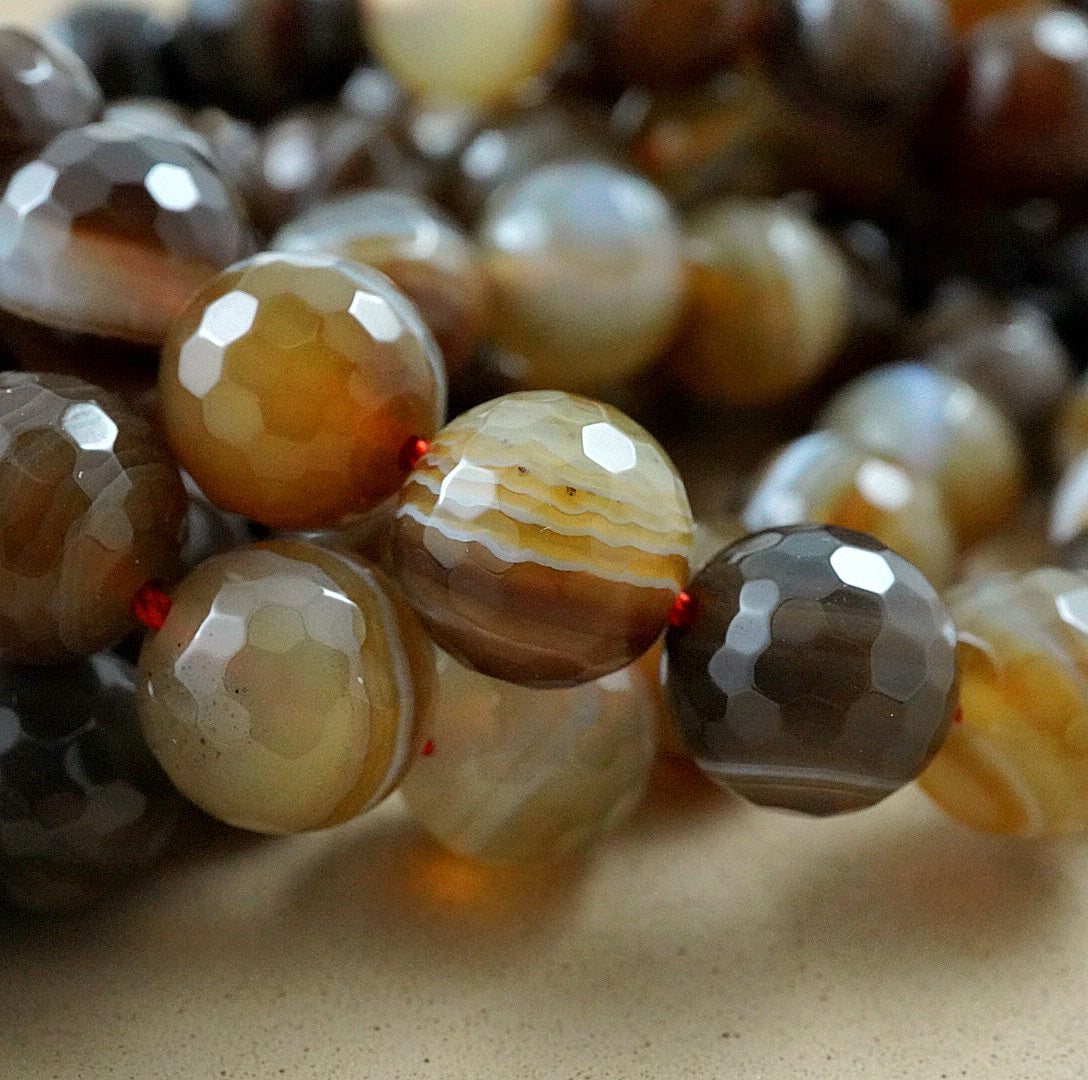 Sardonyx (Round)(Faceted)(4mm)(6mm)(8mm)(10mm)(16"Strand)