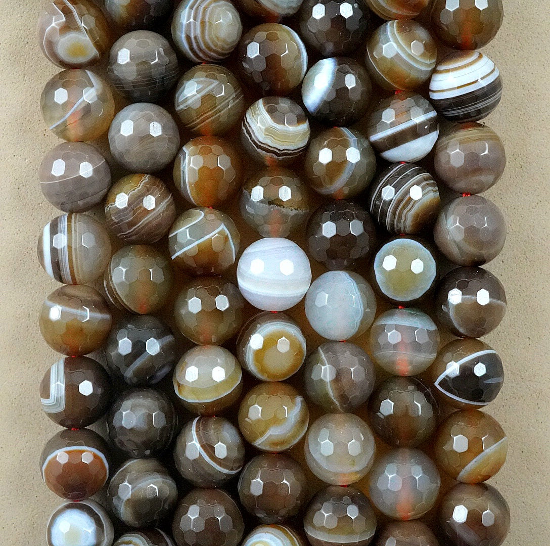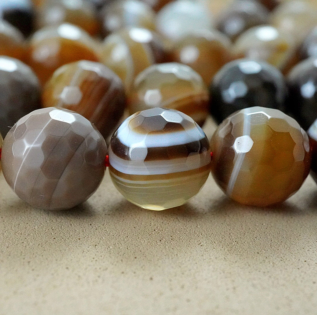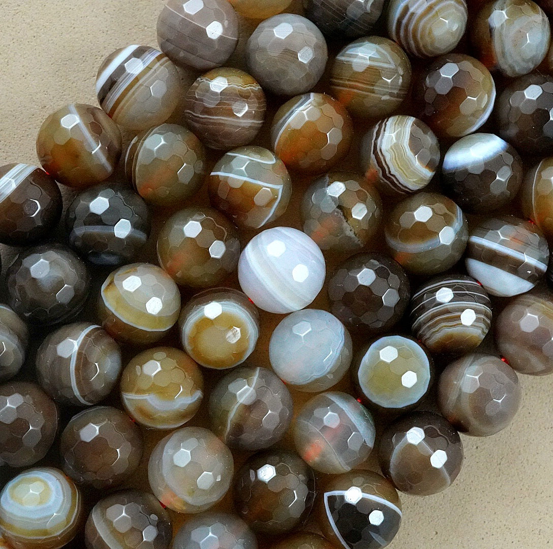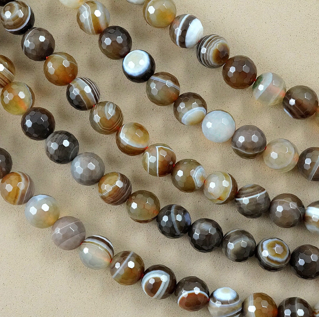 Sardonyx (Round)(Faceted)(4mm)(6mm)(8mm)(10mm)(16"Strand)