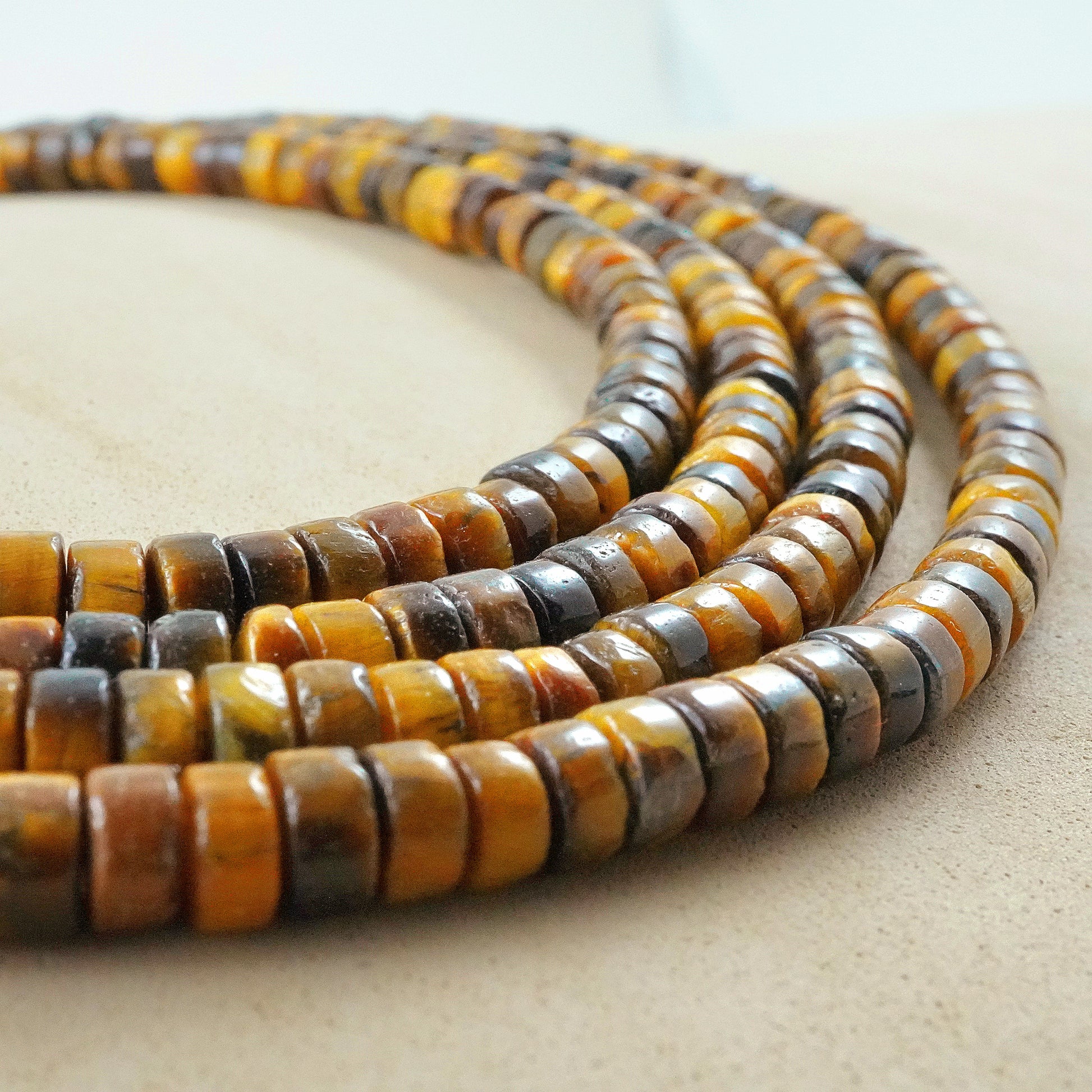 This 15 inch strand of 4mm Heishe cut Tiger Eye beads is sure to be the perfect addition to your jewelry projects. Its natural reflective luster and distinct golden-brown hue add a unique and eye-catching look. Showcase your favorite design with this beautiful and versatile material.