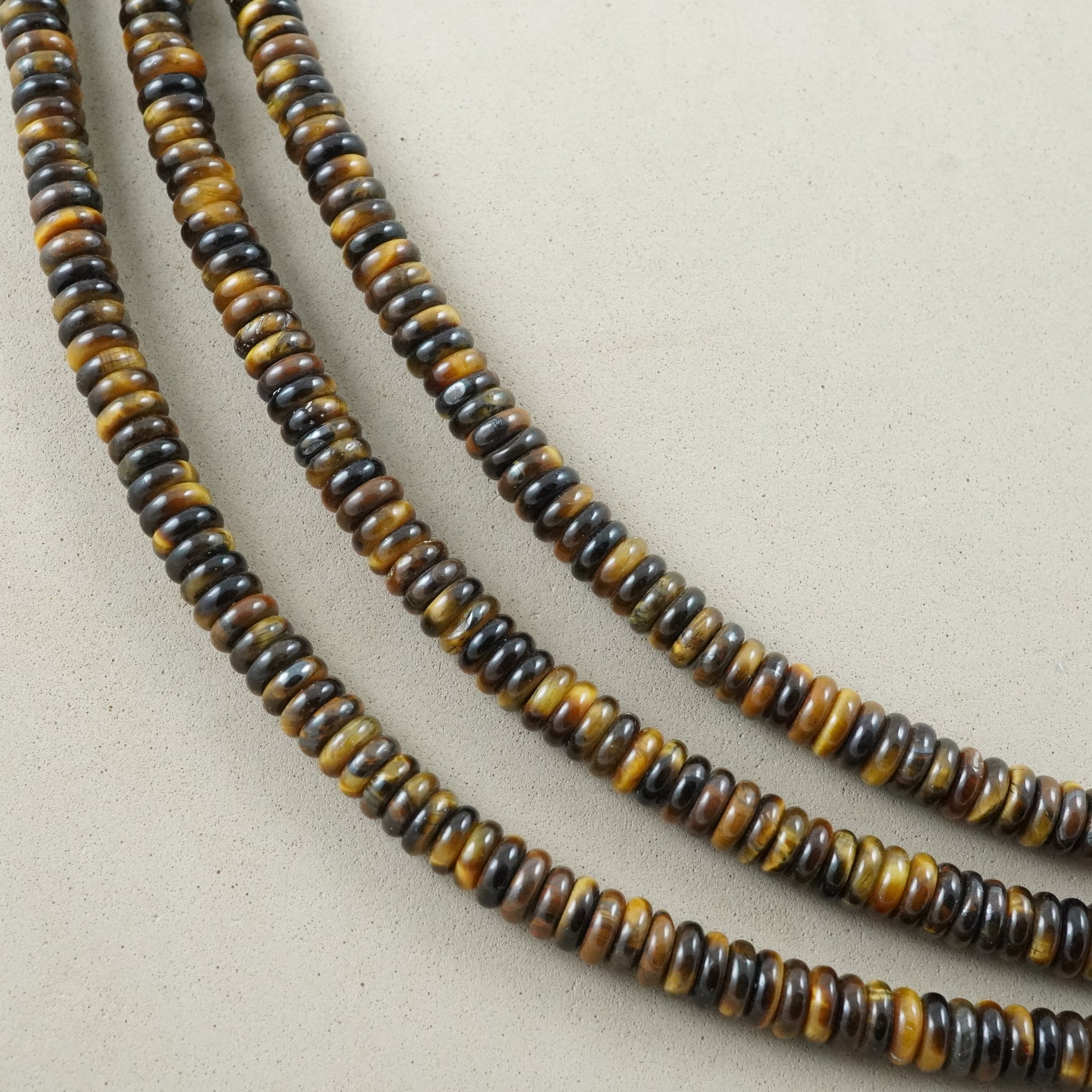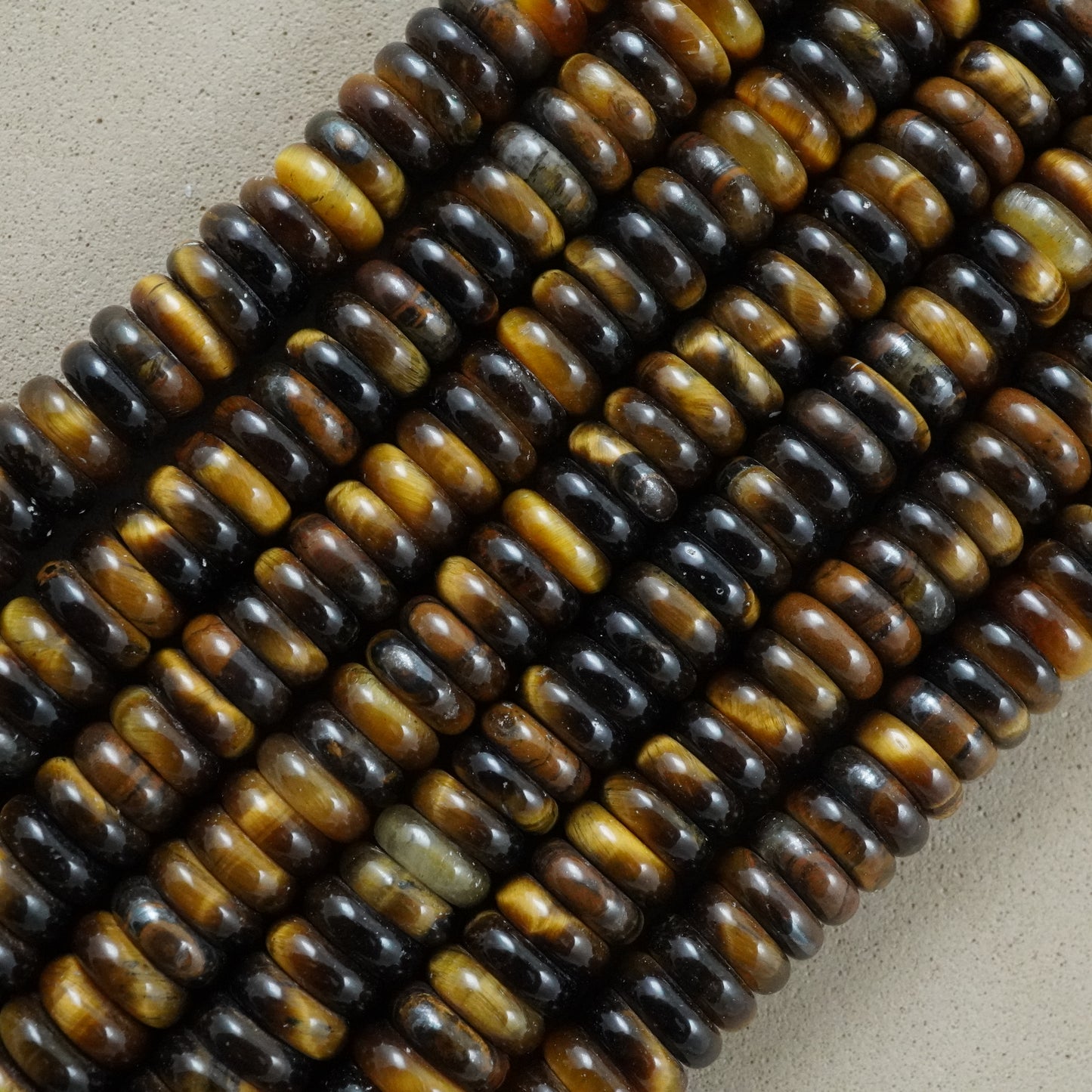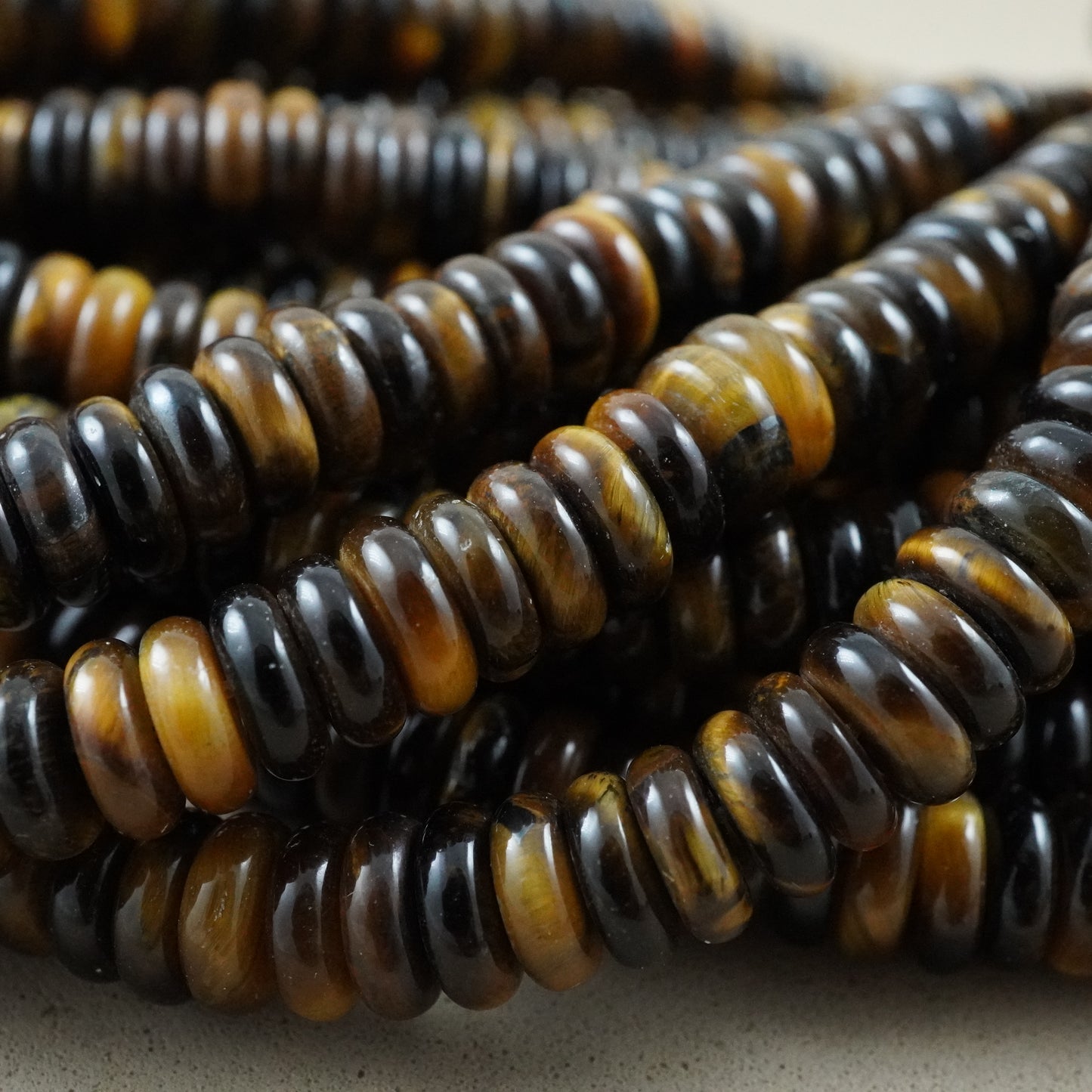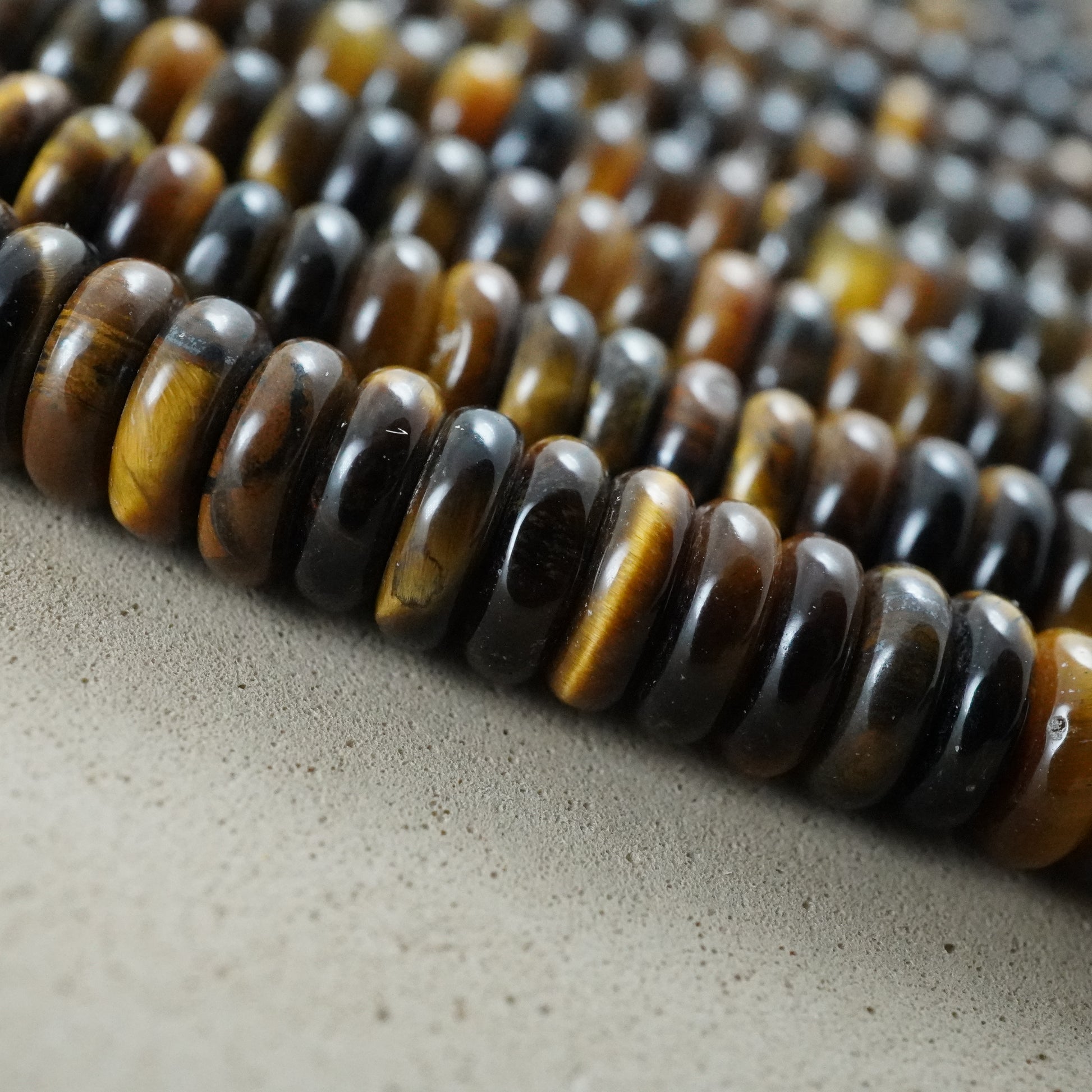 Thin Rondelle beads crafted from mesmerizing Tiger Eye, known for its chatoyant shimmer and the protective energy it offers, make exquisite additions to jewelry creations, enhancing both aesthetics and the wearer's sense of balance and confidence.