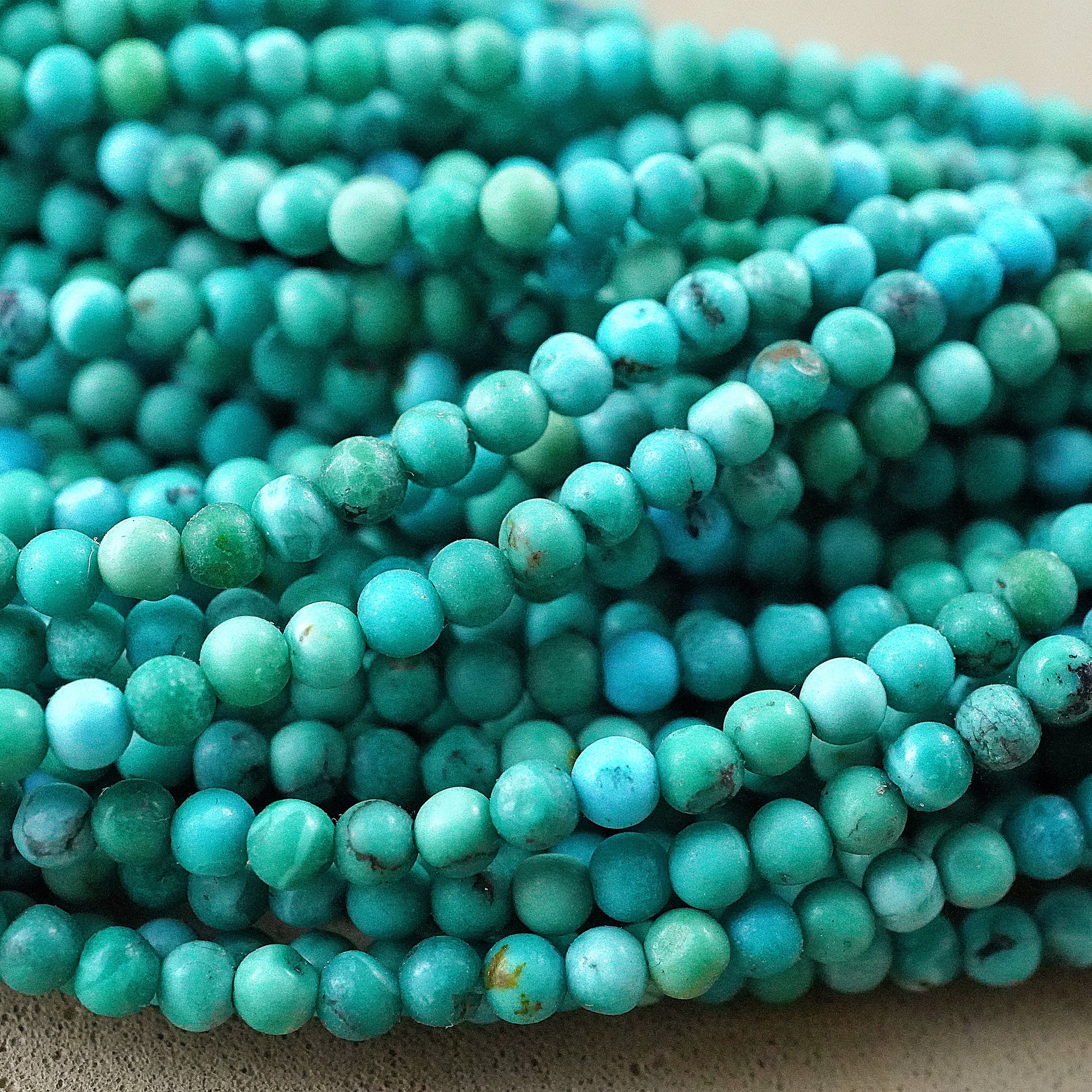 Turquoise, a captivating gemstone admired for its enchanting beauty, is a true wonder of nature. When meticulously cut and polished into small round beads, it exudes an irresistible charm that bewitches the beholder. With their predominantly blue hue, these turquoise beads cast a spell of tranquility and serenity, reminiscent of the vast sky and serene waters.