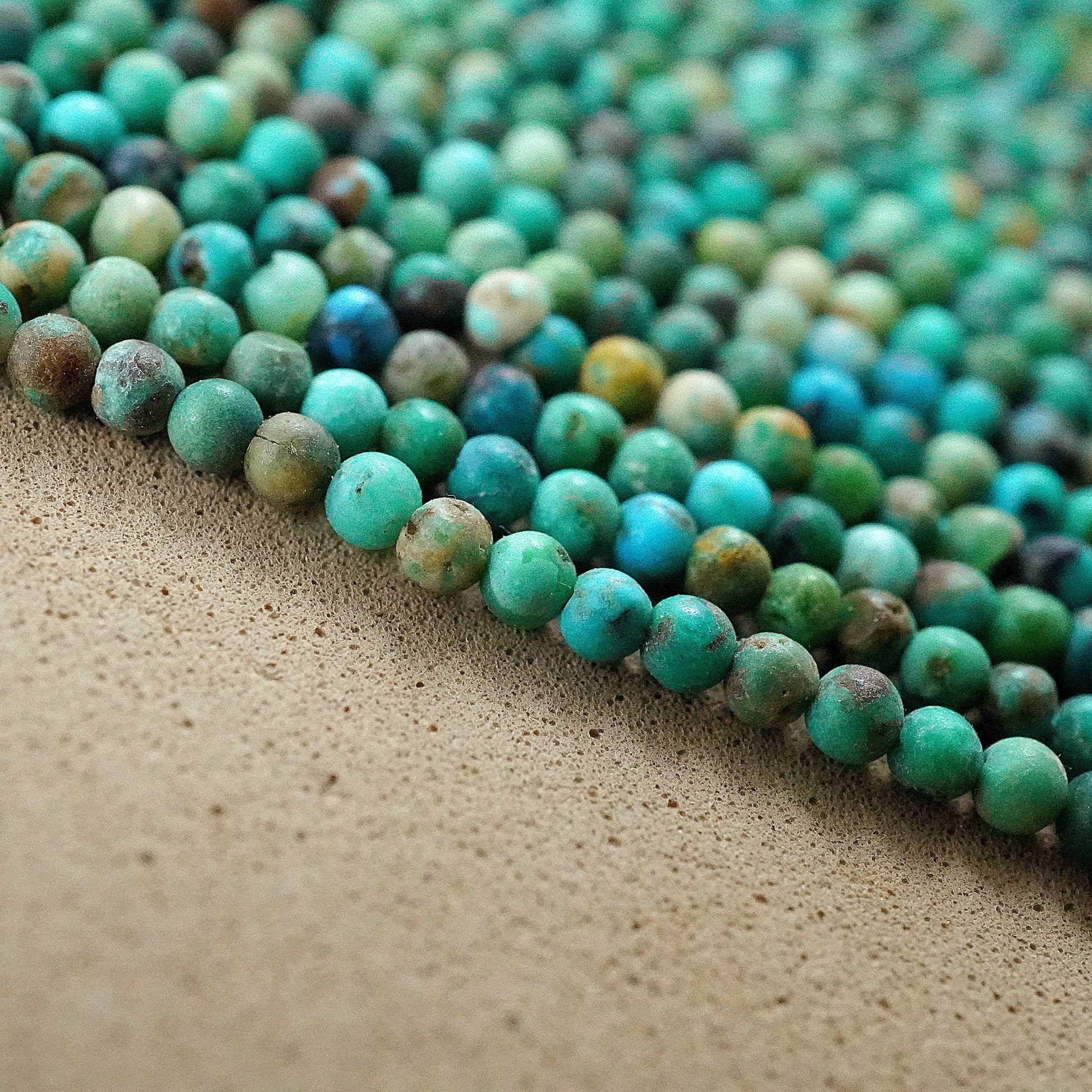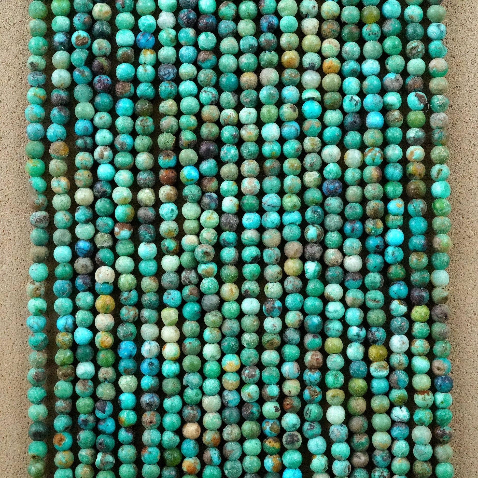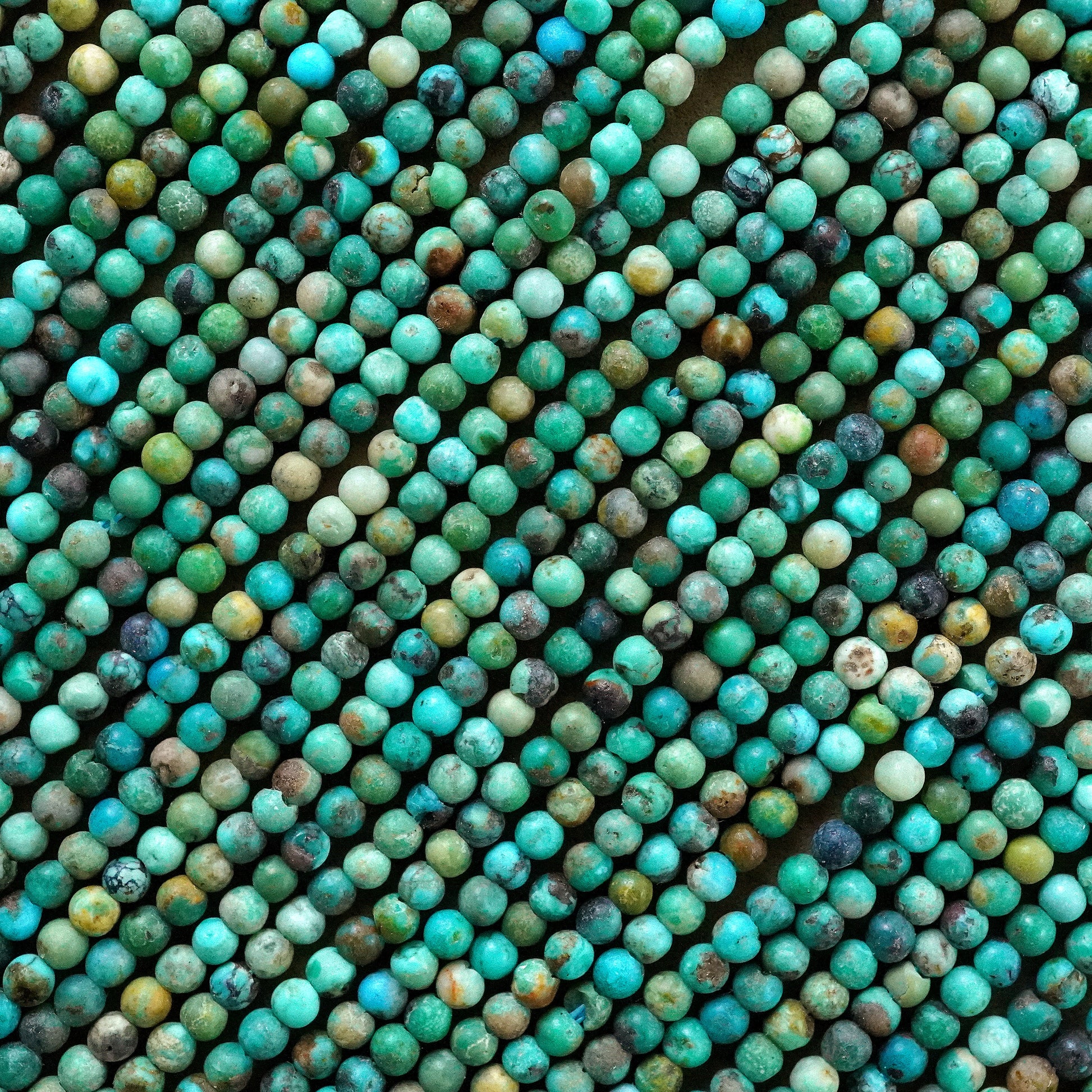 Turquoise, with its mesmerizing blend of blue and green tones, is transformed into a captivating sight when cut and polished into small round beads. The smooth and lustrous surface of each bead reflects light, revealing an enchanting dance of colors and patterns. Beyond its visual appeal, turquoise holds spiritual and healing properties, promoting tranquility and balance. These exquisite beads add sophistication to any jewelry piece, emanating elegance and grace.