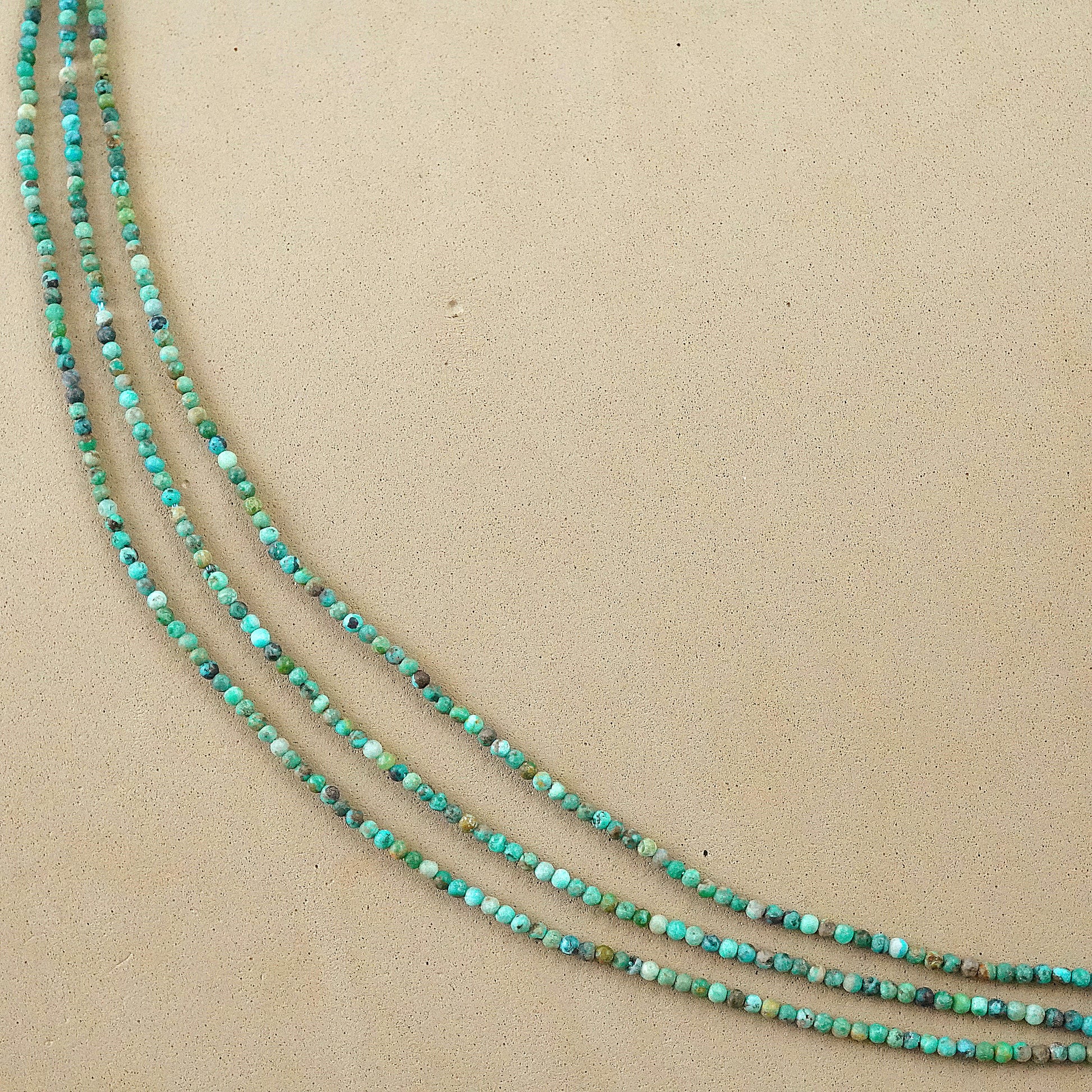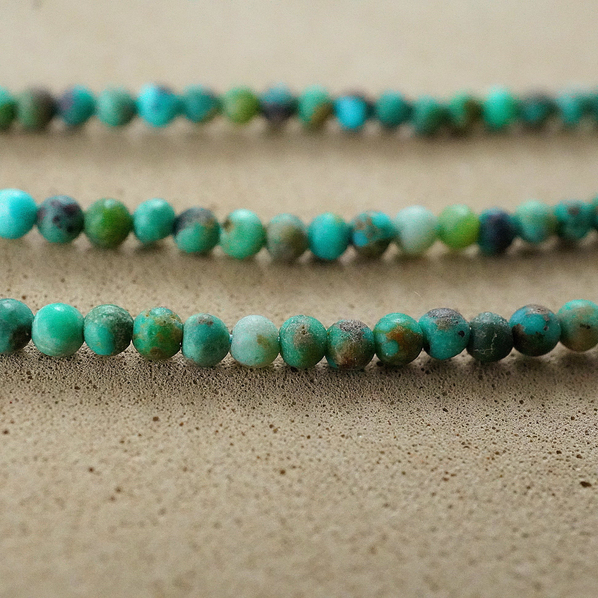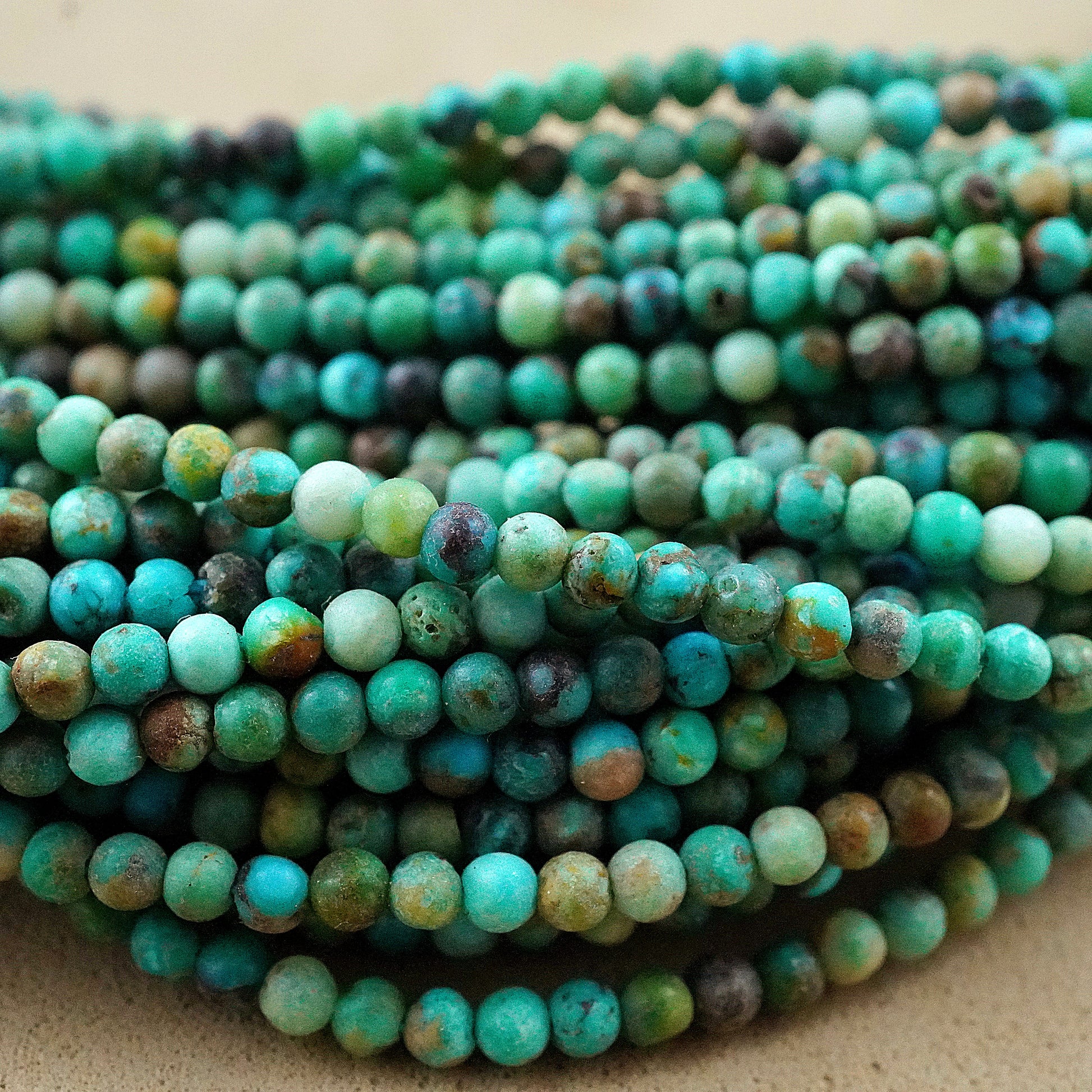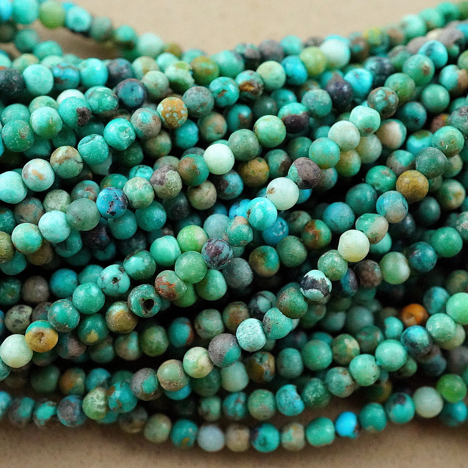 Turquoise, with its mesmerizing blend of blue and green tones, is transformed into a captivating sight when cut and polished into small round beads. The smooth and lustrous surface of each bead reflects light, revealing an enchanting dance of colors and patterns. Beyond its visual appeal, turquoise holds spiritual and healing properties, promoting tranquility and balance. These exquisite beads add sophistication to any jewelry piece, emanating elegance and grace.