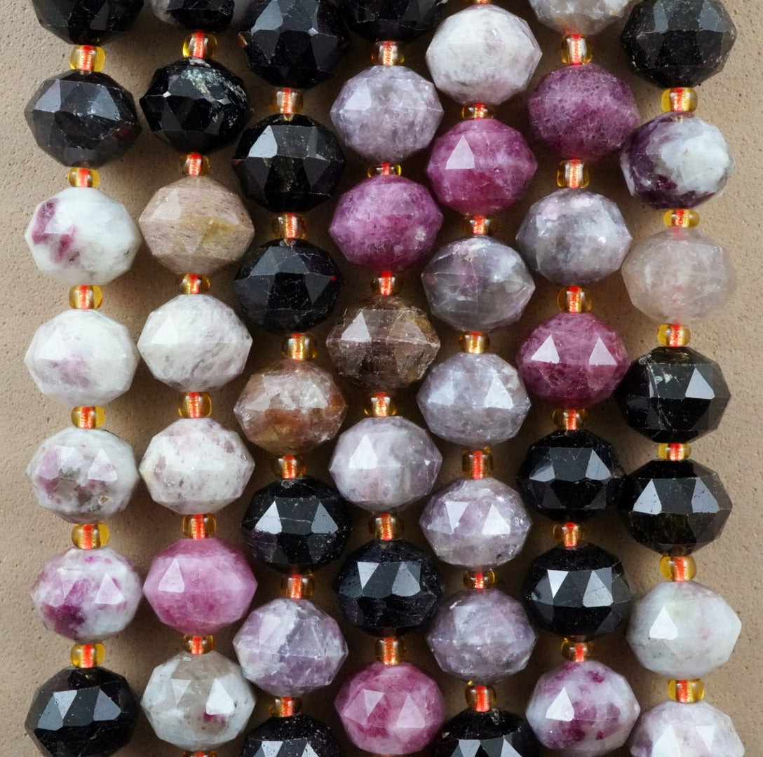 Watermelon Tourmaline (Rondelle)(Triangle-Faceted)(10x8mm)(15.5"Strand)