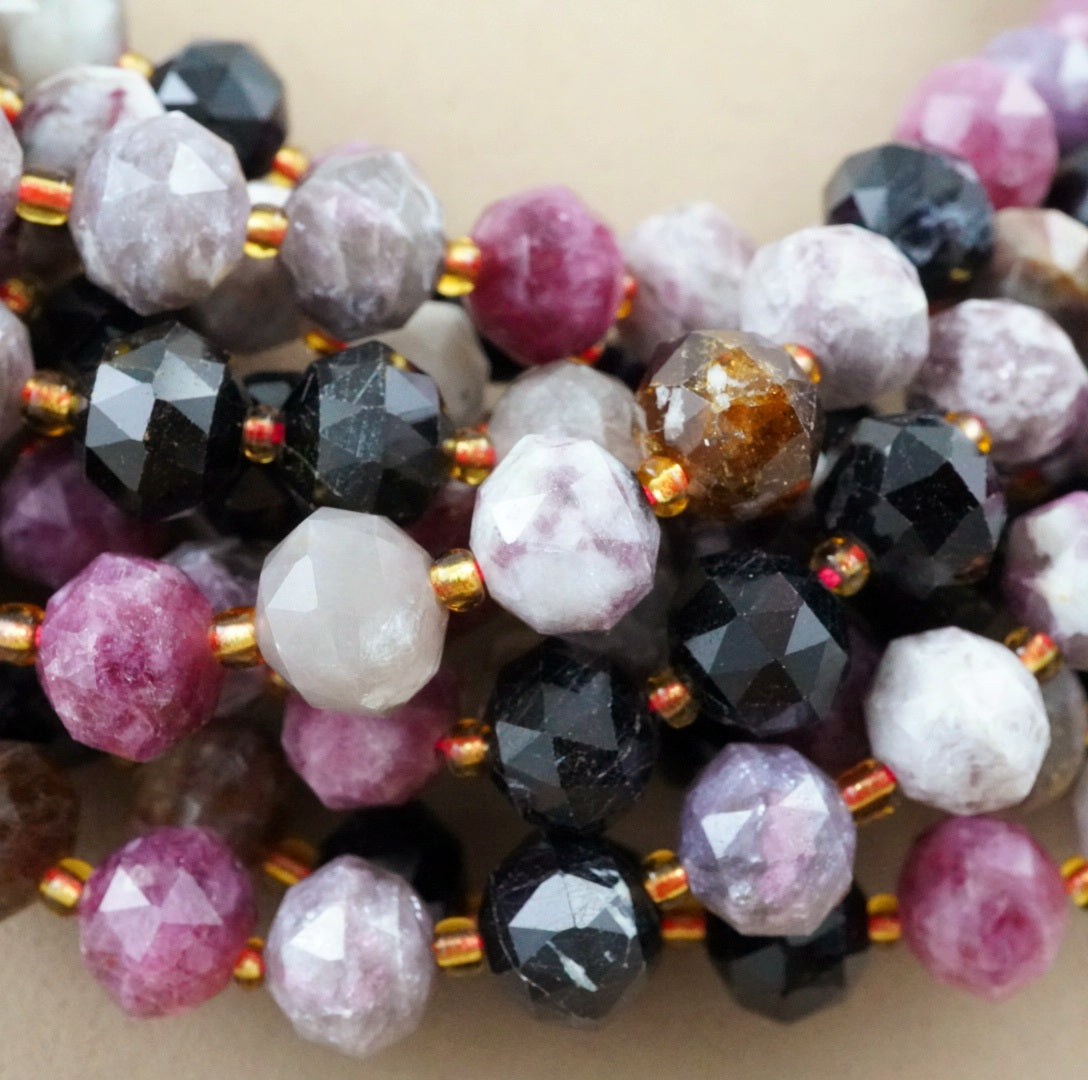 These particular beads have been cut and polished using a distinct style of faceting called, Triangle Faceting. This produces beautiful Triangular shaped facets on the beads, which in turn cause a greater reflection of light due to the larger surface area of the facets. Simply Amazing!