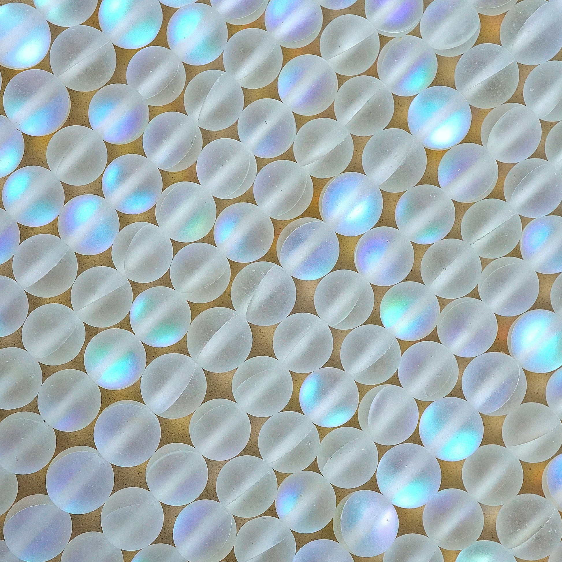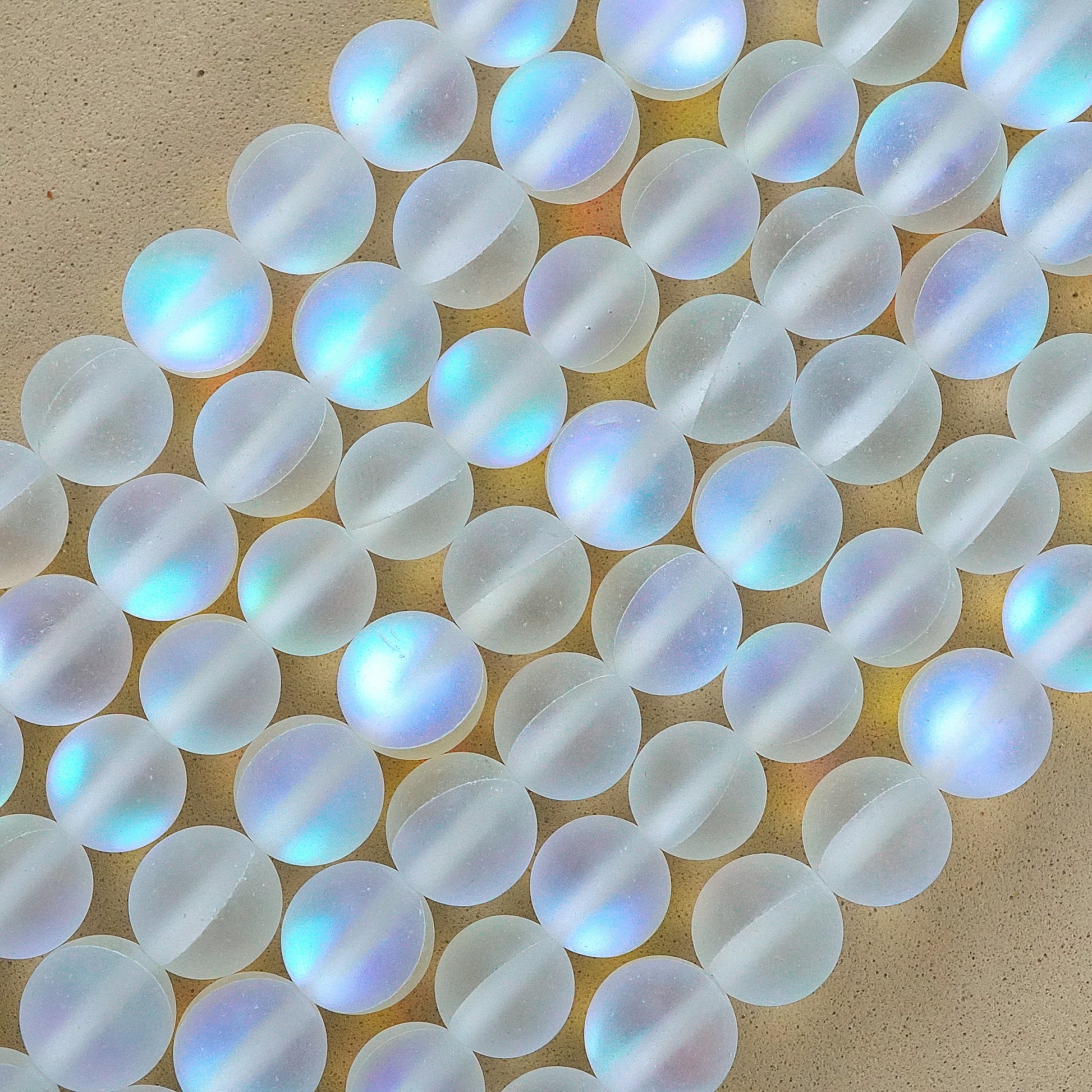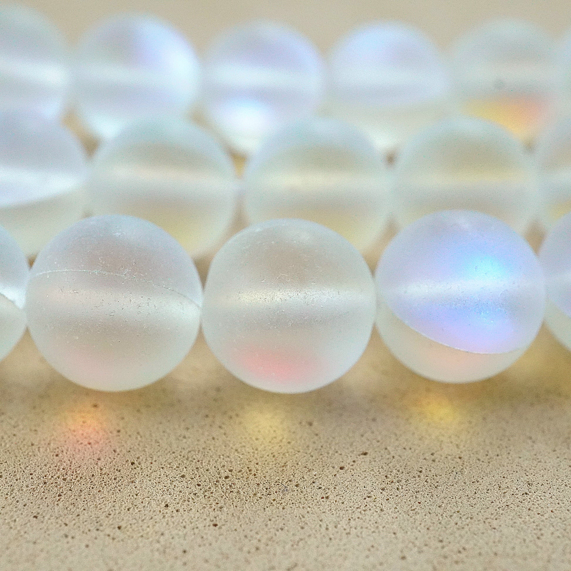 White Mystic Aura Quartz (Round)(Matte)(Syn)(6mm)(8mm)(10mm)(12mm)(16"Strand)