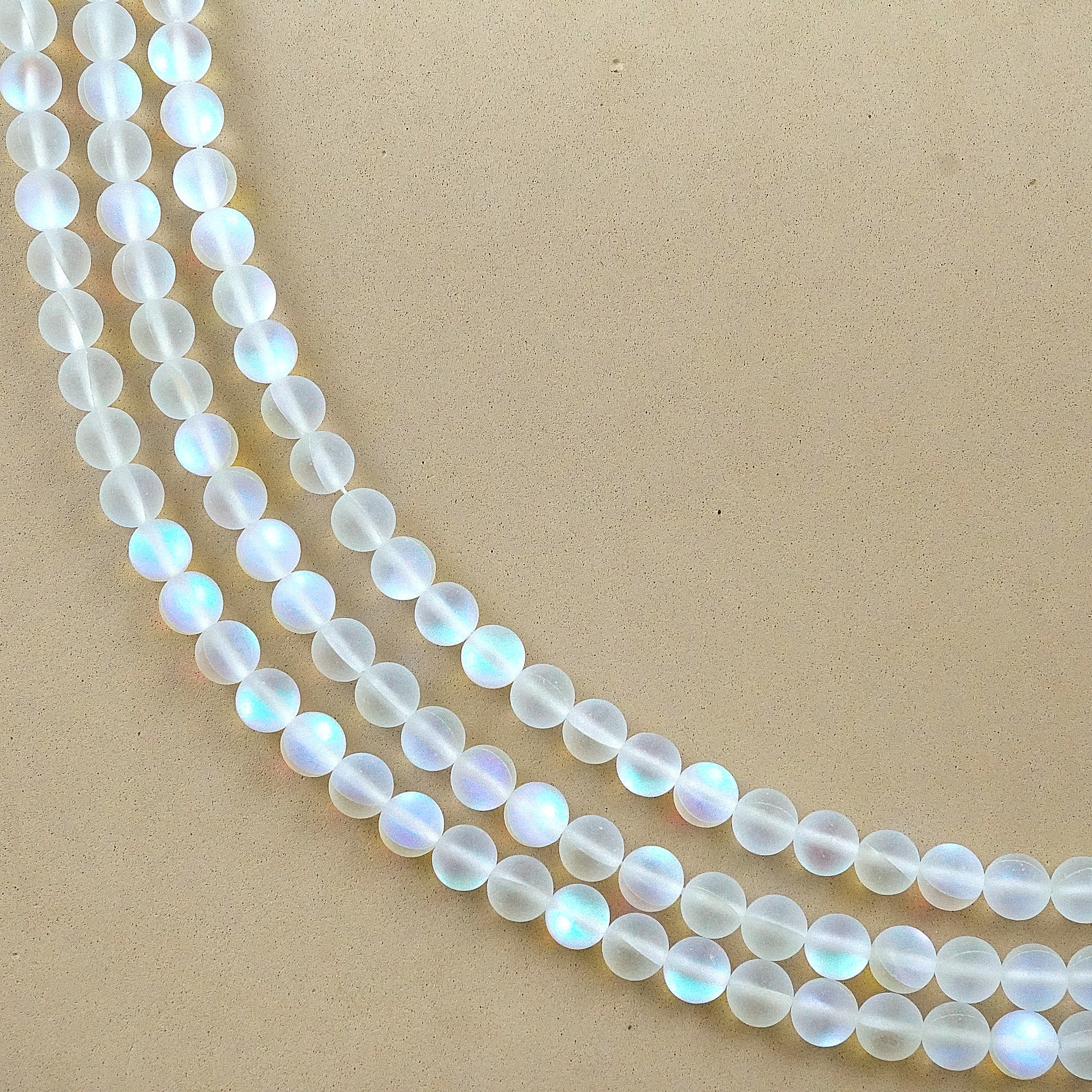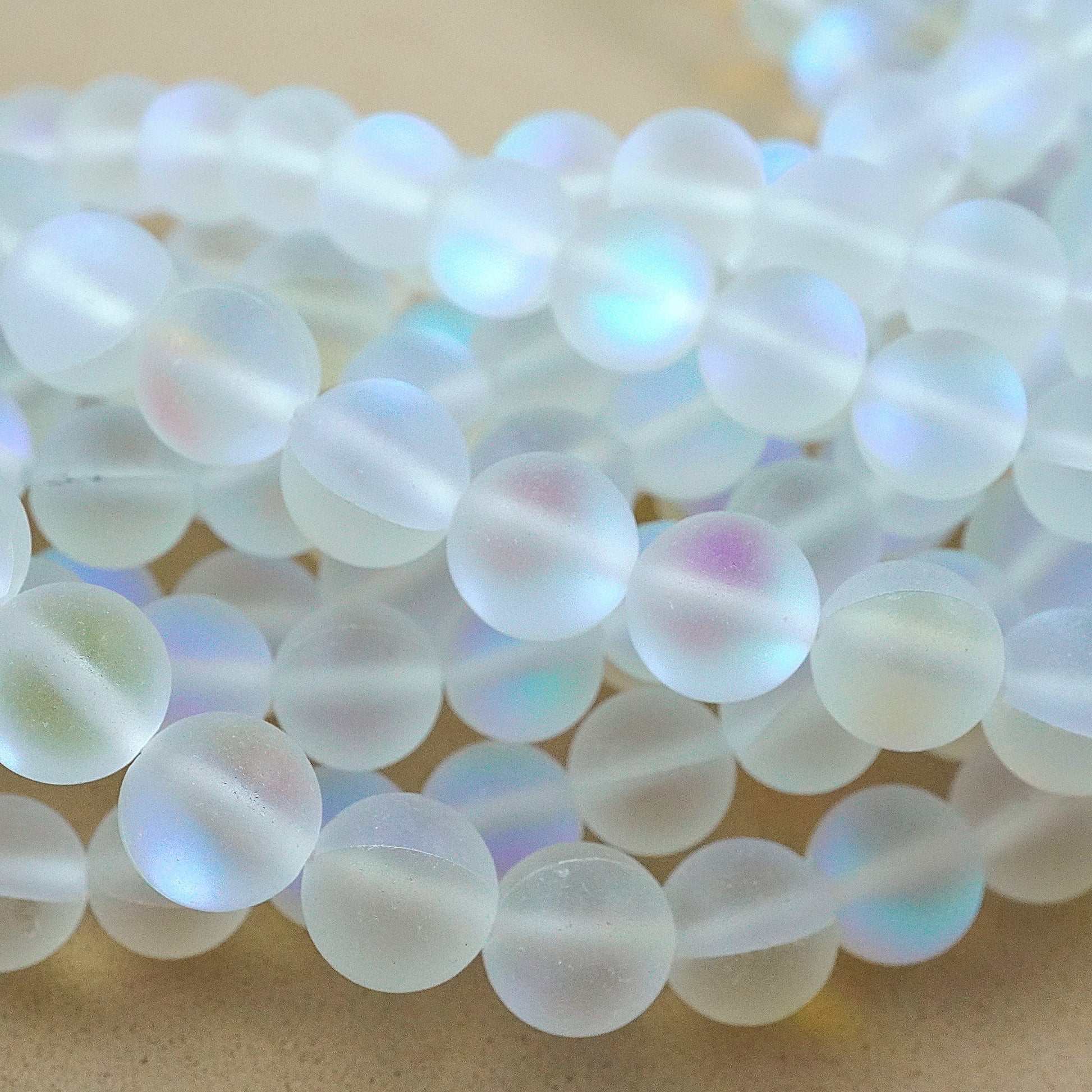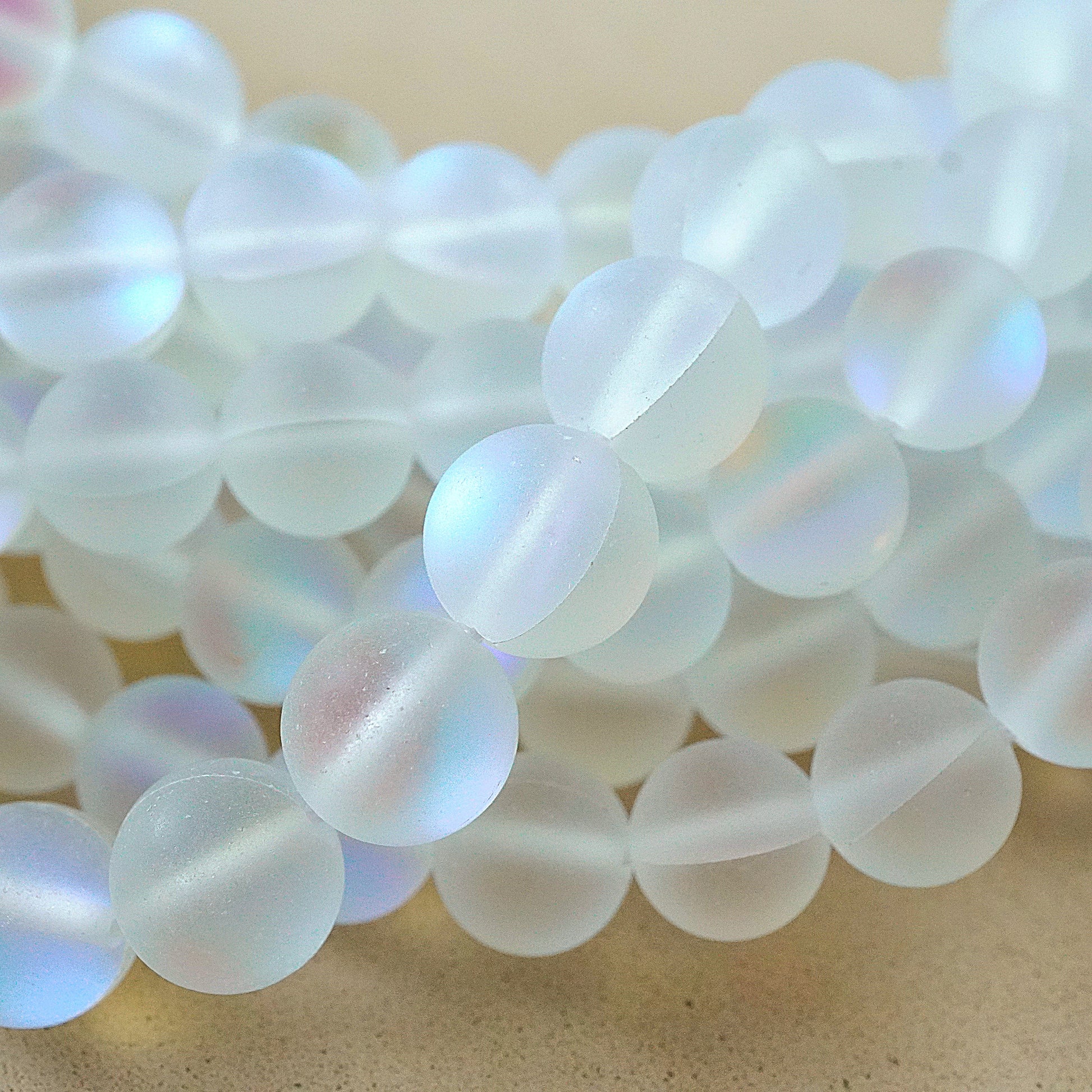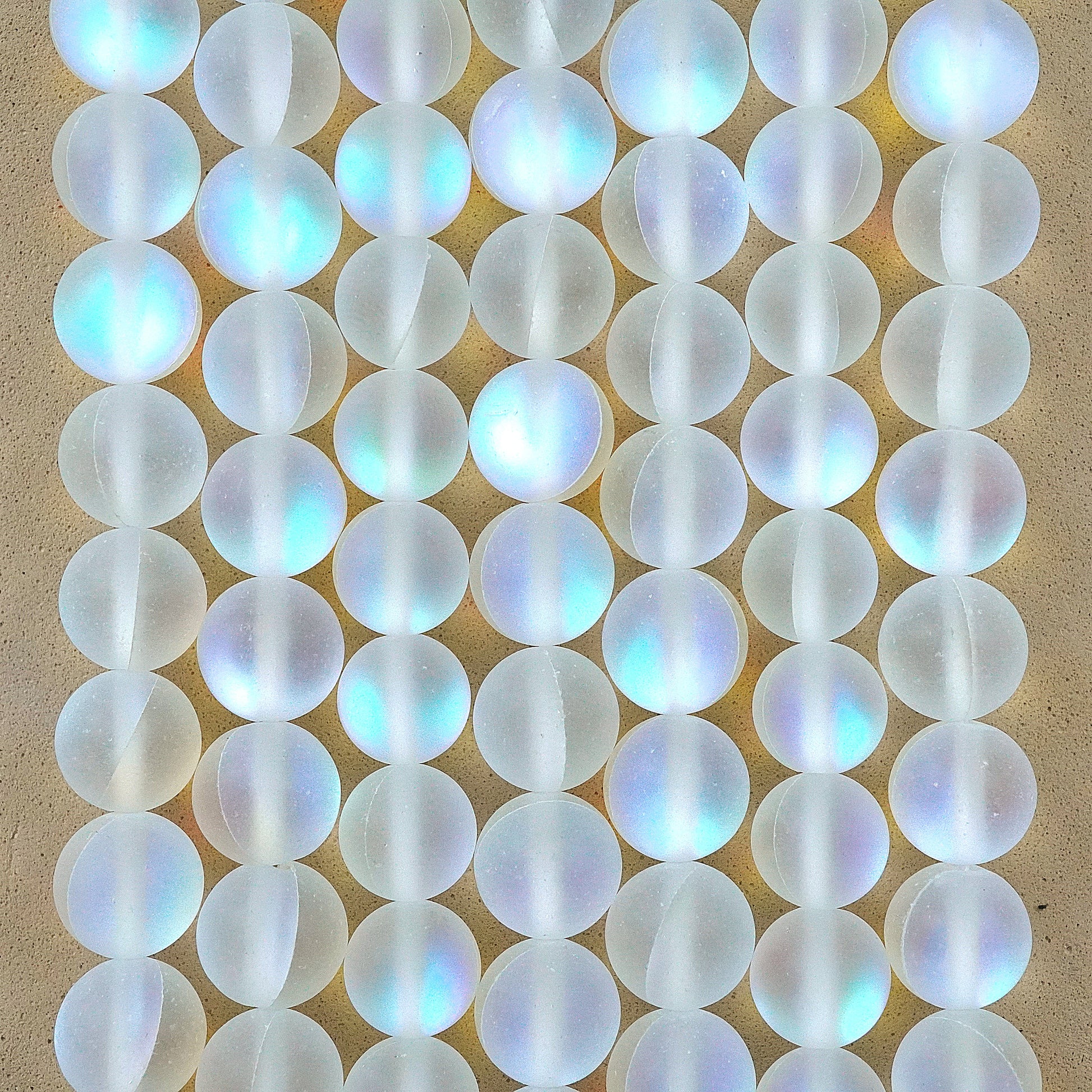 White Mystic Aura Quartz (Round)(Matte)(Syn)(6mm)(8mm)(10mm)(12mm)(16"Strand)