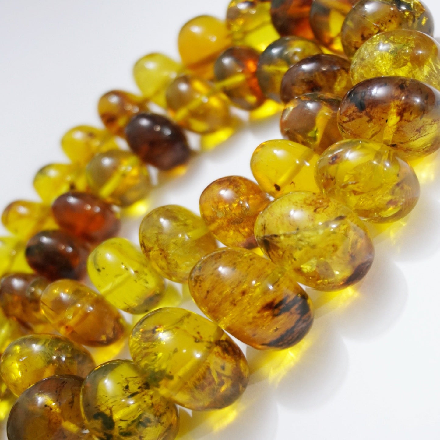 Amber Beads this quality and size are hard to come by. They are large graduated rondelle beads with a focal bead of 25mm and they trim down to 15mm end beads. The clarity and color is of superior grade. Extremely Limited Supply. Buy Now before there gone!