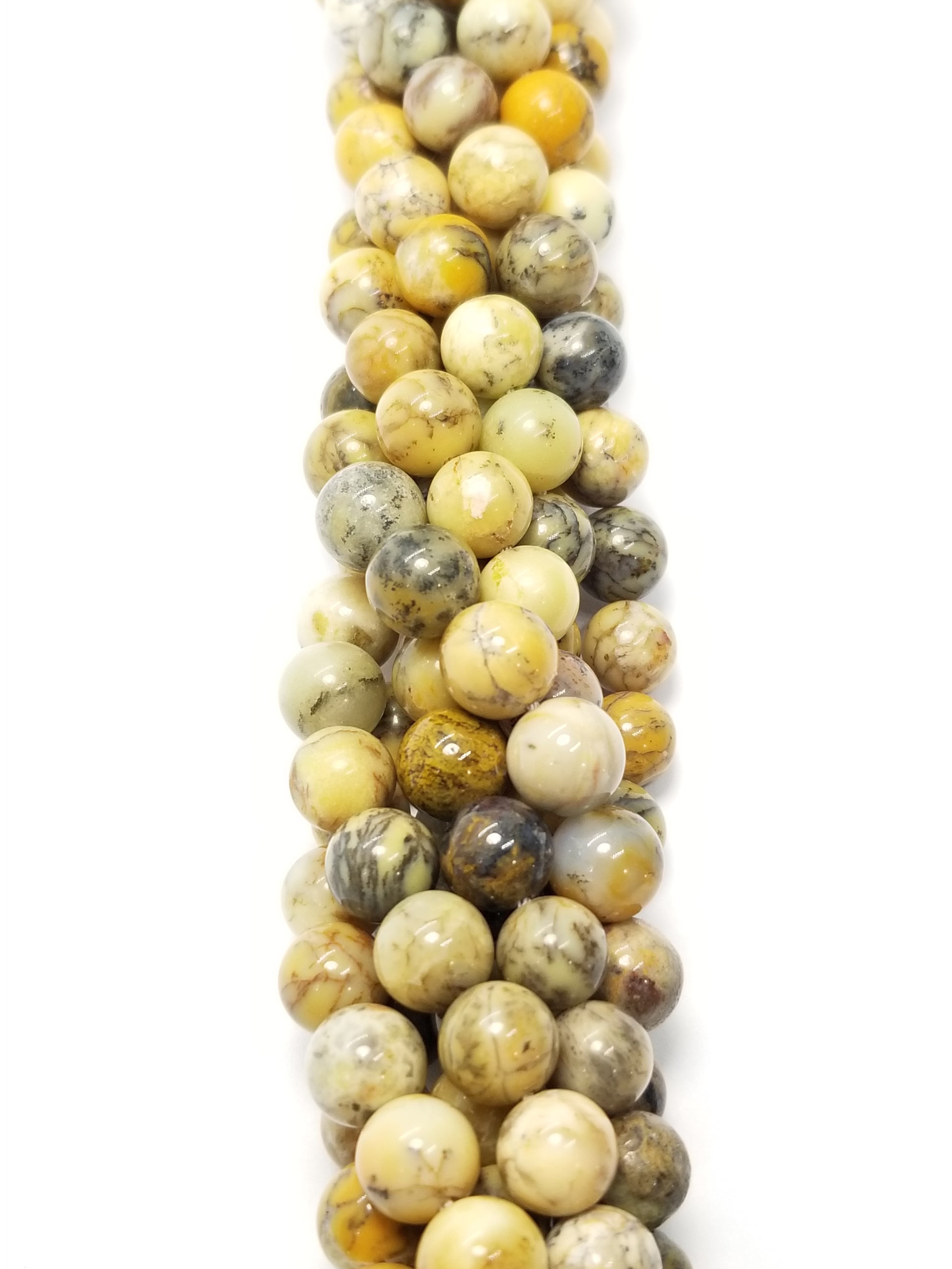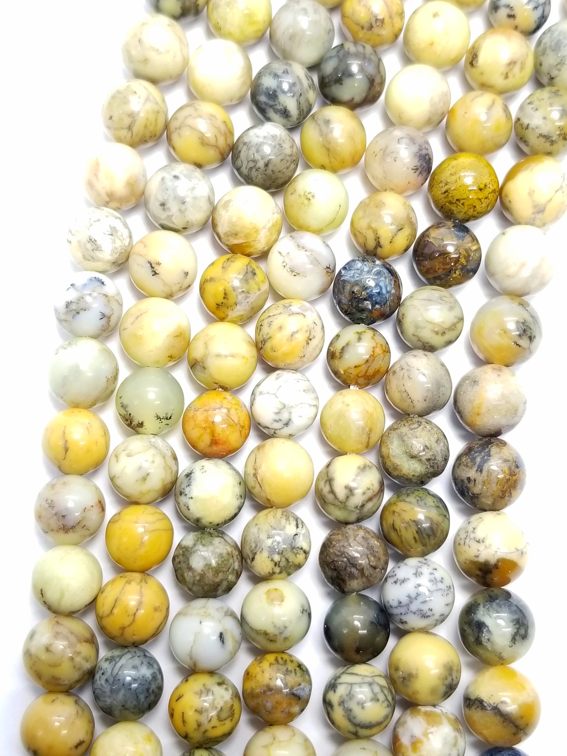 Yellow Dendritic Opal (Round)(Smooth)(16"Strand)
